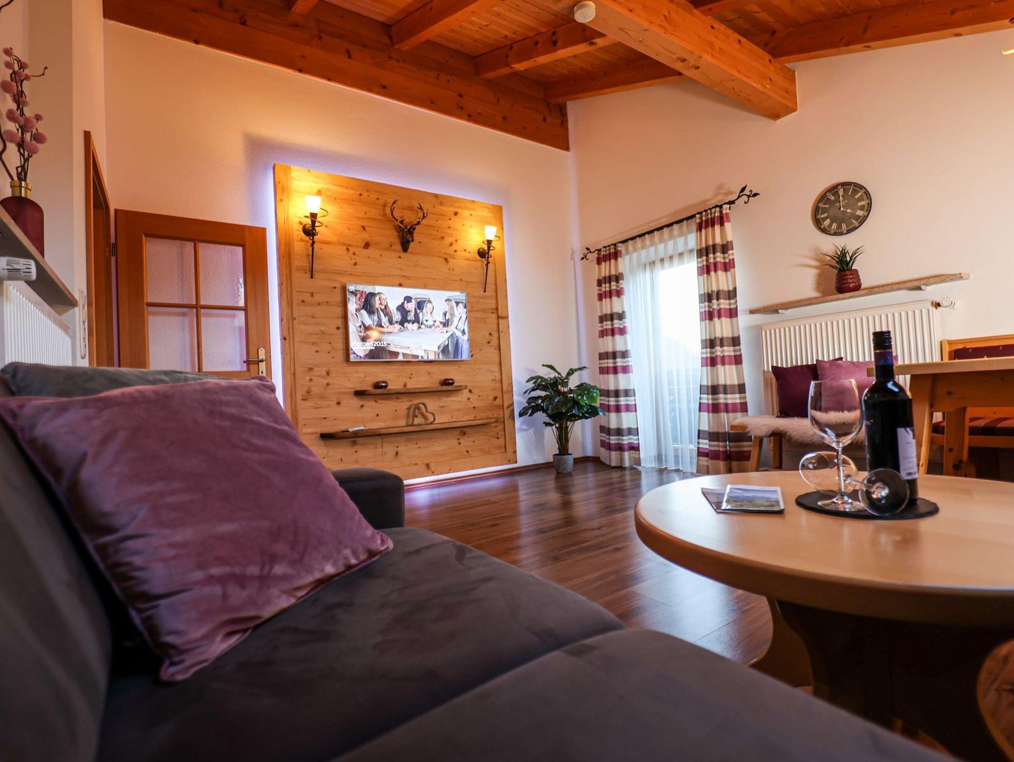 Grias Eich!Herzlich willkommen in unserer großzügigen, gemütlichen Ferienwohnung im Feichtlgütl.In der renovierten, ca. 110 m² großen Ferienwohnung, finden zwei bis vier Personen genügend Platz, um einen entspannten und erholsamen Urlaub zu verbringen. Die Wohnung verfügt über eine voll ausgestattete Küche, zwei Schlafzimmer (ein Doppelbett, zwei Einzelbetten), ein großes Bad und ein separates WC, einem gemütlichen Wohnzimmer mit Ausziehcouch, einen Abstellraum sowie eine Garderobe im Eingangsbereich. Handtücher, Bettwäsche, Föhn, Geschirrtücher, Spülmittel stehen zur Verfügung. - Tiefkühlgerät im Abstellraum - Reinigungsservice nach Absprache bei Urlaub > 7 Tage - Wäscheservice (Gebühr pro Wasch-und Trockenvorgang 5 €) - E-Ladestation (Nutzung nach vorheriger Absprache)