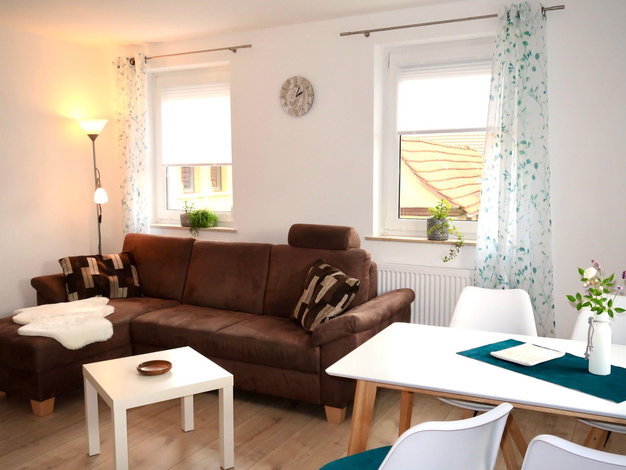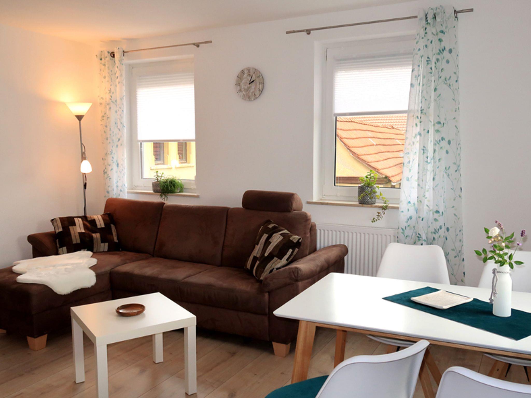 Unsere helle, gemütlich eingerichtete 3 Zimmer-Ferienwohnung befindet sich in zentraler Lage von Maroldsweisach, im Naturpark Haßberge. Die neu renovierte 64 m² Wohnung im 1. Obergeschoss verfügt über ein Schlafzimmer mit Doppelbett, ein Schlafzimmer mit Einzel-/Doppelbett sowie ein Wohn/Esszimmer. In der voll ausgestatteten Küche befindet sich eine kleine Sitzecke. Küchen- und Bettwäsche sowie Handtücher und Föhn werden gestellt.