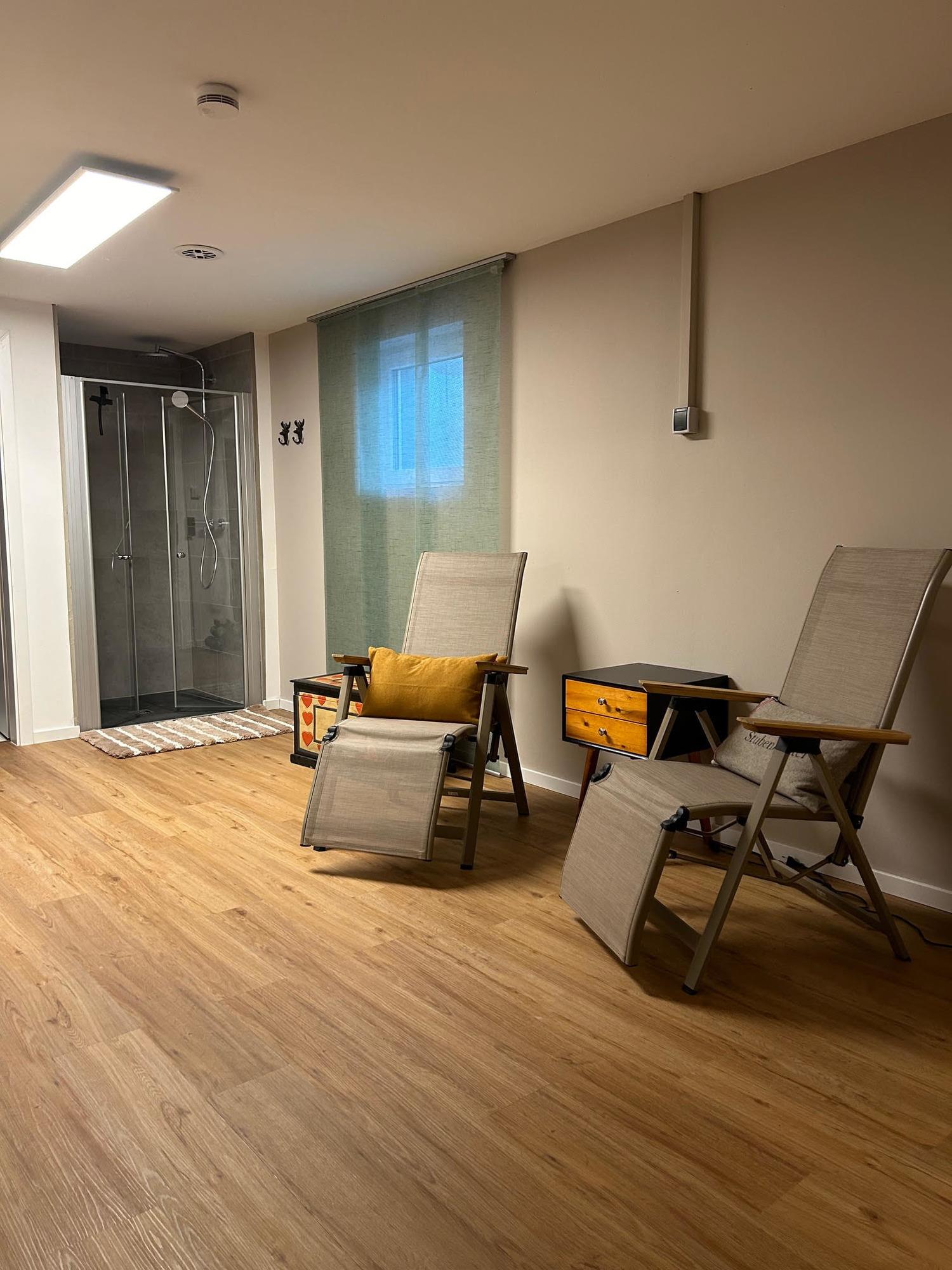 Im geräumigen Wohnzimmer finden Sie nicht nur einen geräumiges Sofa und Schlafsessel zum Entspannen, sondern auch einen großen Esstisch für gesellige Abende. Der gesamte Wohnbereich verfügt über eine Fußbodenheizung und Lüftungsanlage. Die gesamte Haustechnik ist auf dem neuesten Stand. Im Untergeschoss erwartet Sie ein Saunabereich mit Dusche sowie eine Waschmaschine und Trockner für Ihren Komfort.