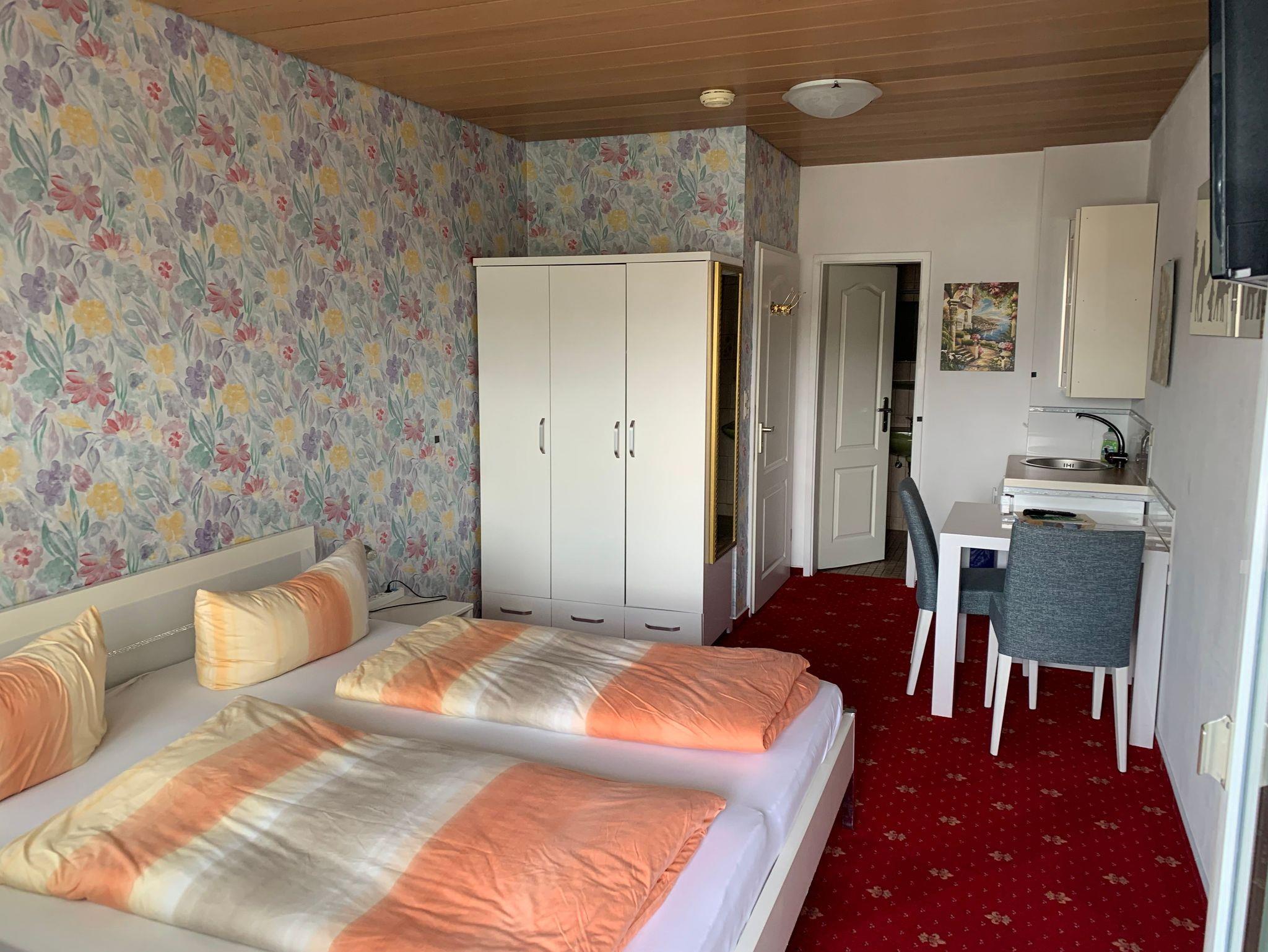 Kleineres Doppelzimmer (Nr. 3) in Südlage mit Du/WC, TV, Safe, Kühlschrank, Geschirrschrank, Kaffeemaschine, Wlan, Balkon in Südlage. Das Zimmer befindet sich im 1. Stock.