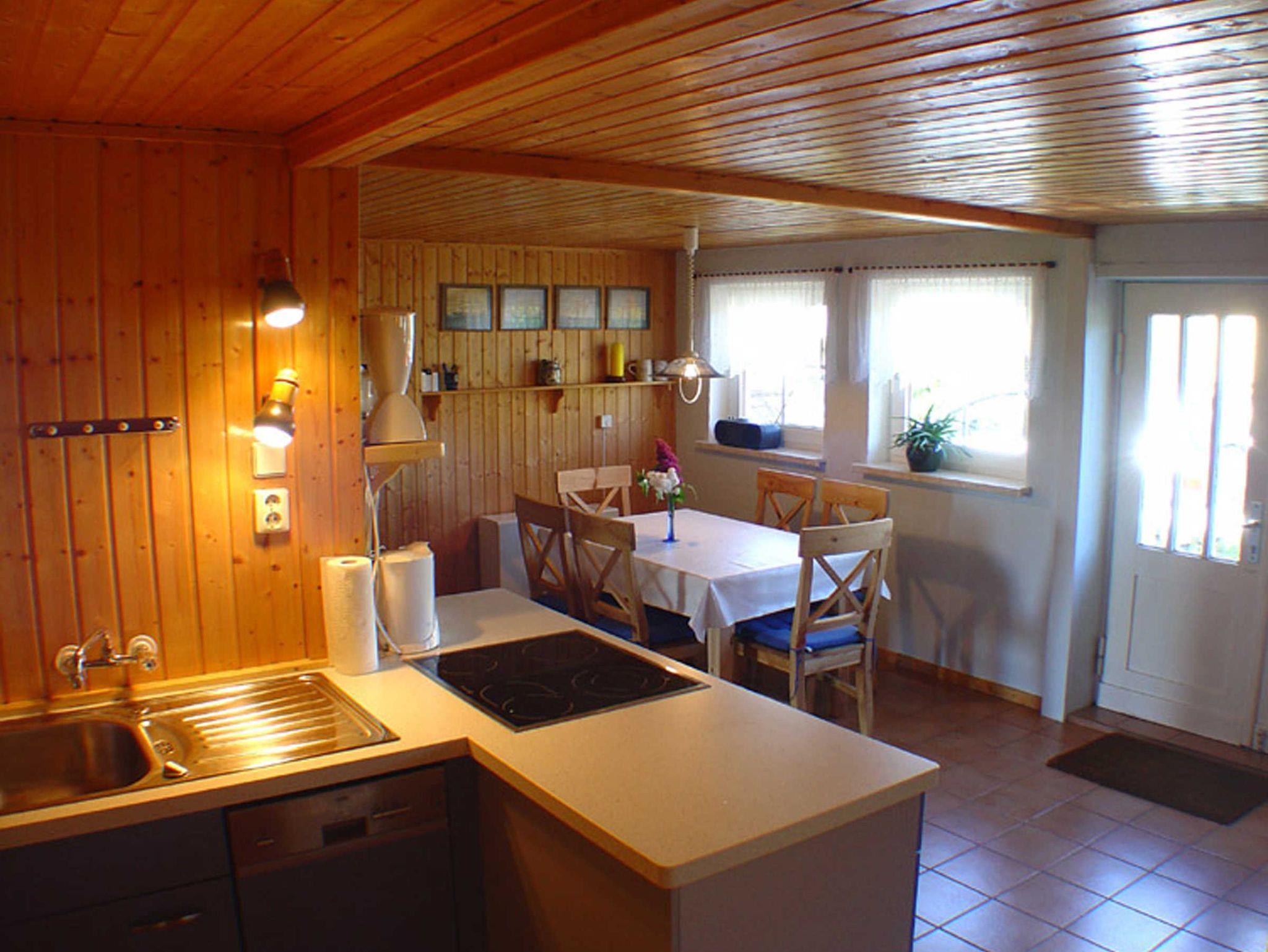 Voll ausgestattetes Ferienhaus in ruhiger Lage mit großem Wohnzimmer (SAT-TV, Radio, DVD/CD), großer Eßdiele/Küche (mit Herd,Geschirrspüler, Kühl-/TK-Schrank etc.), 1 Schlafzimmer und Bad.