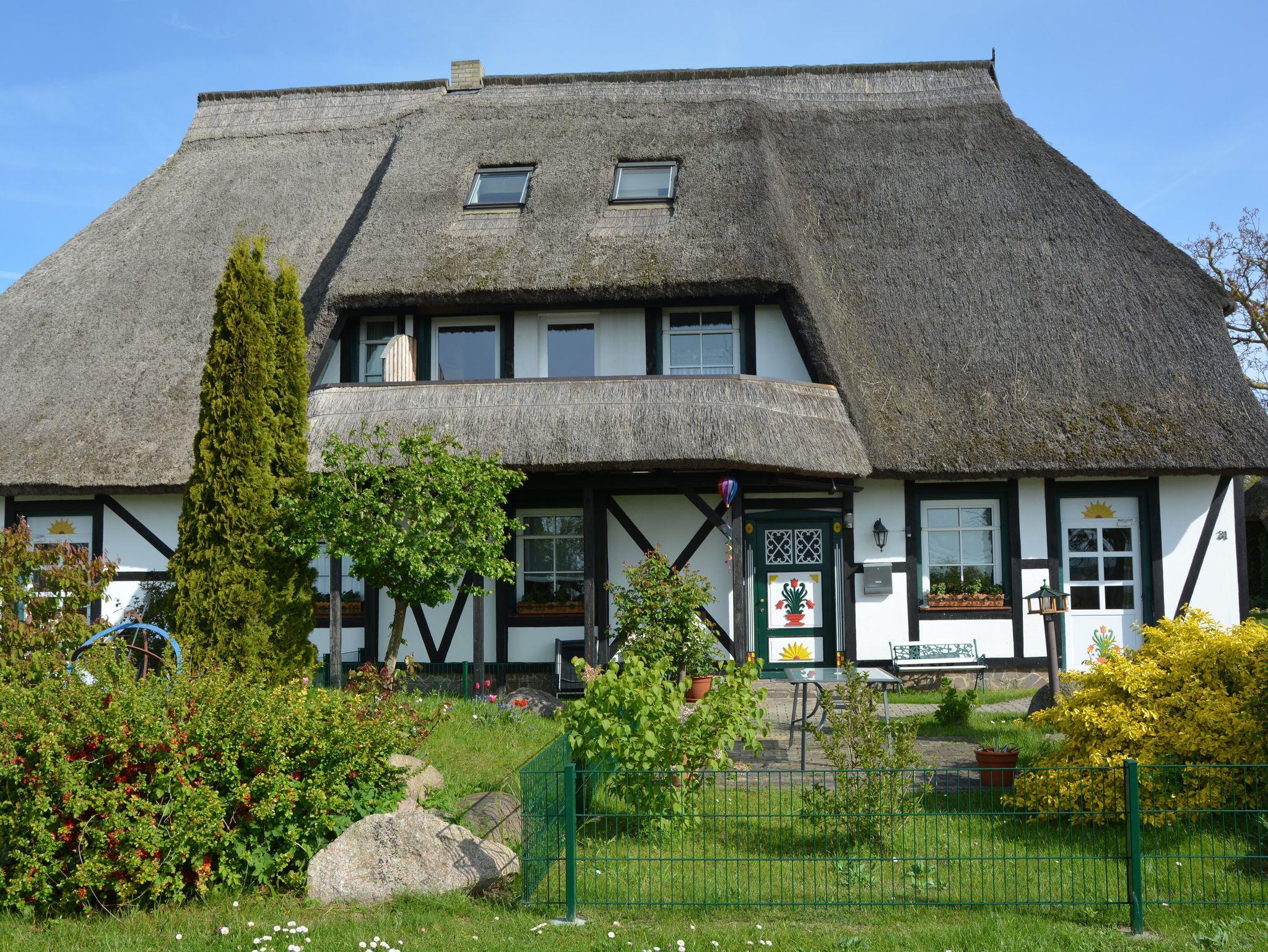Reetgedecktes Ferienhaus Mönchgutperle mit Seeblick und Terrasse in Middelhagen am Bodden.