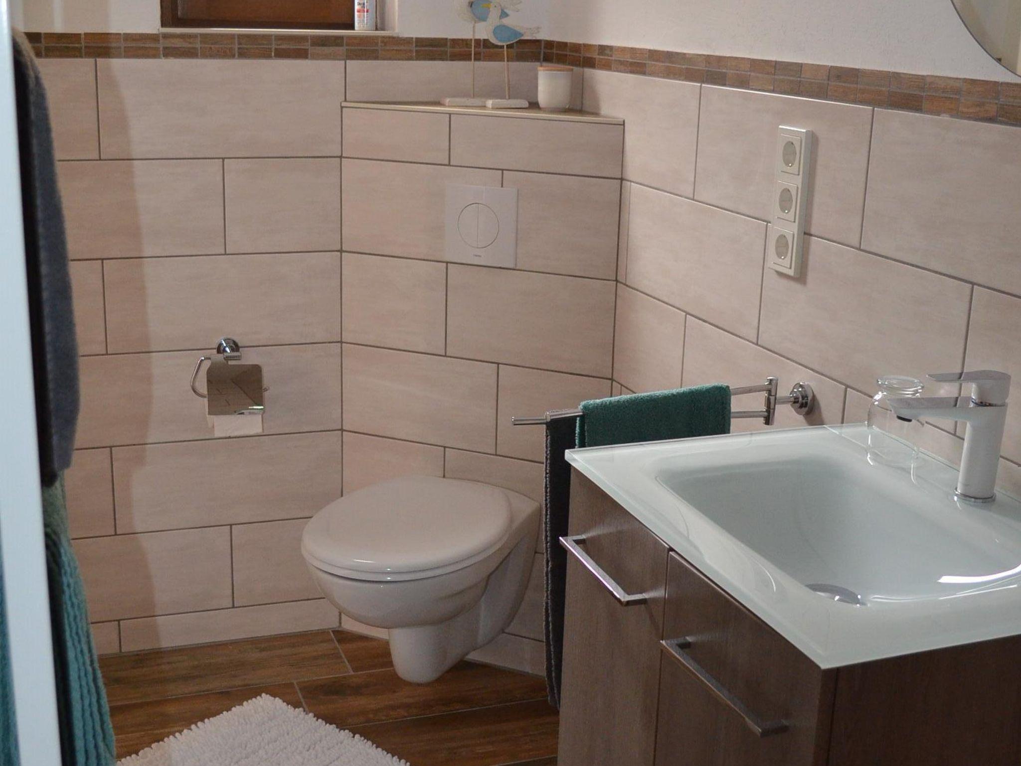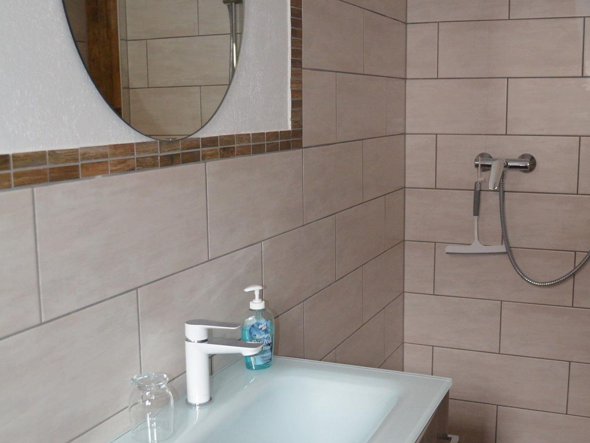 Das neue Badezimmer, mit großer, ebenerdige Dusche ist direkt an das Schlafzimmer angeschlossen und besitzt auch eine kleine Fenster.