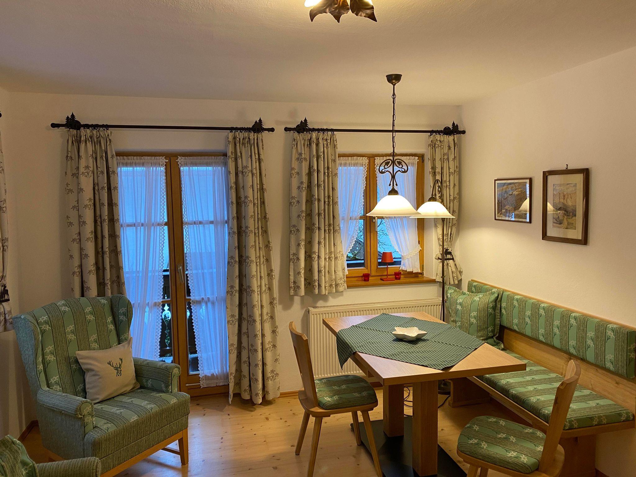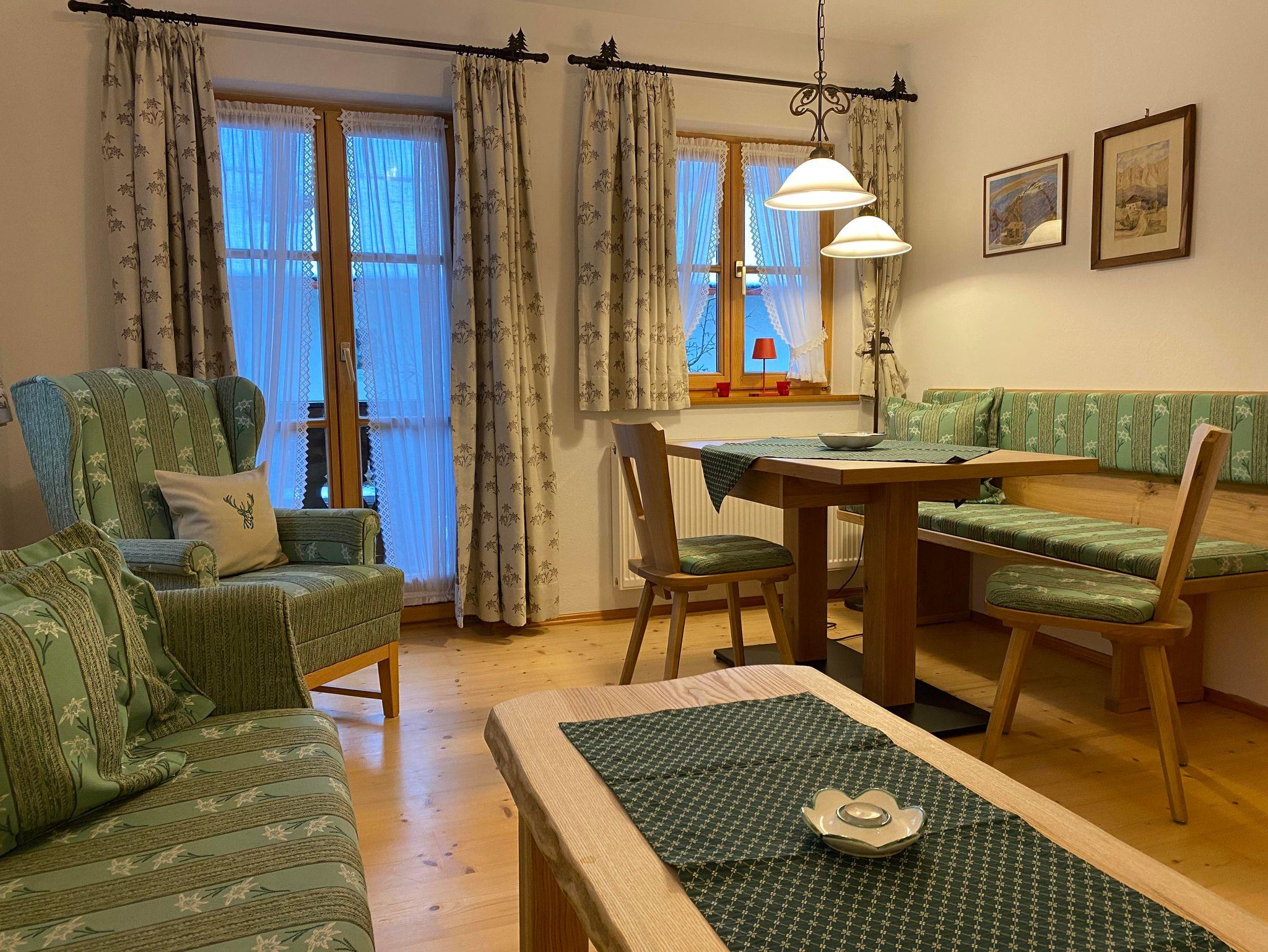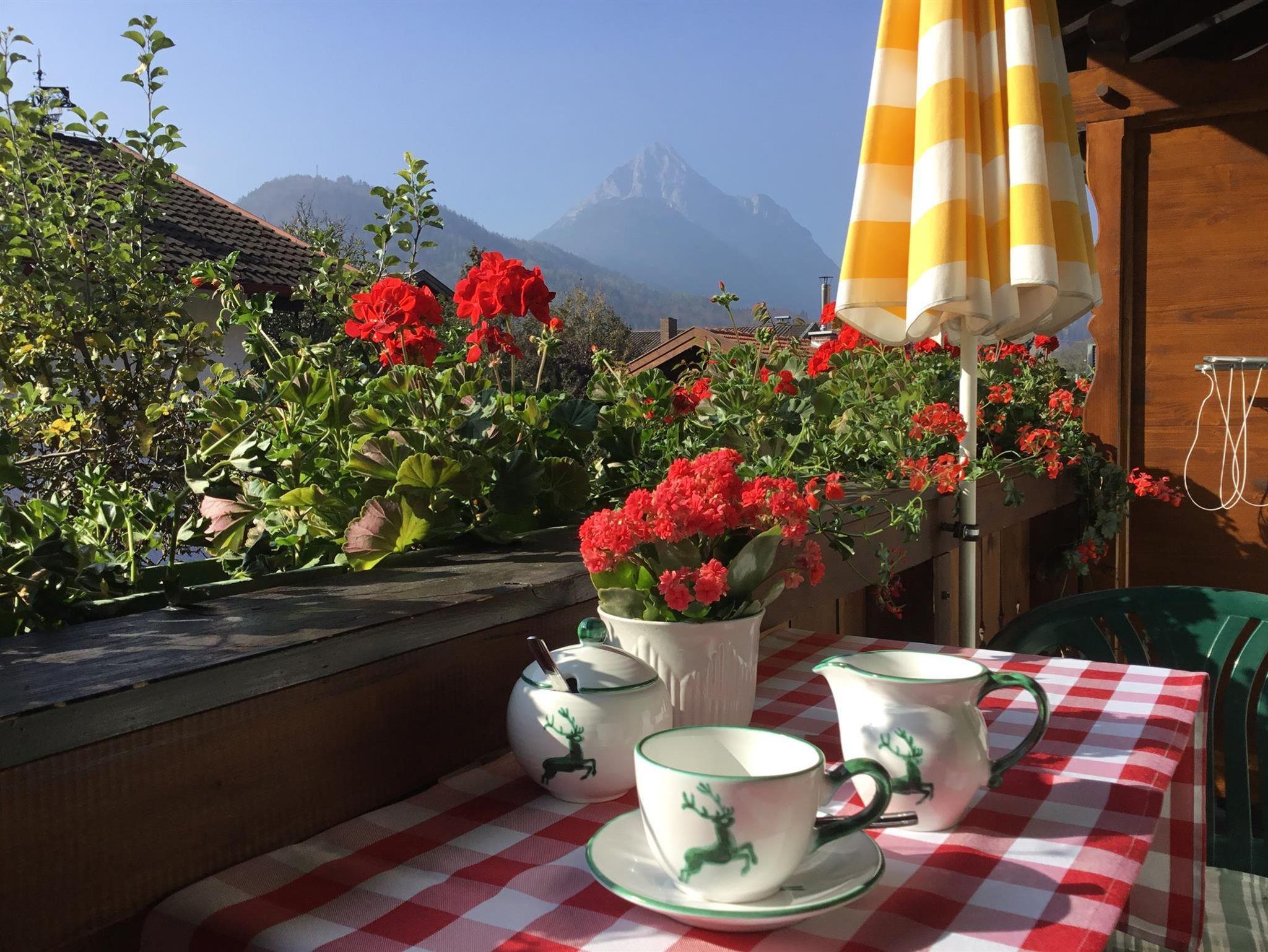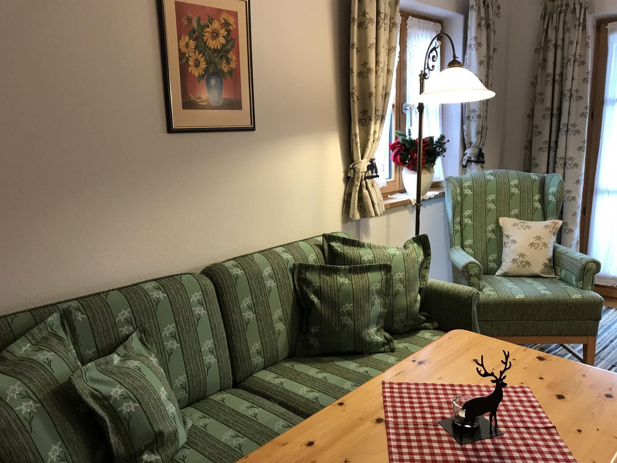 Geniesen Sie unsere liebevoll im bayerisch-alpinen Stil eingerichteten Komfort-Ferienwohnungen. Perfekt für erholsame und unbeschwerte Urlaubstage. Freuen Sie sich auf ihren möblierten Südbalkon o. Südterrasse o. Liegewiese mit Bergblick zu Karwendel und Wetterstein und lassen Sie sich Ihre Brotzeit oder Kaffee schmecken.