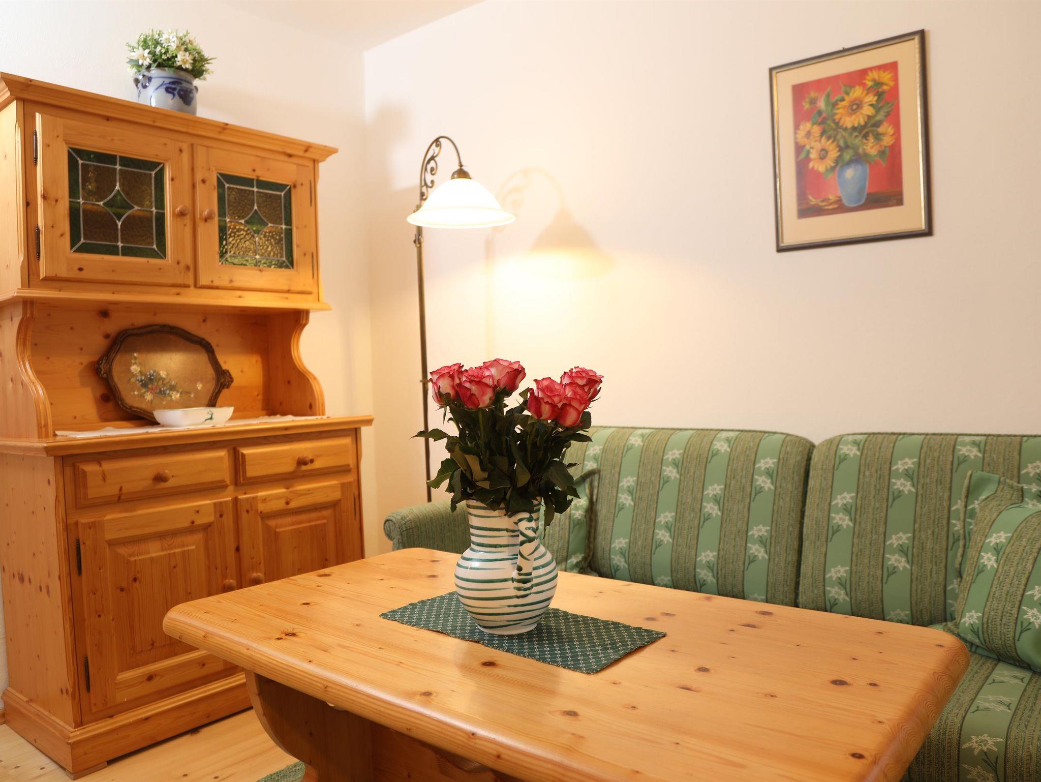 Um Ihren Aufenthalt so angenehm wie möglich zu gestalten, ist die Edelweiß Wohnung mit einem Doppelbett aus Zirbenholz; Flur, Komfort-Küche mit Spülmaschine, Mikrowelle uvm. ist komplett eingerichtet und ausgestattet. Freundlich-helles Duschbad mit Fenster. Das Wohnzimmer bietet Ihnen mit Couch und Sessel viel Platz für gemütliche Abende. Für höchste Sauberkeit ist die Wohnung nur mit Holz- und Steinböden ausgestattet. Der Südbalkon ist möbliert.