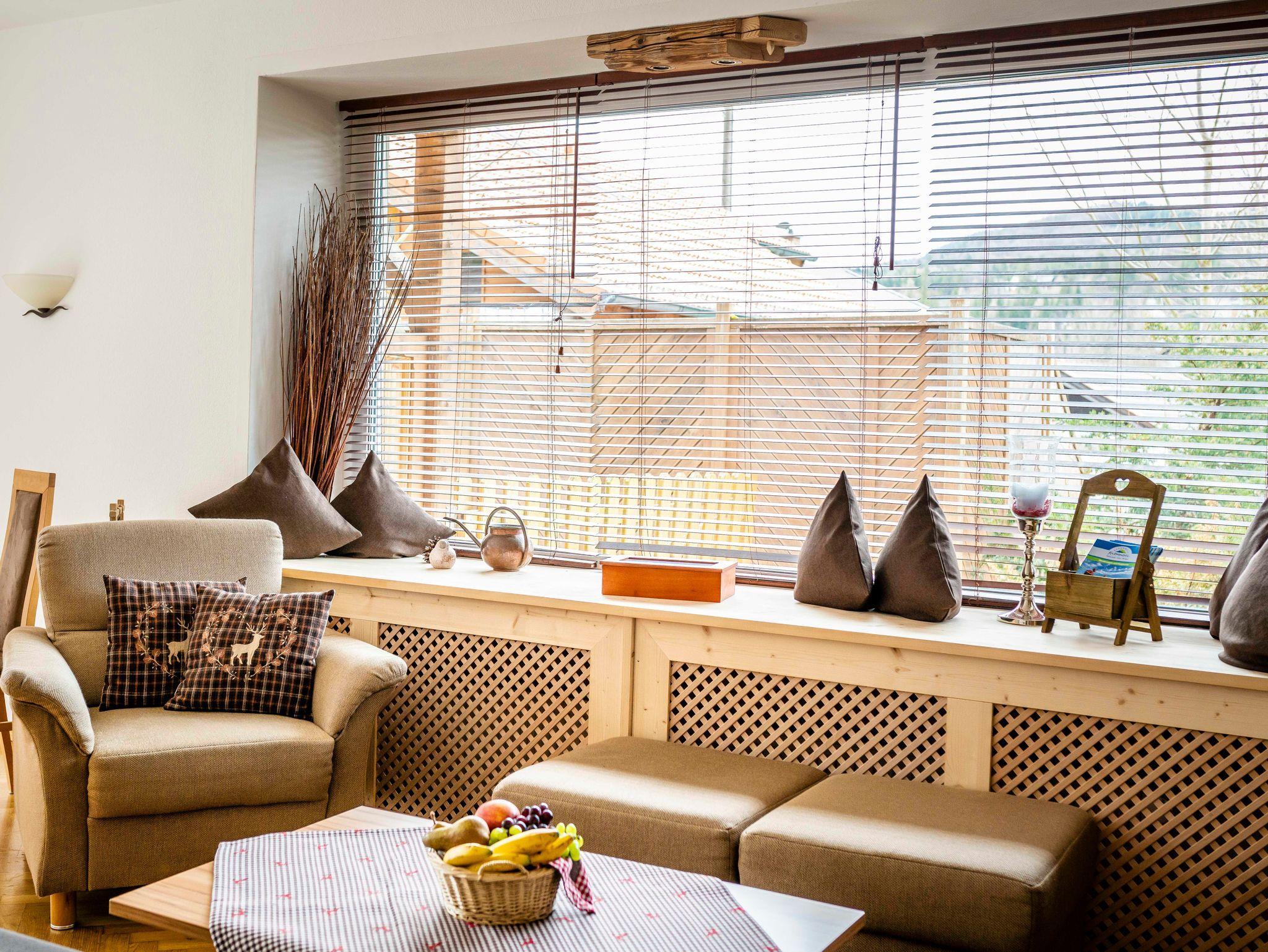 Der Wohnbereich ist mit bequemen Sofas und einem Flachbildfernseher ausgestattet. Hier kann man sich nach einem aktiven Tag in den Bergen entspannen und gemütliche Abende verbringen. Kostenloses WLAN steht ebenfalls zur Verfügung.