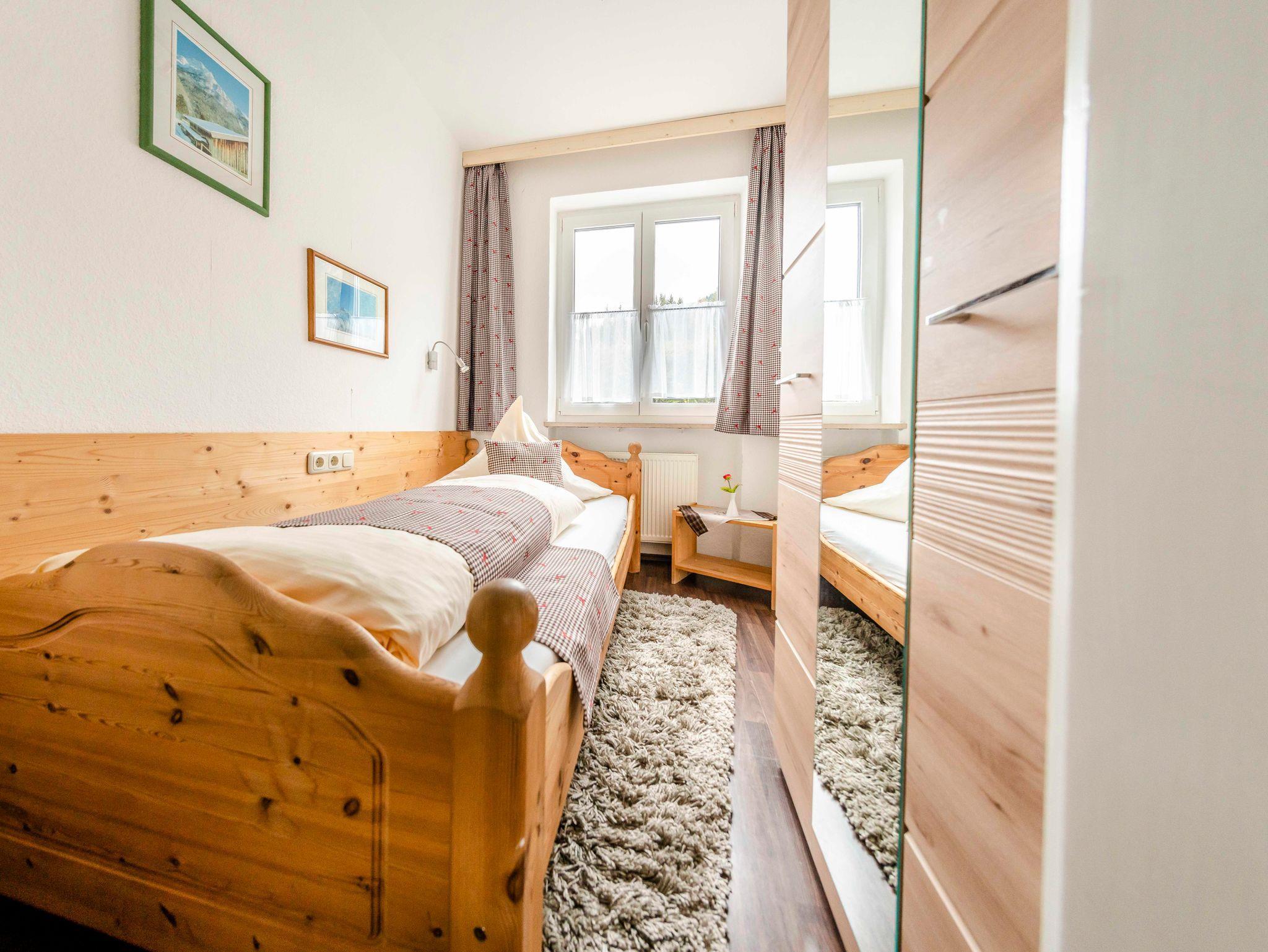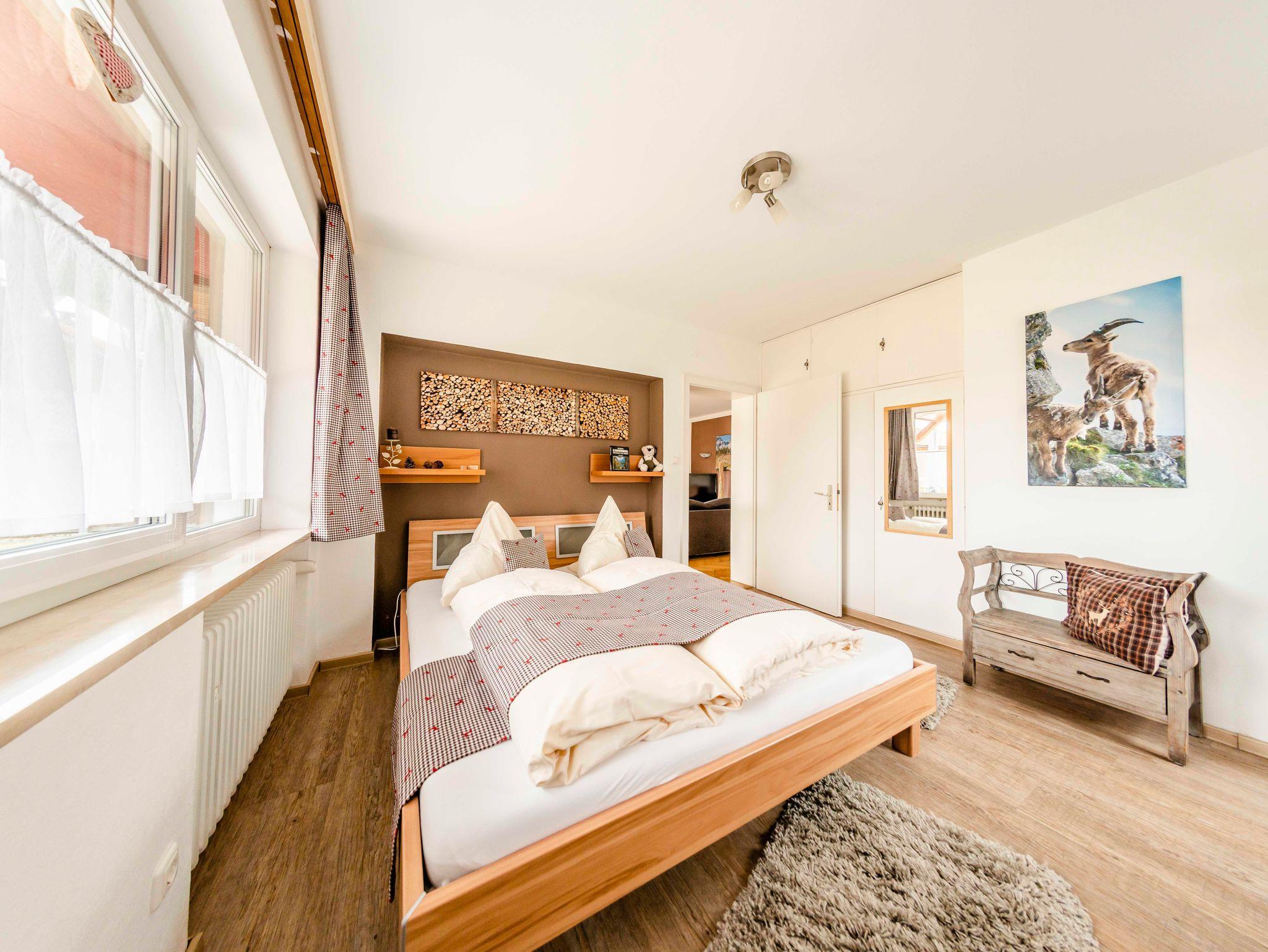 Die Ferienwohnung Erli 1 im Haus Erli in Mittenwald bietet Platz für bis zu 7 Personen. Neben dem komfortablen Doppelbett im Schlafzimmer gibt es zusätzliche Schlafmöglichkeiten in Form von Schrankbetten.