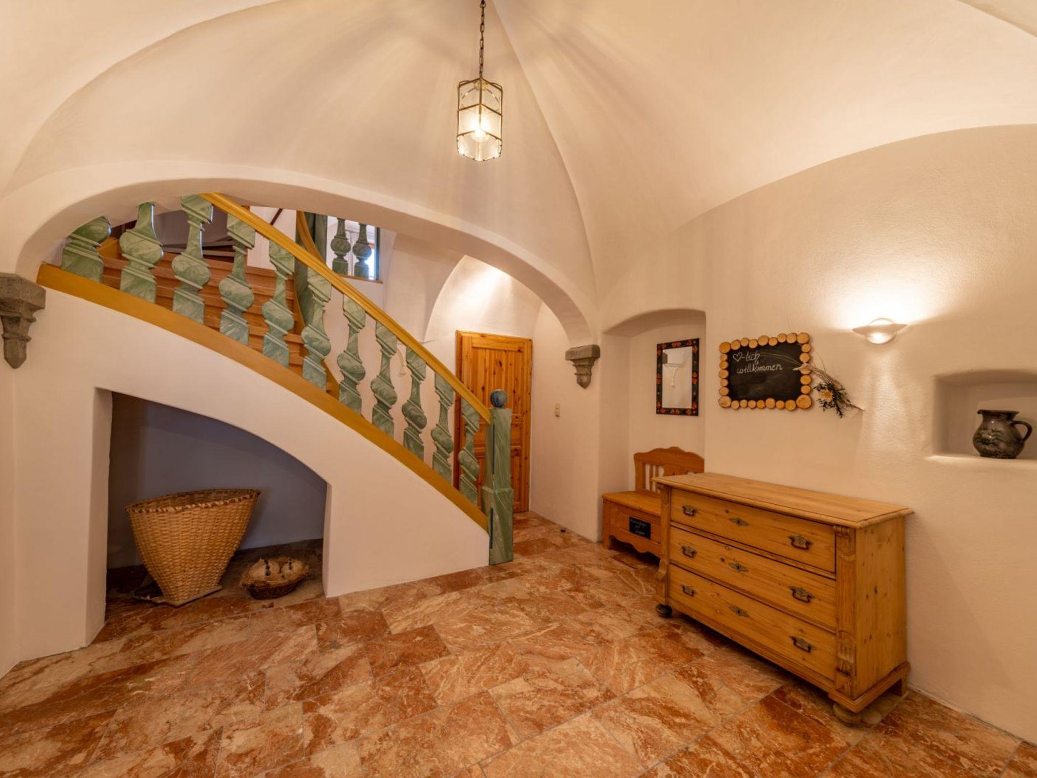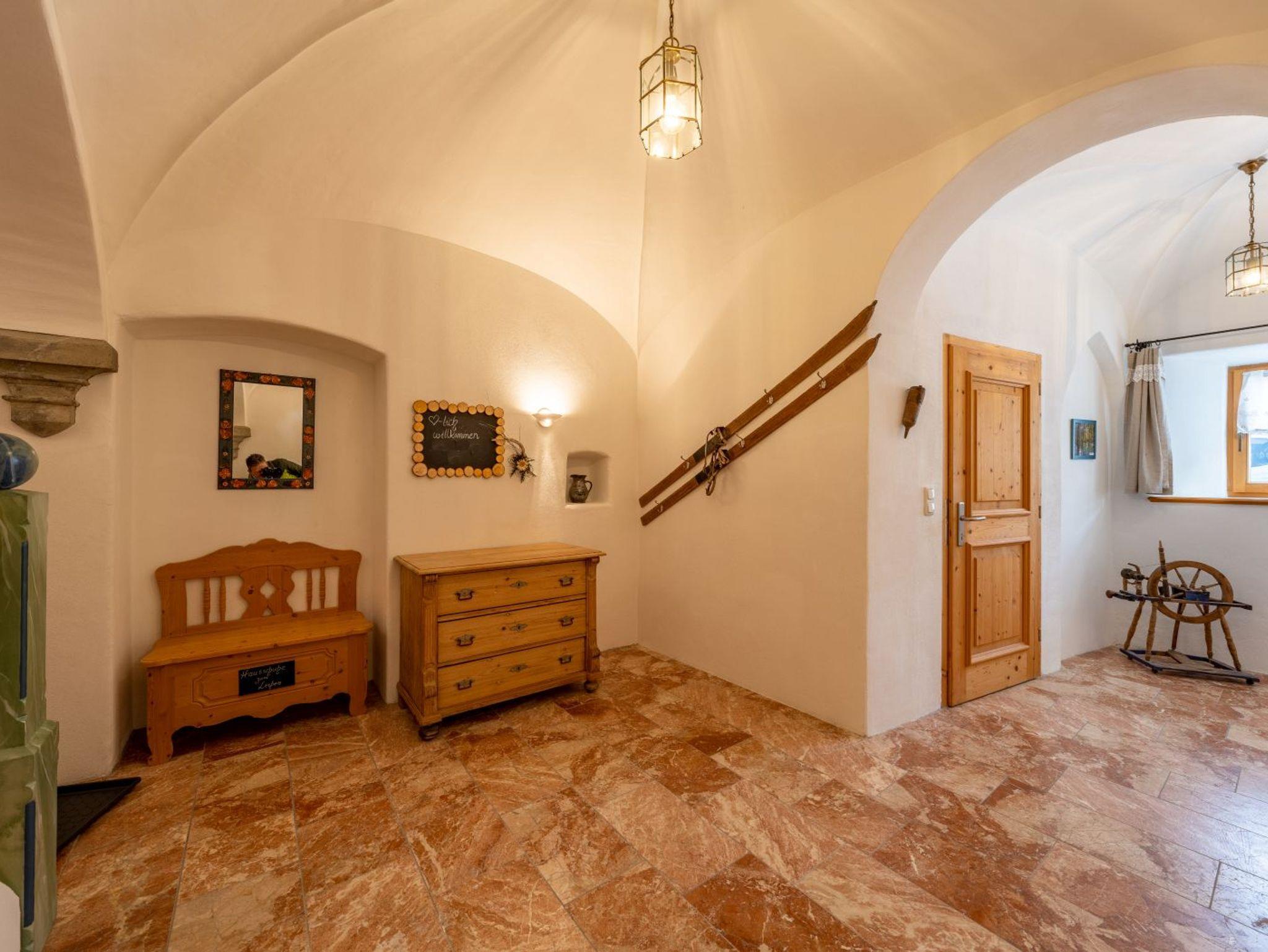 Die Unterkunft verfügt über einen außergewöhnlichen Eingangsbereich mit Gewölbe und Marmorboden. Hier haben Sie Platz für Kinderwagen, Fahrräder, Ski, Schlitten etc. Von dort aus geht es über die Garderobe in den ersten Stock.
