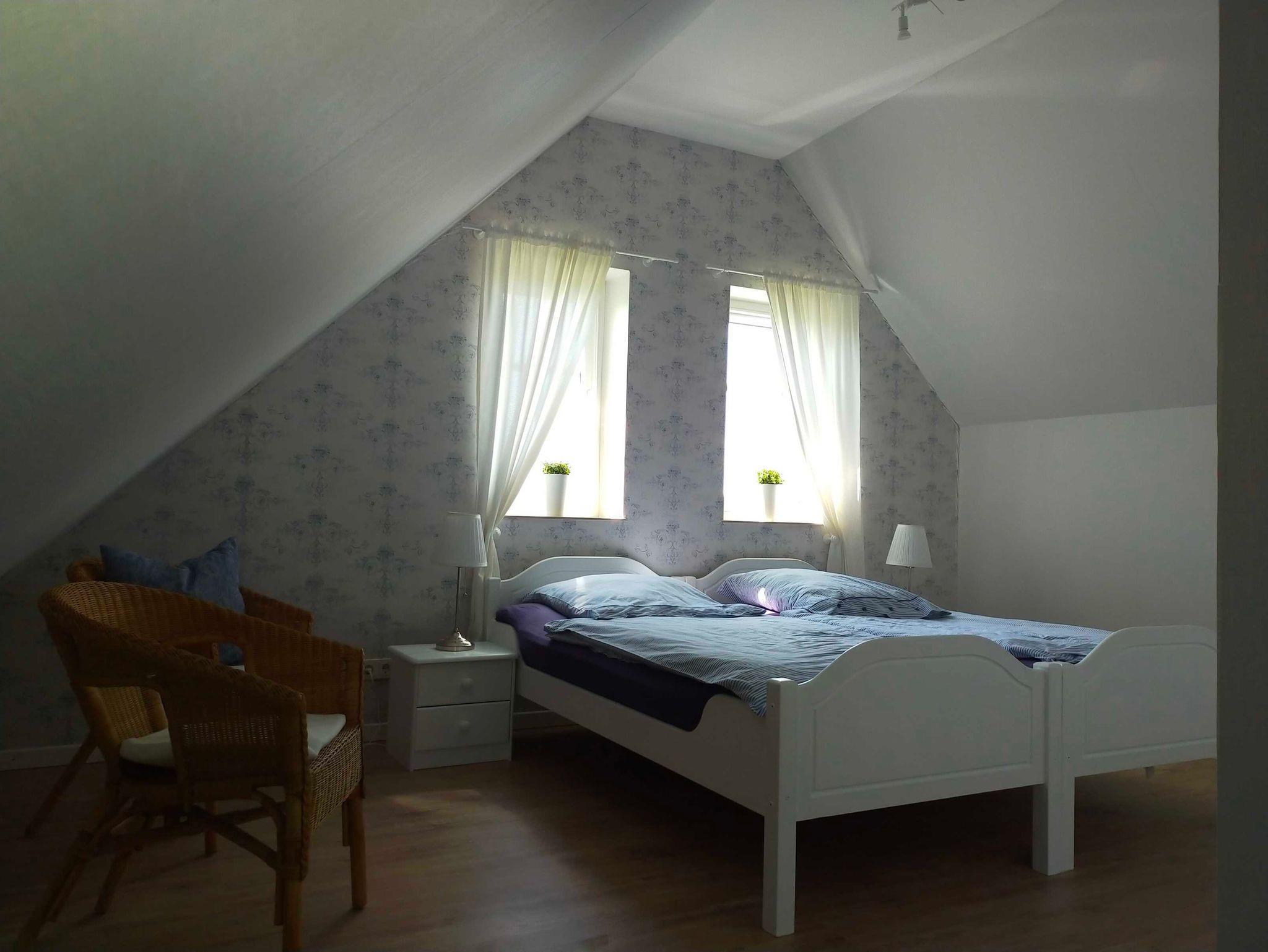 Die liebevoll eingerichtete Ferienwohnung Alide verfügt über zwei Schlafzimmer im Obergeschoss (ein Doppelzimmer, ein Zimmer mit zwei getrennt stehenden Betten). Zustellbetten und Babybetten möglich.