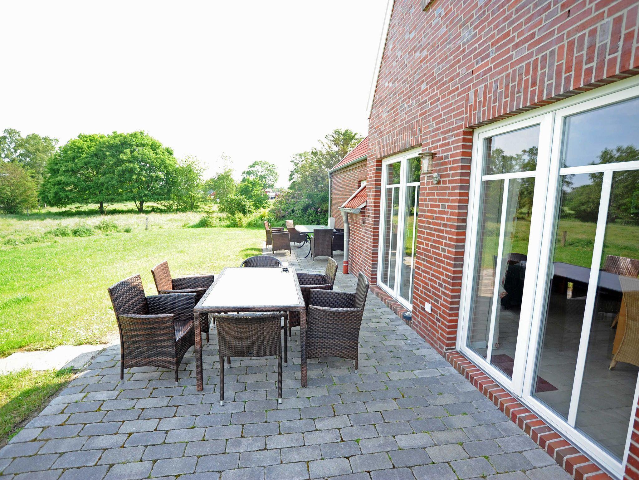 Das Ferienhaus Adamla in Moormerland bietet zwei separate Ferienwohnungen mit Terrasse und idyllischem Landschaftsblick.