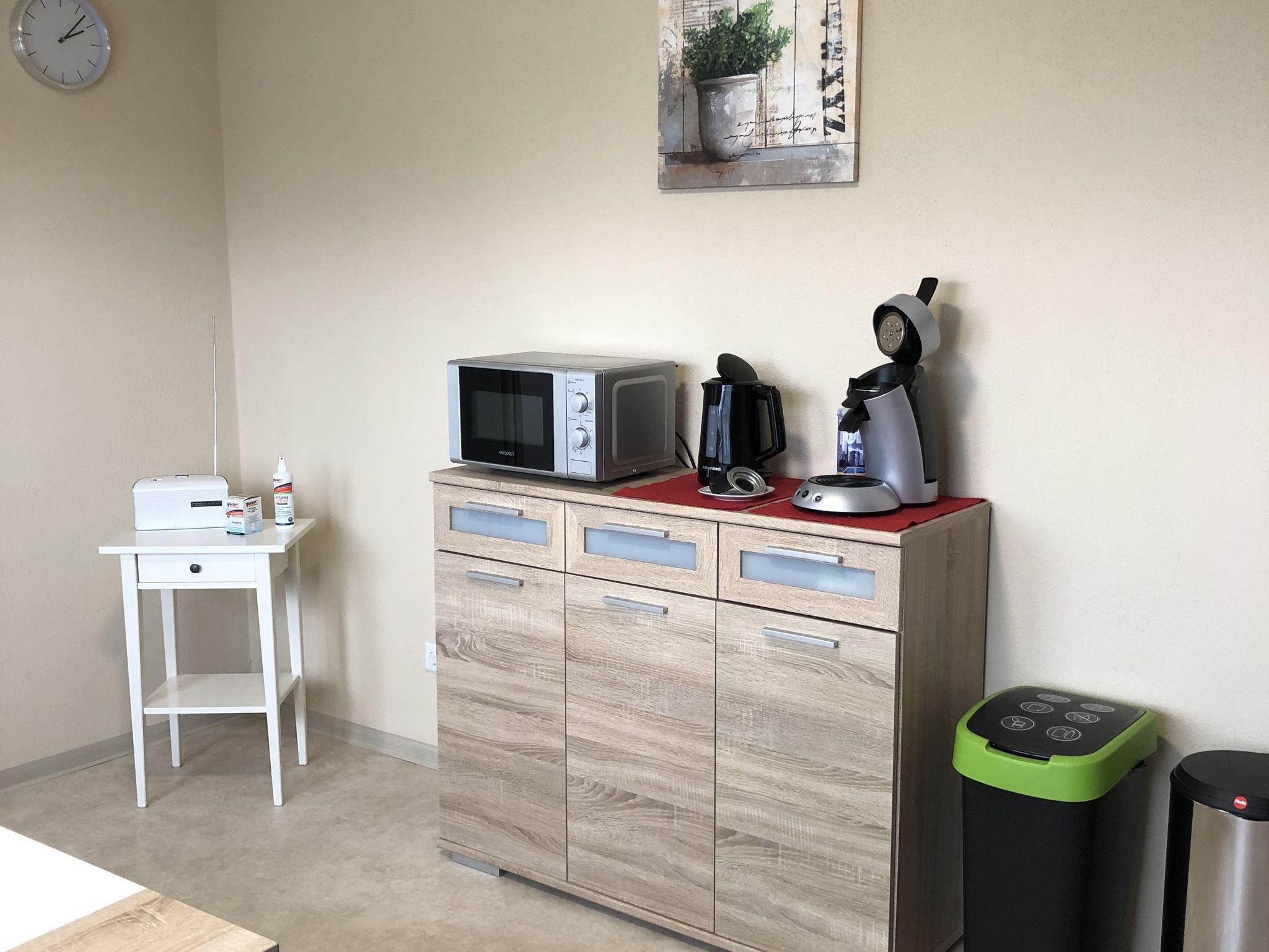 Angaben zum Objekt: Wohn-/Schlafraum mit Boxspringbett 1,60 x 2,00 m - Duschbad - Abstellraum - PKW Stellplatz - voll ausgestattete Küche mit Mikrowelle, Kaffeemaschine, Wasserkocher, Toaster und Spülmaschine - Bettwäsche - Handtücher und Fön - WLAN - Sat-TV - Nichtraucherwohnung - Haustiere leider nicht erlaubt.