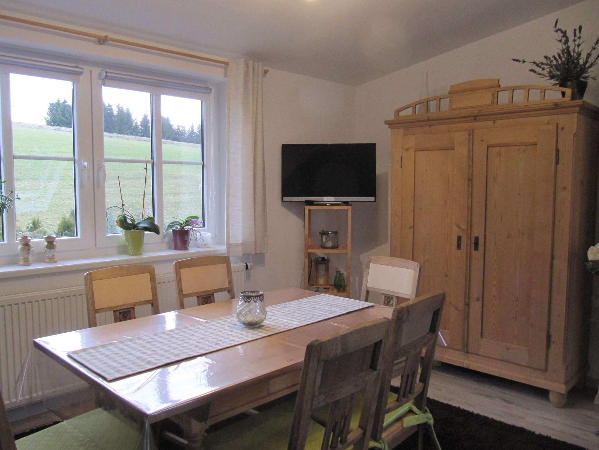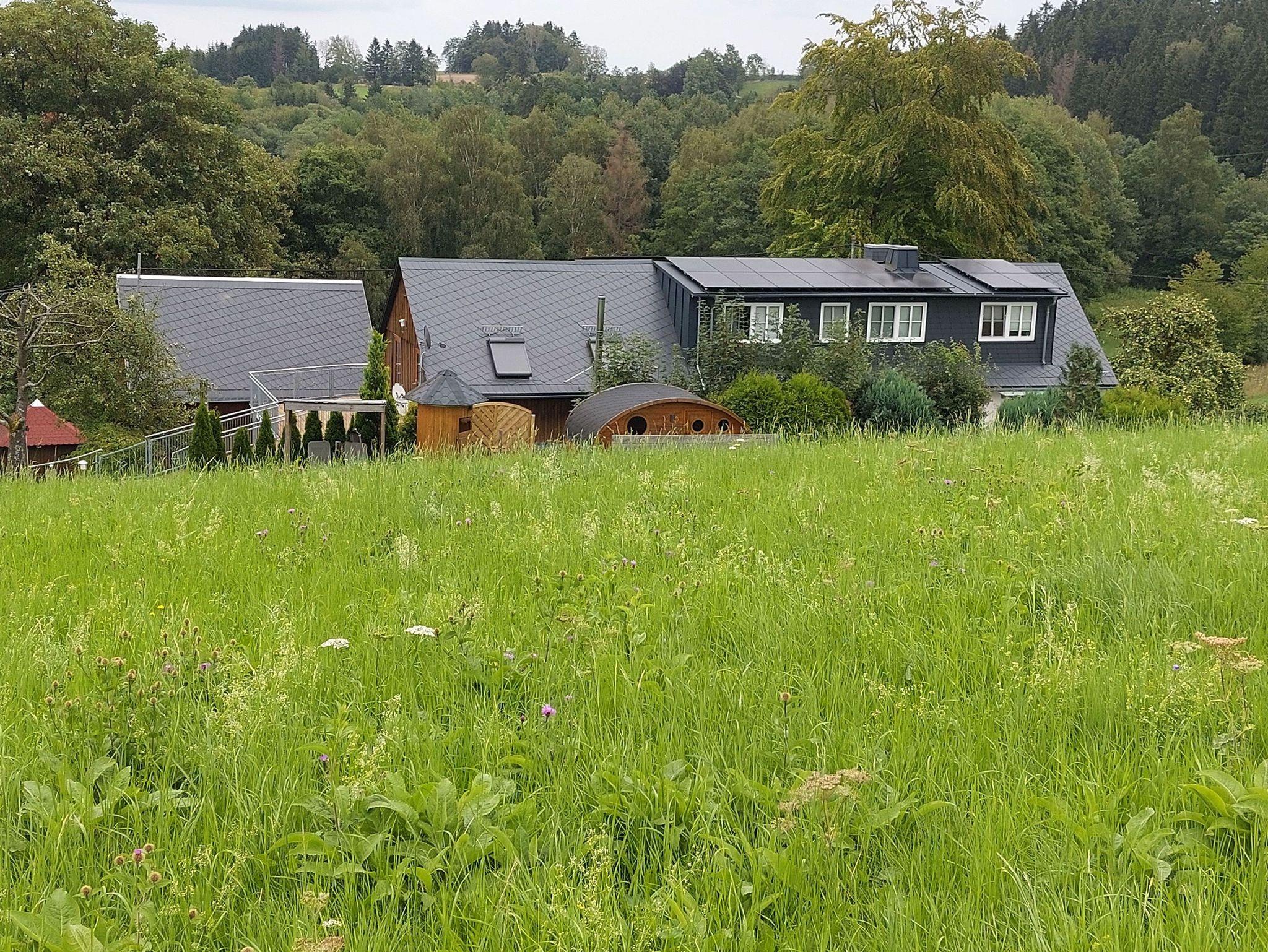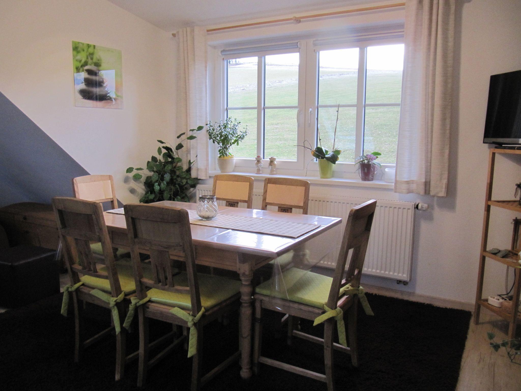 Auf unserer kleinen Farm am Fuße des 795 Meter hohen Döbrabergs im Frankenwald bieten wir seit 2018 die Ferienwohnung Auszeit im Dachgeschoß an, für 2-3 Personen, mit einem separaten Zugang und eigener Terrasse.