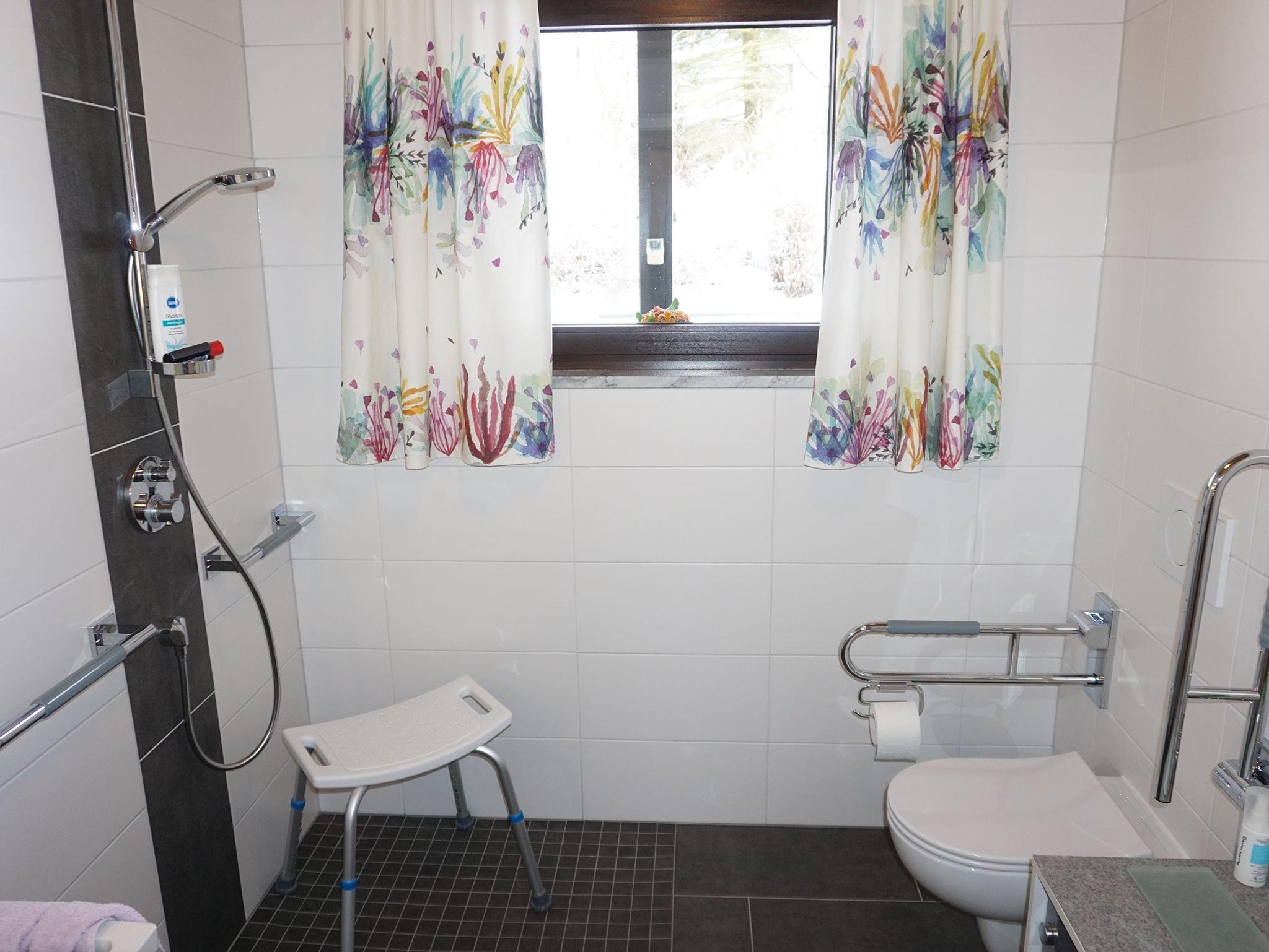 Die 40 qm große Ferienwohnung über eine Etage ist barrierefrei nach DIN und über eine Rampe oder Stufe zugänglich. Der Zugang erfolgt über den Fichtenweg.Die Ferienwohnung wurde 2021 komplett renoviert und neu eingerichtet. Dabei wurde viel Wert auf eine hochwertige und ansprechende Einrichtung gelegt. Die Wohnung bietet Platz für 2 Erwachsene. Für ein Kind steht ggf. ein komfortables Schlafsofa im Wohnzimmer bereit. Bei dem Doppelbett im Schlafzimmer ist das Fußende offen. Der großzügige Balkon ist mit Gartenmöbeln ausgestattet und bietet einen schönen Blick auf die höchste Erhebung im Frankenwald, den Döbraberg. Das Badezimmer ist komplett barrierefrei (unterfahrbares Waschbecken, befahrbare Dusche mit Sitzmöglichkeit, WC mit Stützklapphilfe) und modern saniert. Ein Handtuchtrockner und Fön ist vorhanden. Bei der Anreise liegen Handtücher bereit und die Betten sind bezogen. Die Küche ist komplett ausgestattet (Backofen, Sodastream, Wasserkocher, Kaffeemaschine, Mikrowelle, Kochutensilien, Küchenwäsche). Für Fahrräder und Sportutensilien gibt es eine abschließbare Garage. Bei Interesse bieten wir Ihnen gerne geführte Wanderungen durch den Frankenwald an, da wir selbst leidenschaftliche Wanderer sind.