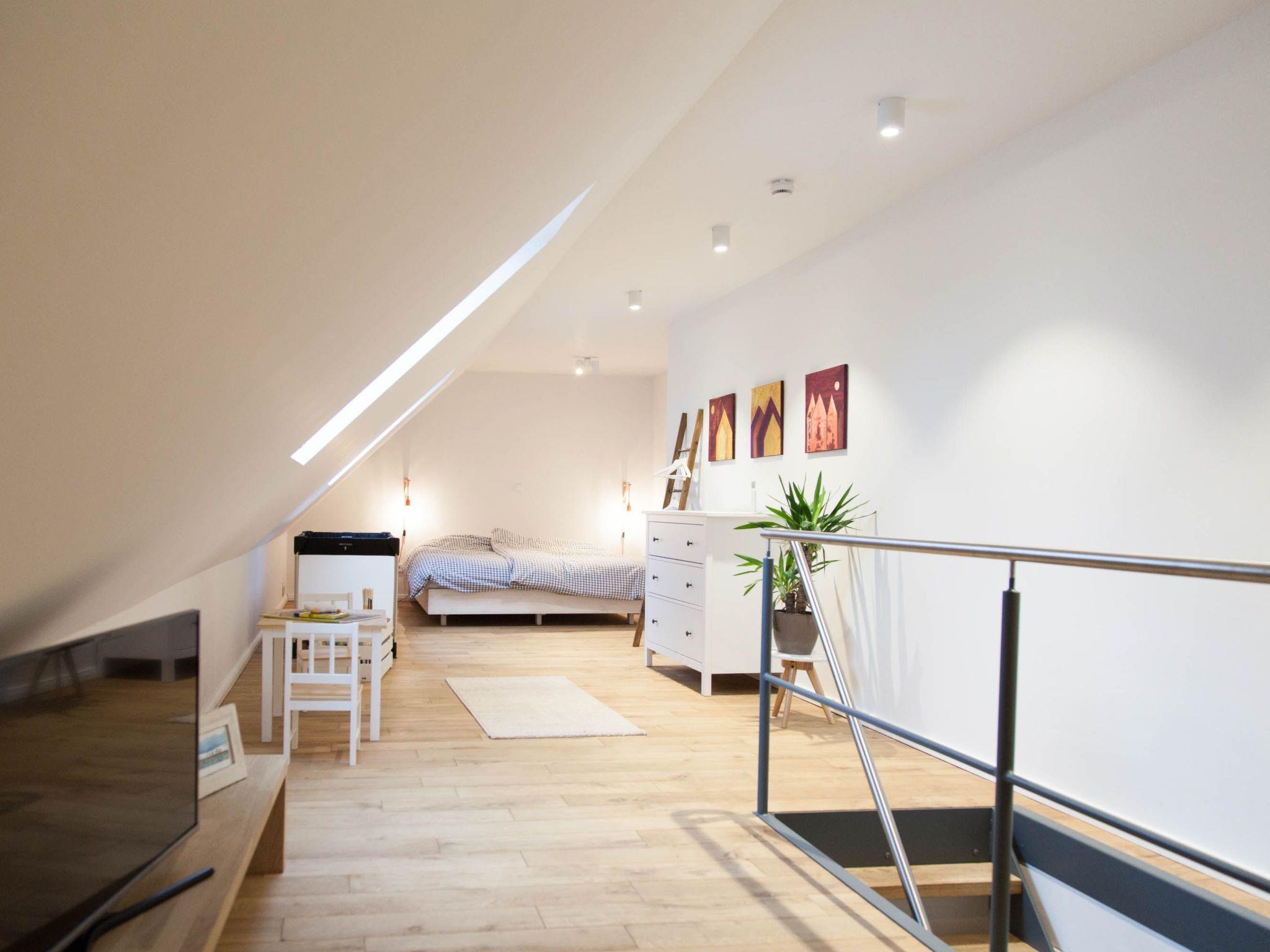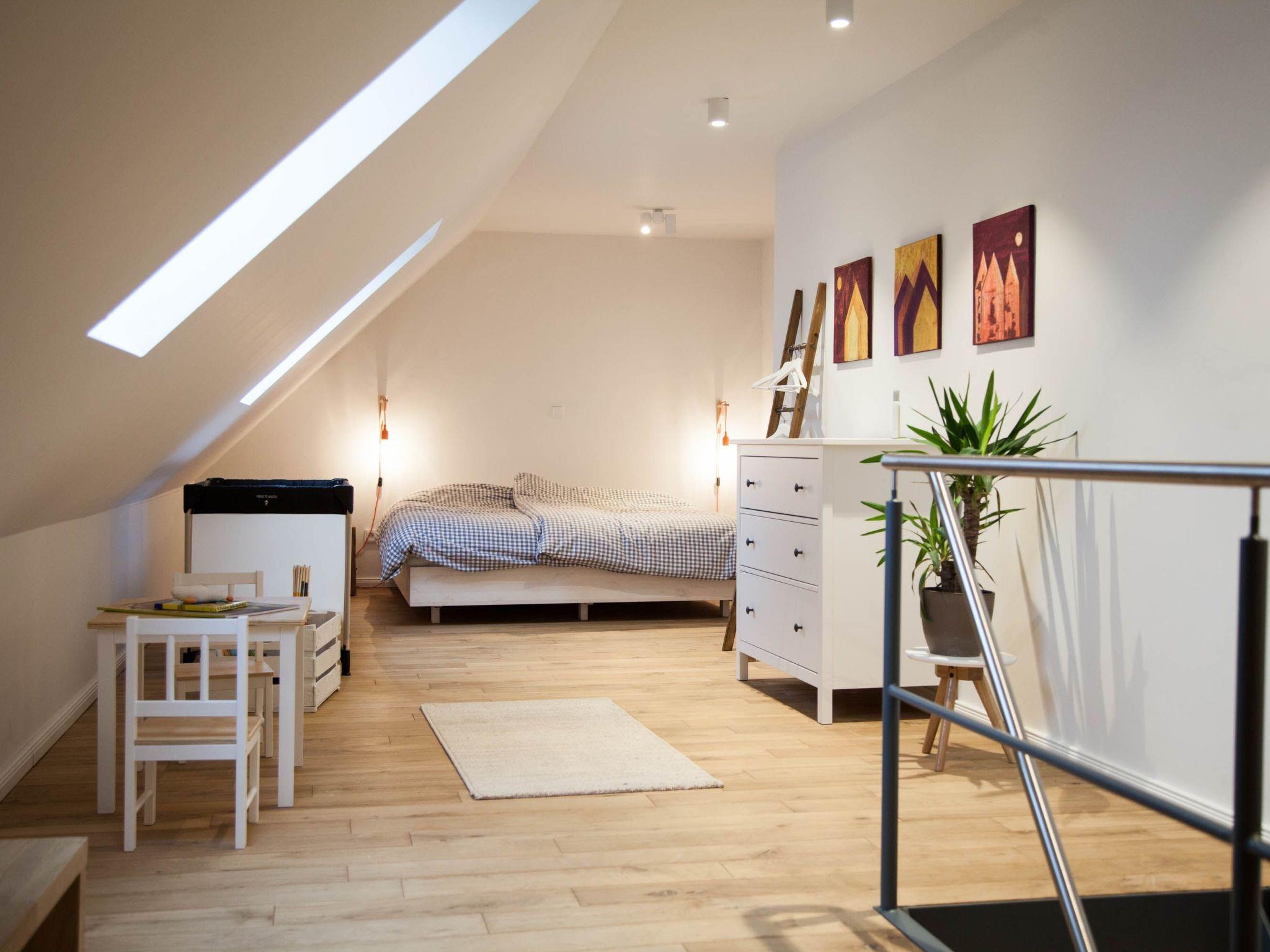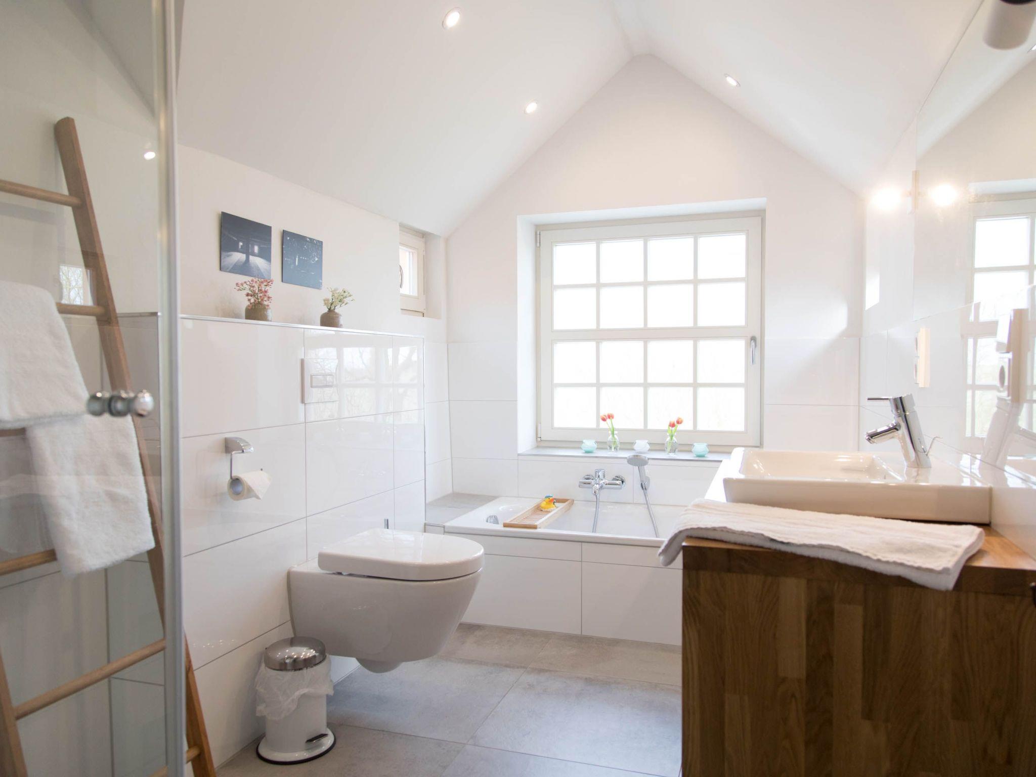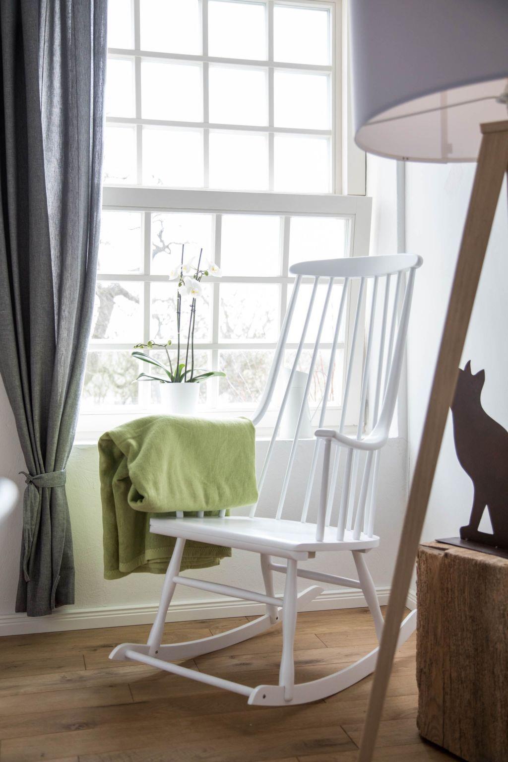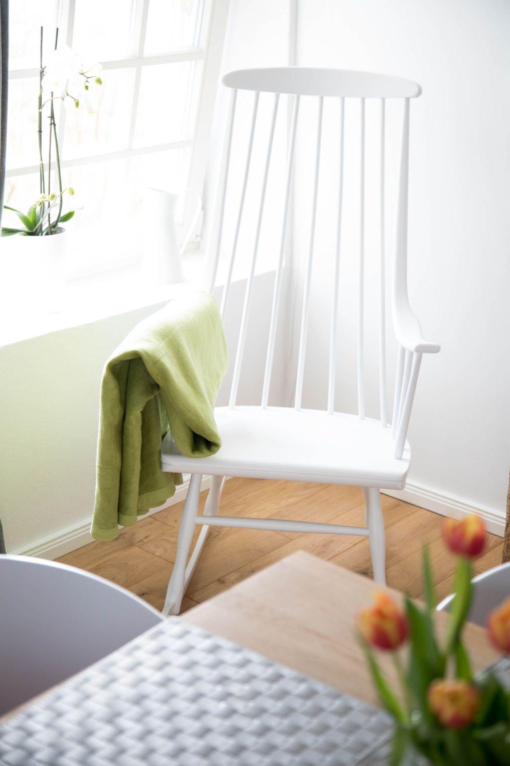 Hohe Decken, dicke Balken und die großen Sprossenfenster prägen das Erscheinungsbild der hellen Wohnung. Echtholzdielen, die moderne Einrichtung, ausgesuchte Details und Bilder der Esenser Künstlerin Käthe Janssen runden den Charme der Wohnung ab. Kochliebhaber kommen in der voll ausgestatteten Küche auf ihre Kosten. Wer trotz Ostfriesentee seinen Kaffee vermisst, wird sich über die Nespresso-Maschine samt Milchaufschäumer freuen.