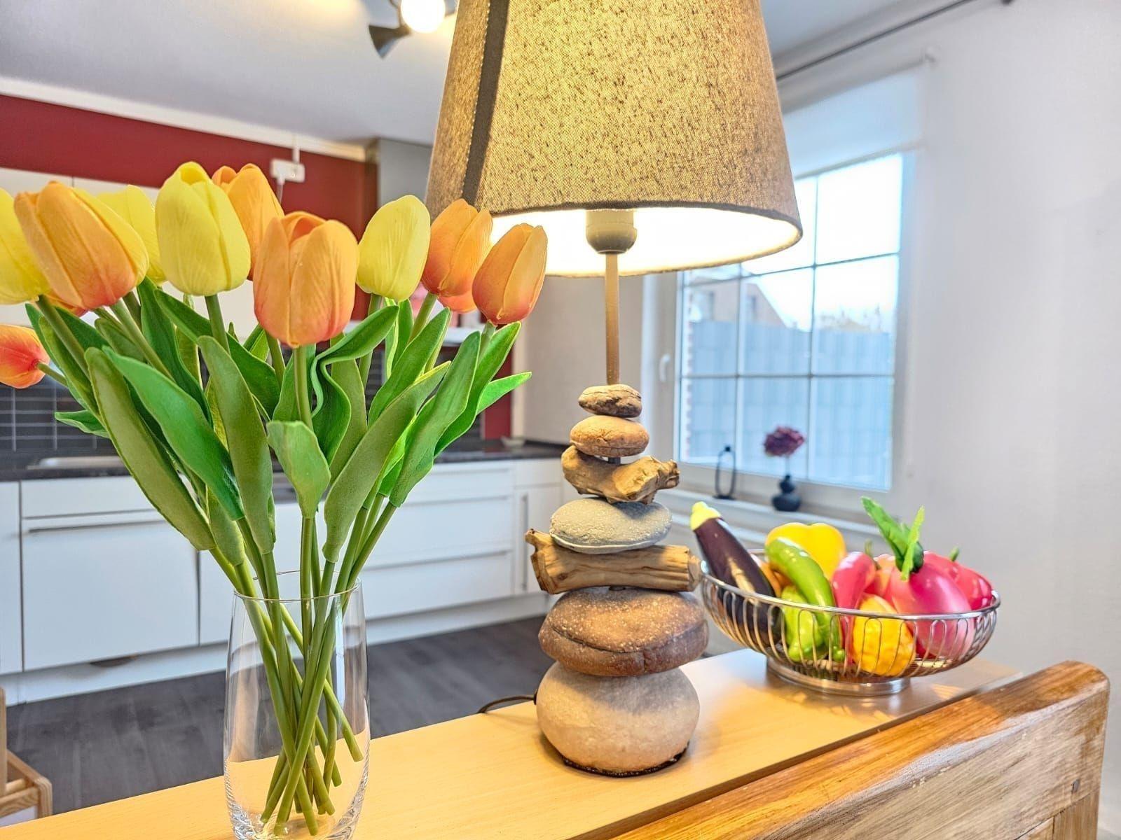 In dieser modernen Ferienwohnung erwartet die Gäste eine helle und freundliche Atmosphäre. Sie bietet zwei Schlafzimmer, eines mit einem Doppelbett und das andere mit zwei Einzelbetten, ideal für Paare oder Familien. Die offene Küche ist mit allen Annehmlichkeiten ausgestattet, darunter Geschirrspüler, Elektro- und Gasherd, Backofen, Mikrowelle, Kühlschrank und Kaffeemaschine. Ein Esstisch sorgt für gesellige Mahlzeiten. Das Badezimmer verfügt über eine bodengleiche Dusche und ein Fenster, das frische Luft und Licht hereinlässt.