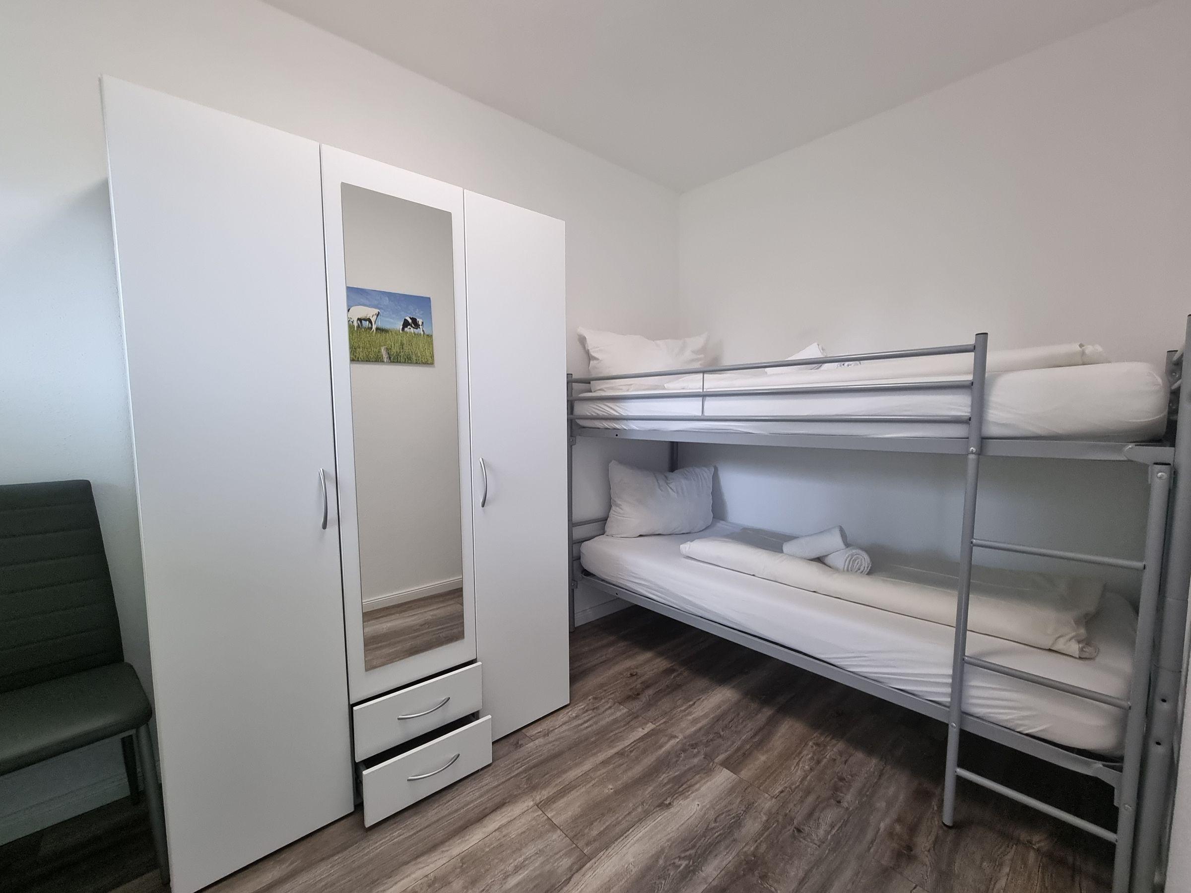 Die Ferienwohnung bietet eine einladende Räumlichkeit und eine hochwertige Ausstattung, die jeden Aufenthalt angenehm gestaltet. Sie umfasst zwei Schlafzimmer mit insgesamt einem Doppelbett und drei Einzelbetten sowie eine Schlafcouch im Wohnschlafzimmer. Die offene Küche ist mit einem Elektro-/Gasherd, Backofen, Kühlschrank, Kaffeemaschine, Toaster und Wasserkocher ausgestattet und bietet auch eine Gefriermöglichkeit. Für Familien steht ein Kinderhochstuhl zur Verfügung. Das Badezimmer ist mit einem Fenster, einem Duschbad und einem Haartrockner ausgestattet, während im Wohnbereich eine HiFi-Anlage und ein TV zur Unterhaltung einladen. WLAN ist selbstverständlich verfügbar. Praktische Extras wie Geschirr, Besteck, Geschirrtücher und ein Starterset für Badutensilien runden das Angebot ab. Der Parkplatz vor der Tür und die allergikergeeignete Ausstattung sorgen für zusätzlichen Komfort.