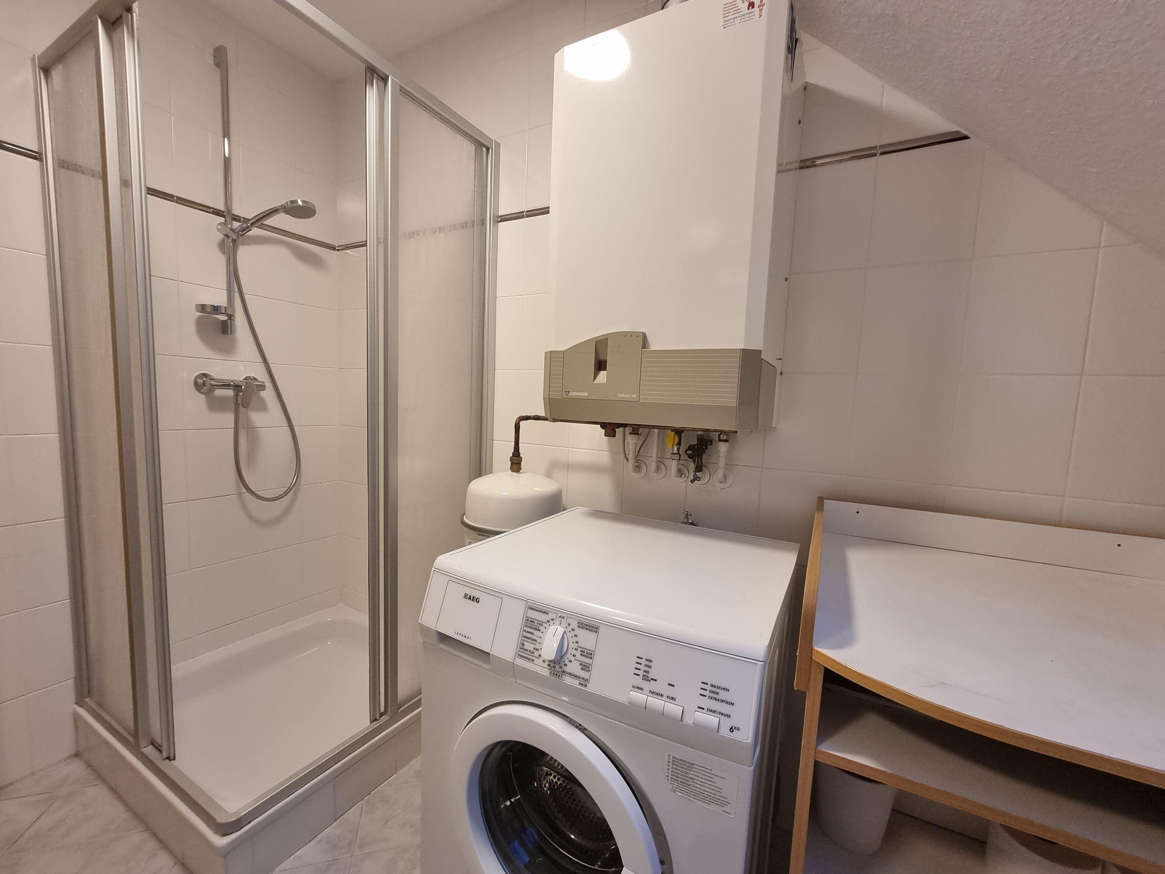 Das gemütliche Wohnzimmer mit Kamin und HiFi-Anlage sorgt für behagliche Abende. Die Wohnung ist allergikergeeignet und bietet ein Duschbad mit Fenster, ein Gäste-WC sowie zusätzliche Annehmlichkeiten wie eine Waschmaschine, einen Kühlschrank mit Gefriermöglichkeit und eine Kaffeemaschine.