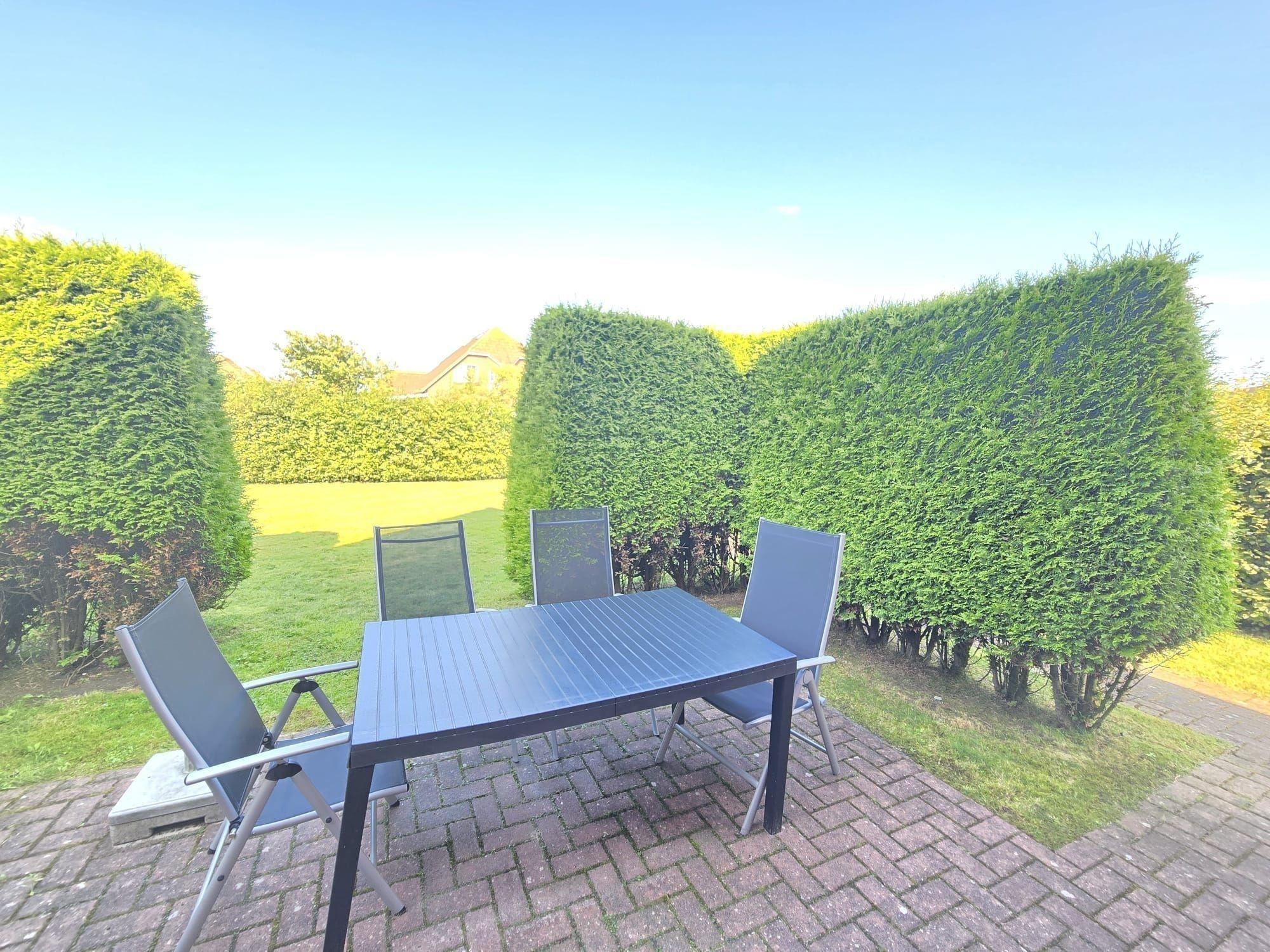 Die Ferienwohnung bietet einen charmanten Außenbereich mit einem eigenen Garten, in dem die Gäste entspannen können. Ausgestattet mit bequemen Liegestühlen und einer Terrasse lädt der Garten zum Verweilen ein. Ein Holzkohlegrill steht bereit, um gemütliche Grillabende zu erleben. Zudem sind Fahrräder verfügbar, ideal für Erkundungstouren in der Umgebung.