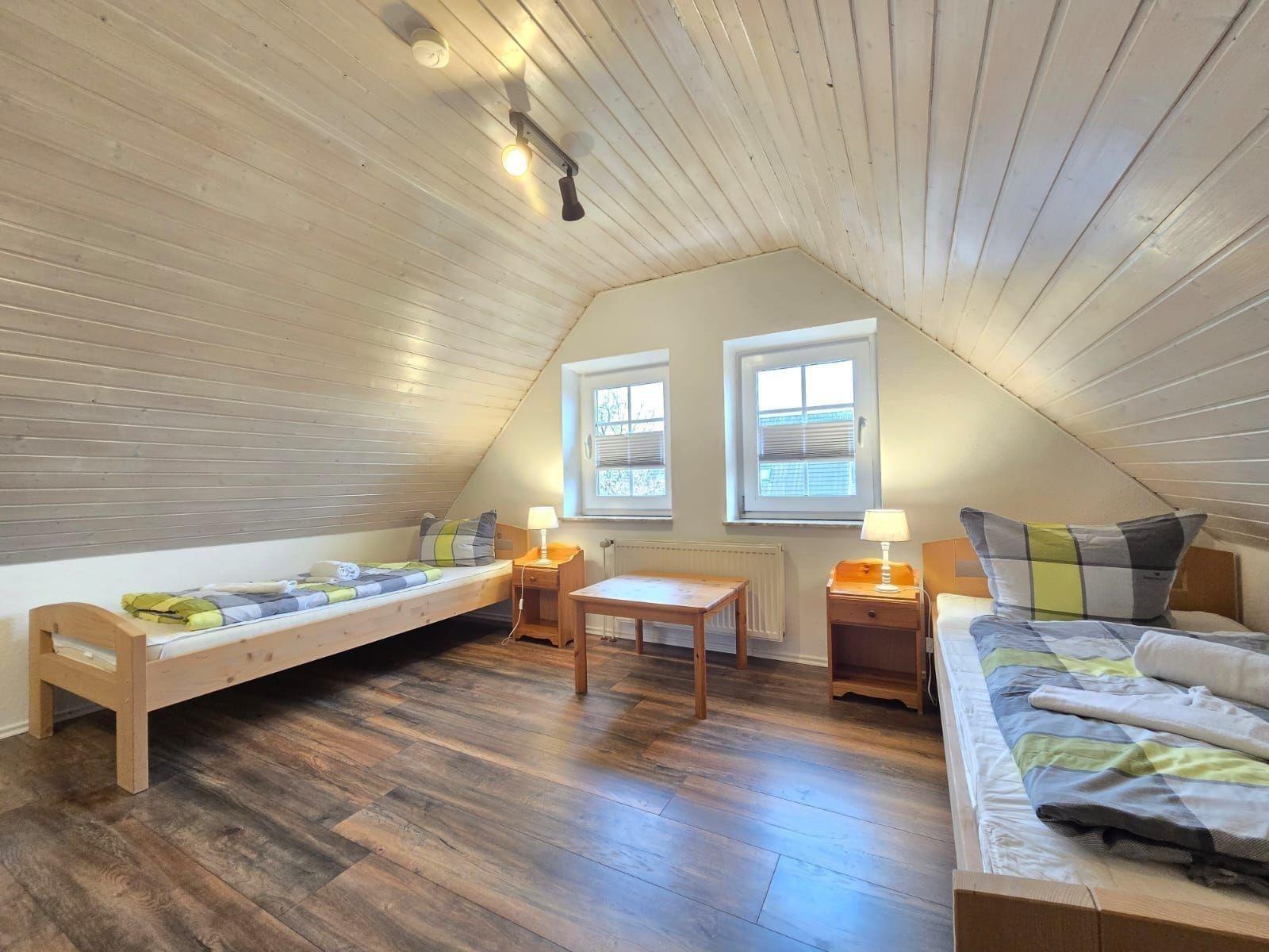 Das Ferienhaus Strandkrabbe in Neßmersiel bietet Platz für bis zu 4 Personen und besticht durch eine freundliche, helle Atmosphäre. Im Erdgeschoss befindet sich ein Schlafzimmer mit einem komfortablen Boxspringbett (180 x 200 cm), ein modernes Duschbad mit WC sowie ein gemütliches Wohnzimmer mit Kaminofen, das zum Entspannen einlädt. Die offene Küche ist vollständig ausgestattet und ideal für gemeinsame Kochabende. Über eine offene Holztreppe gelangt man ins Obergeschoss, wo zwei weitere Schlafzimmer mit jeweils zwei Einzelbetten und einer eigenen Waschgelegenheit sowie ein separates WC zur Verfügung stehen. Der hochwertige Vinylboden im Erdgeschoss und Laminat im Obergeschoss sind allergikerfreundlich. Kostenloses Highspeed-WLAN ist im gesamten Haus verfügbar. Alle Fenster sind mit Sicht-/Sonnenschutzplissees ausgestattet, Schlafzimmer zusätzlich mit Verdunklungsplissees.
