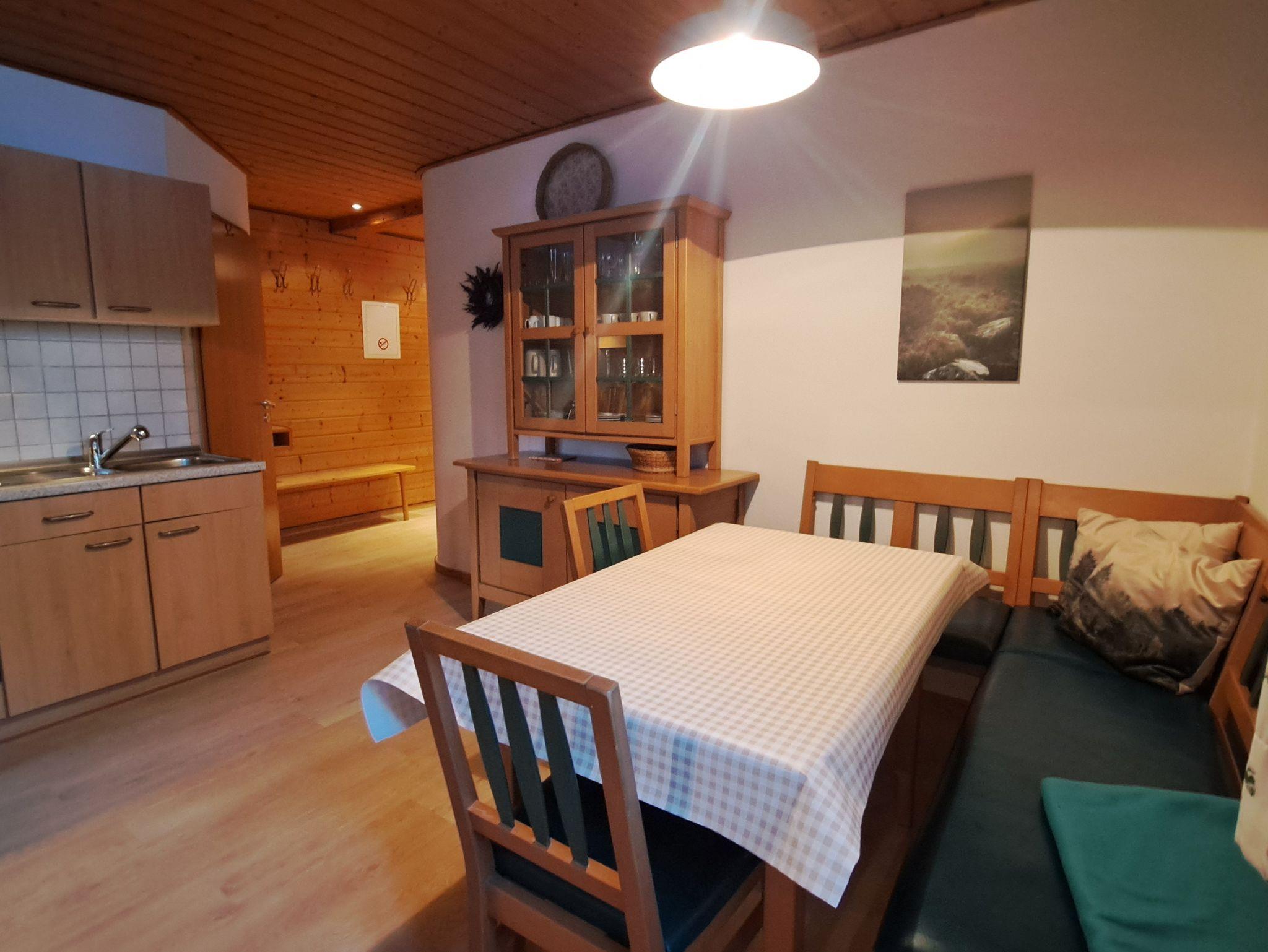 Freundliche Ferienwohnung im Erdgeschoß für 1-3 Personen. Wohnküche: Küchenzeile mit Herd und Backofen, Kühlschrank mit Gefrierfach, Kaffeemaschine, Wasserkocher, Toaster, Geschirr für 6 Personen. Gemütliche Essecke. Ein Schlafzimmer für 2 Personen mit getrennt stellbaren Betten. Ein Einzelzimmer. Bad mit Dusche, WC und Fön. Bettwäsche,Handtücher, Geschirrtücher und W-LAN im Preis inbegriffen. Zentraler Waschraum mit Waschmaschine und Wäschetrockner gegen Gebühr