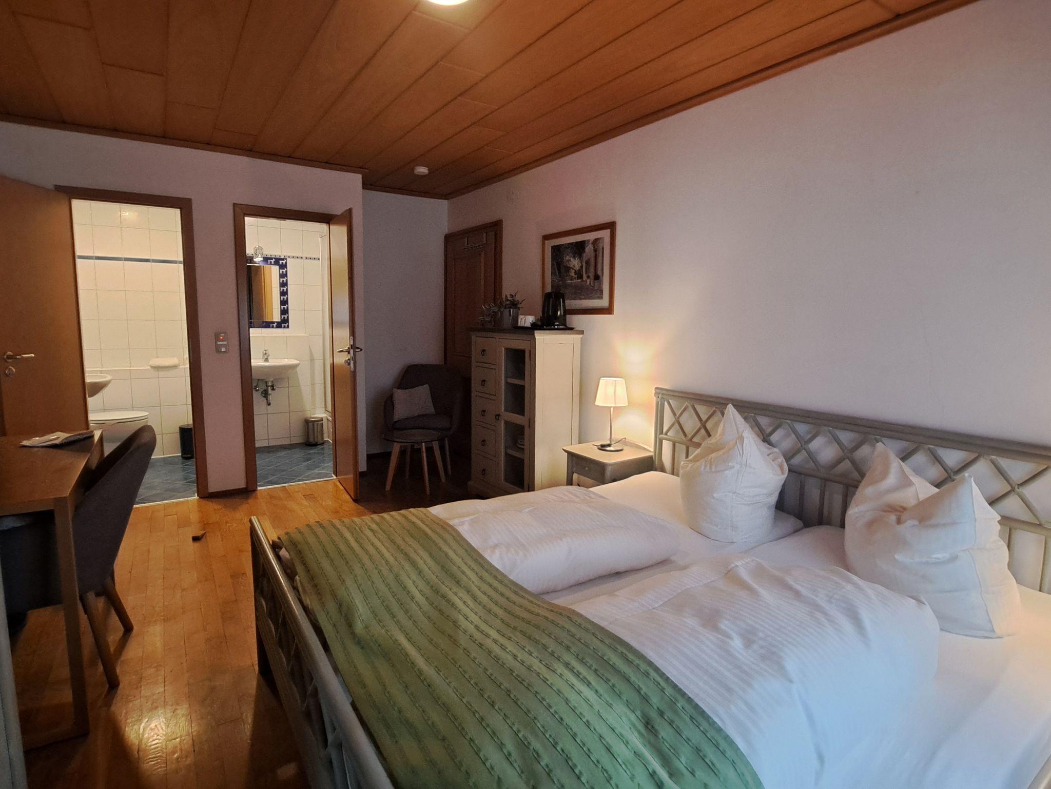 Gemütliches Doppelzimmer zum Verweilen und Entspannen ohne Frühstück. Wasserkocher und Geschirr für 2 Personen. Kaffeevollautomat und Kühlschrank steht im Aufenthaltsraum zur Verfügung. Bad und WC getrennt. Fön vorhanden. Bettwäsche,Handtücher, Geschirrtücher und W-LAN im Preis inbegriffen. Zentraler Waschraum mit Waschmaschine und Wäschetrockner gegen Gebühr