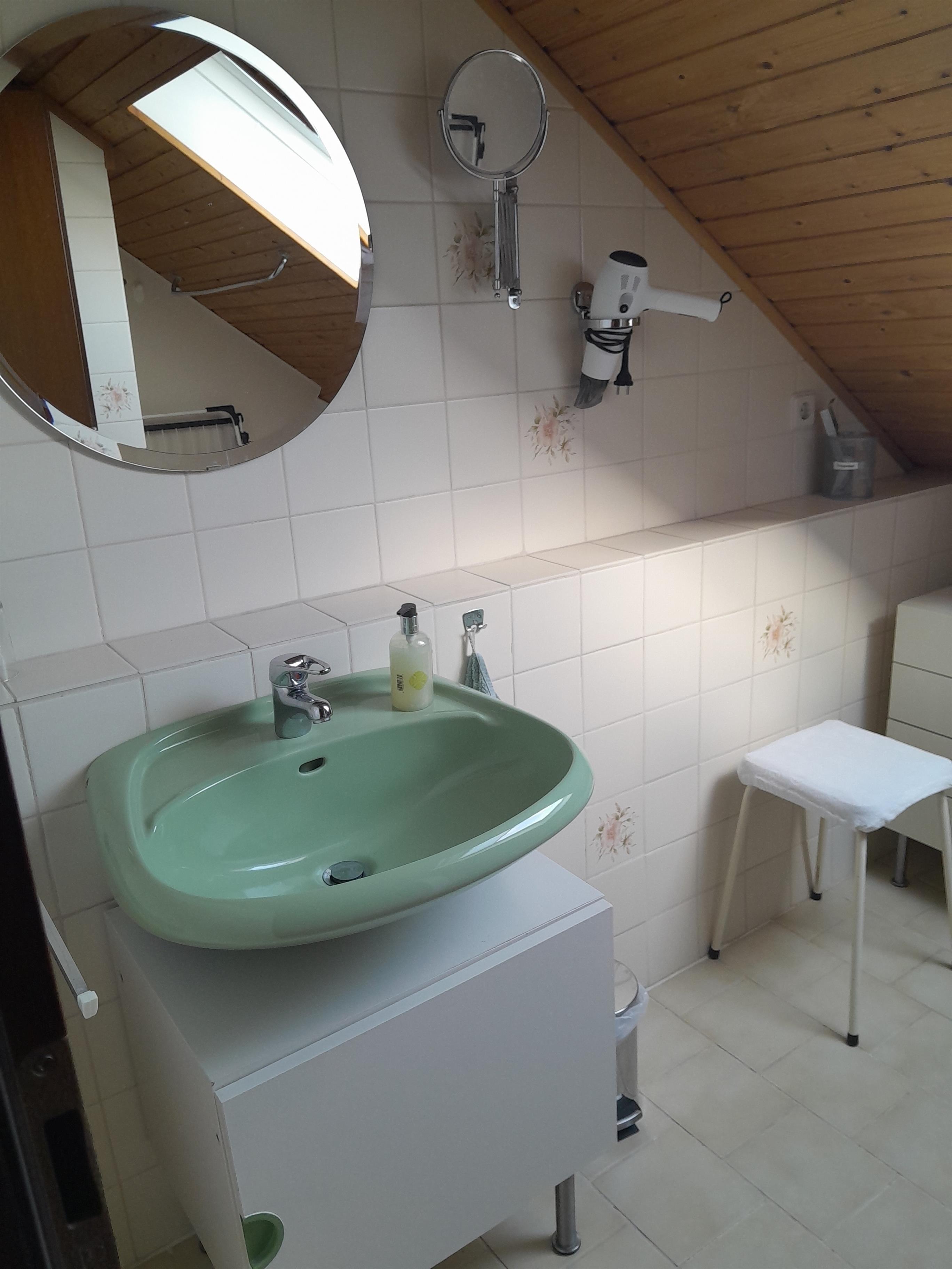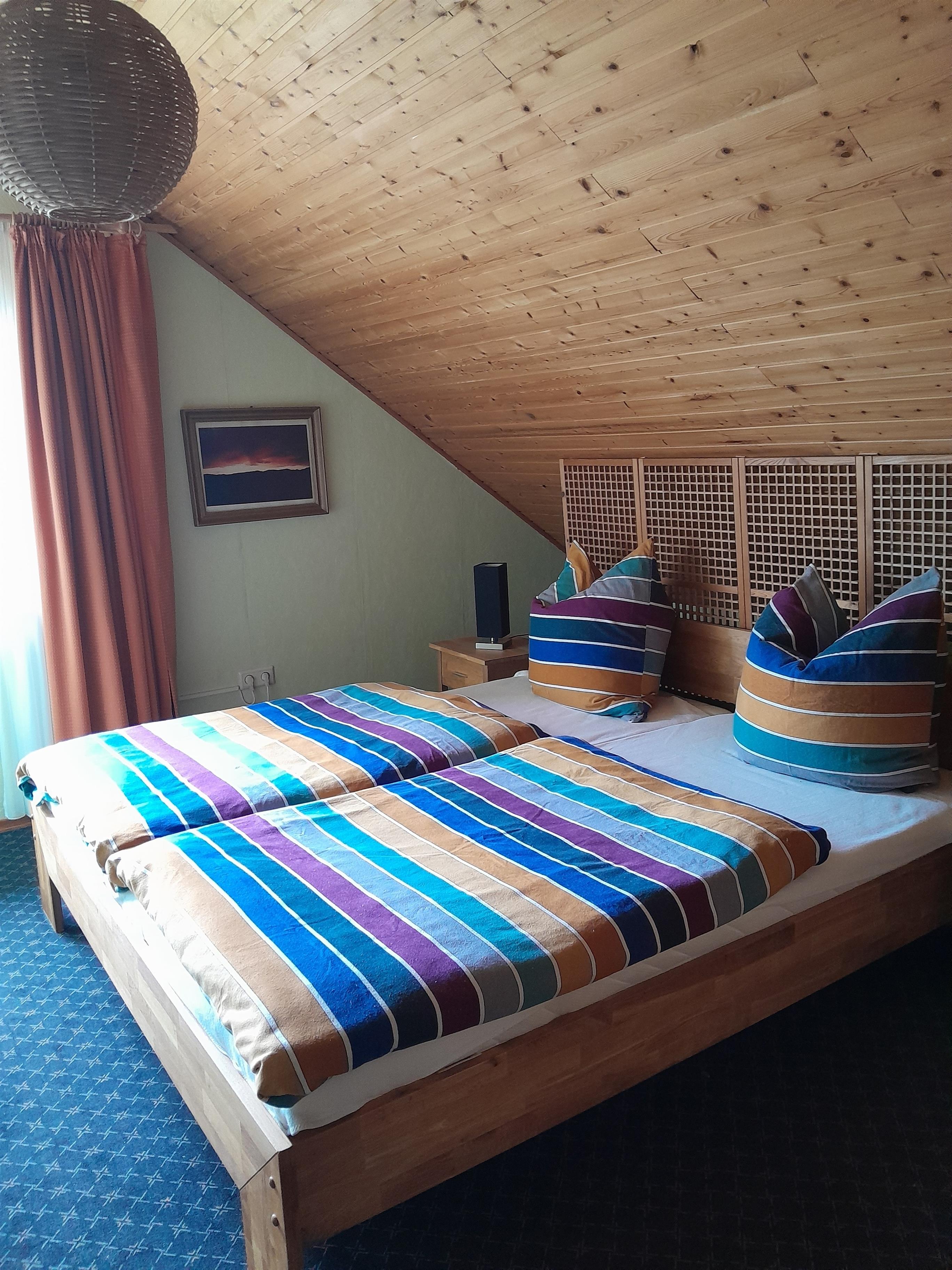 Schlafzimmer (Ostseite, Doppelbett), Duschbad/WC (Föhn sowie gr. Dachflächenfenster).