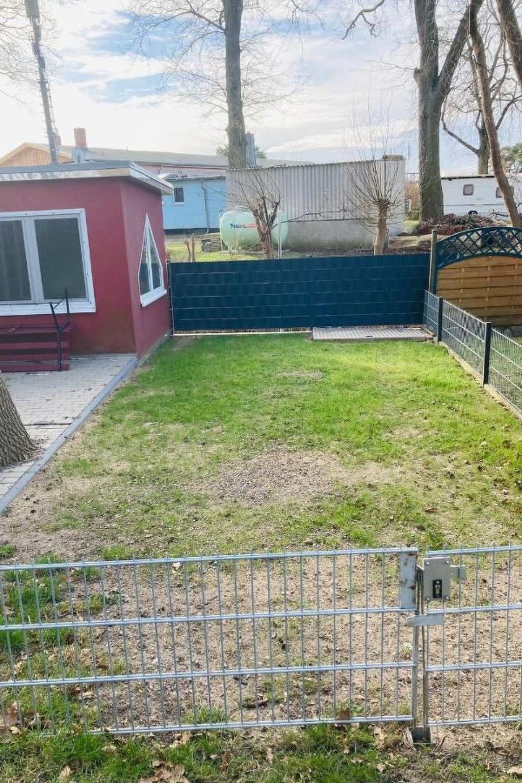 Kleiner Bungalow am Salzhaff mit Terrasse und Nähe zum Wassersportrevier, ideal für Erholung zwischen Wald und Strand.