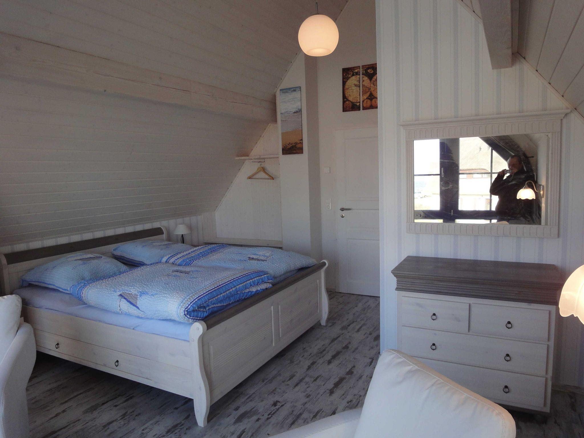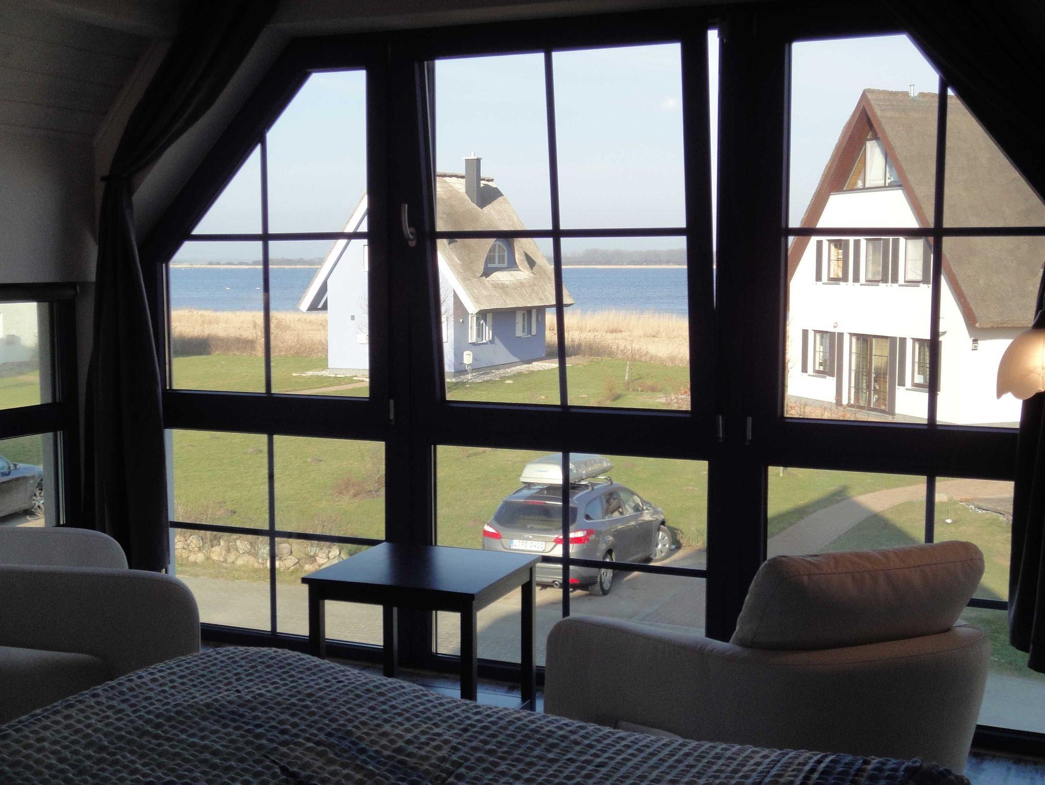In jedem der zwei Schlafzimmer finden Sie ein bequemes Doppelbett. Das größere Schlafzimmer hat zudem eine gemütliche Sitzecke zum Lesen oder einfach den Blick schweifen lassen über die schöne Boddenlandschaft bis zum Leuchtturm auf Hiddensee.