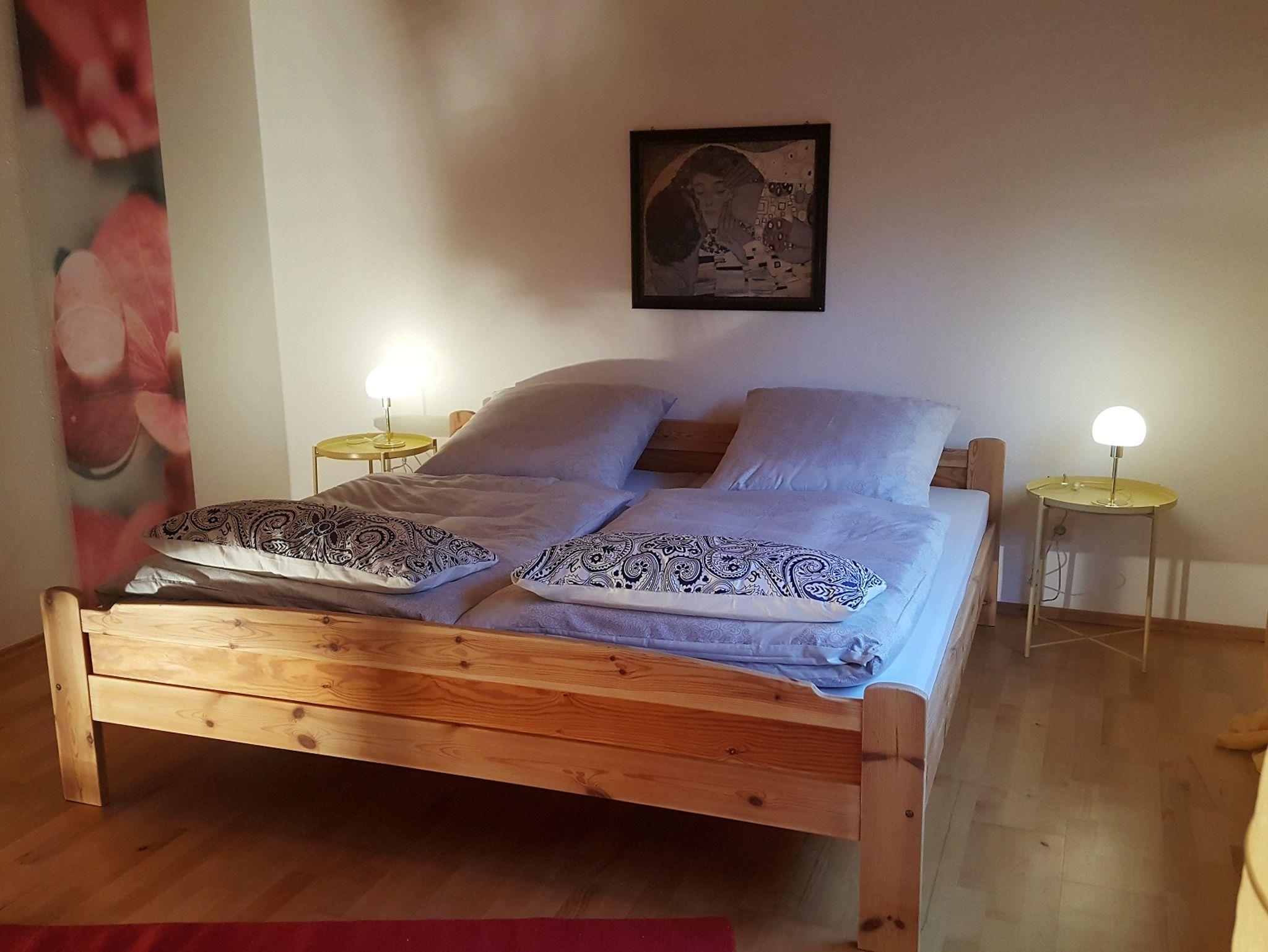 Die Wohnung besteht aus einer sehr großen Wohnküche, einem Schlafzimmer mit Doppelbett, einem Schlafzimmer mit großem Einzelbett und einem Bad.