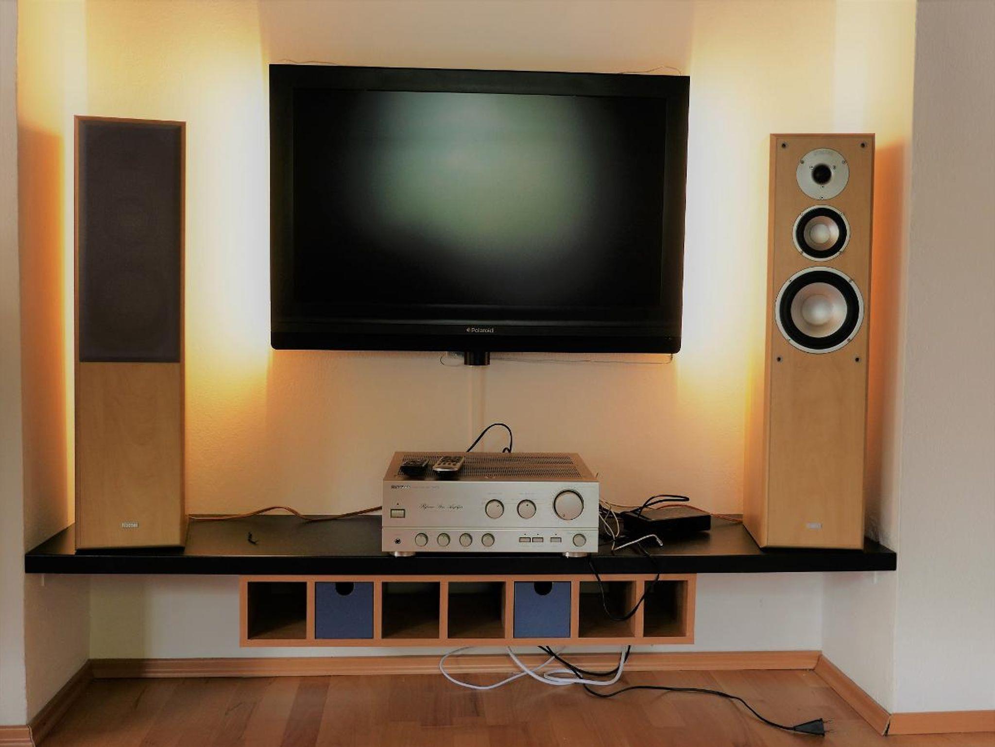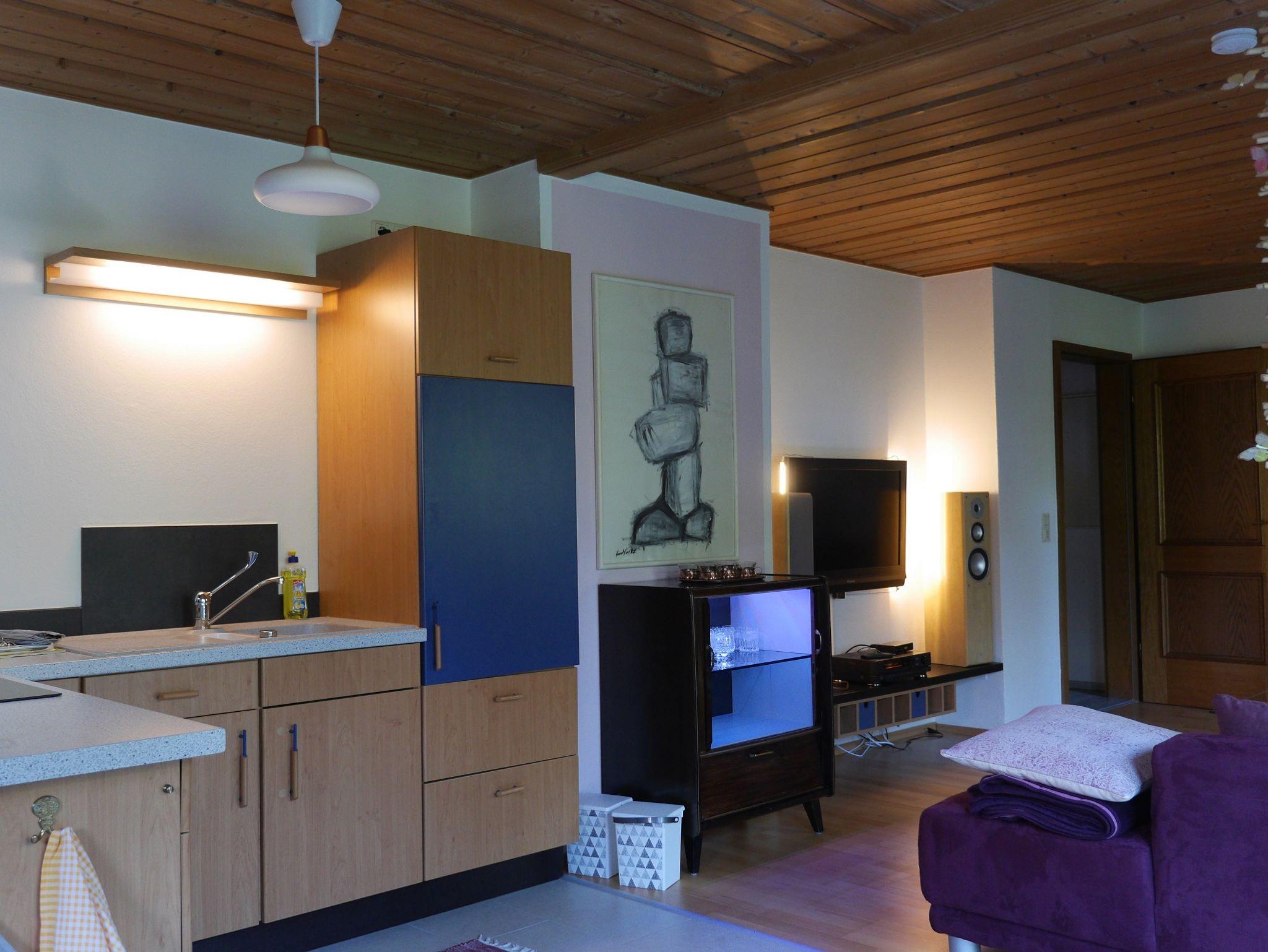 Im Wohnzimmer ist ein SAT-TV. Zur Beschallung dient ein Pioneer-Verstärker. Die überaus bequeme Couch lädt mit kuscheligen Decken zum Verweilen ein. Wohn- und Schlafzimmer strahlen eine moderne, ruhige und angenehme Atmosphäre aus. Sie werden eine wohlig warm beheizte Wohnung vorfinden.