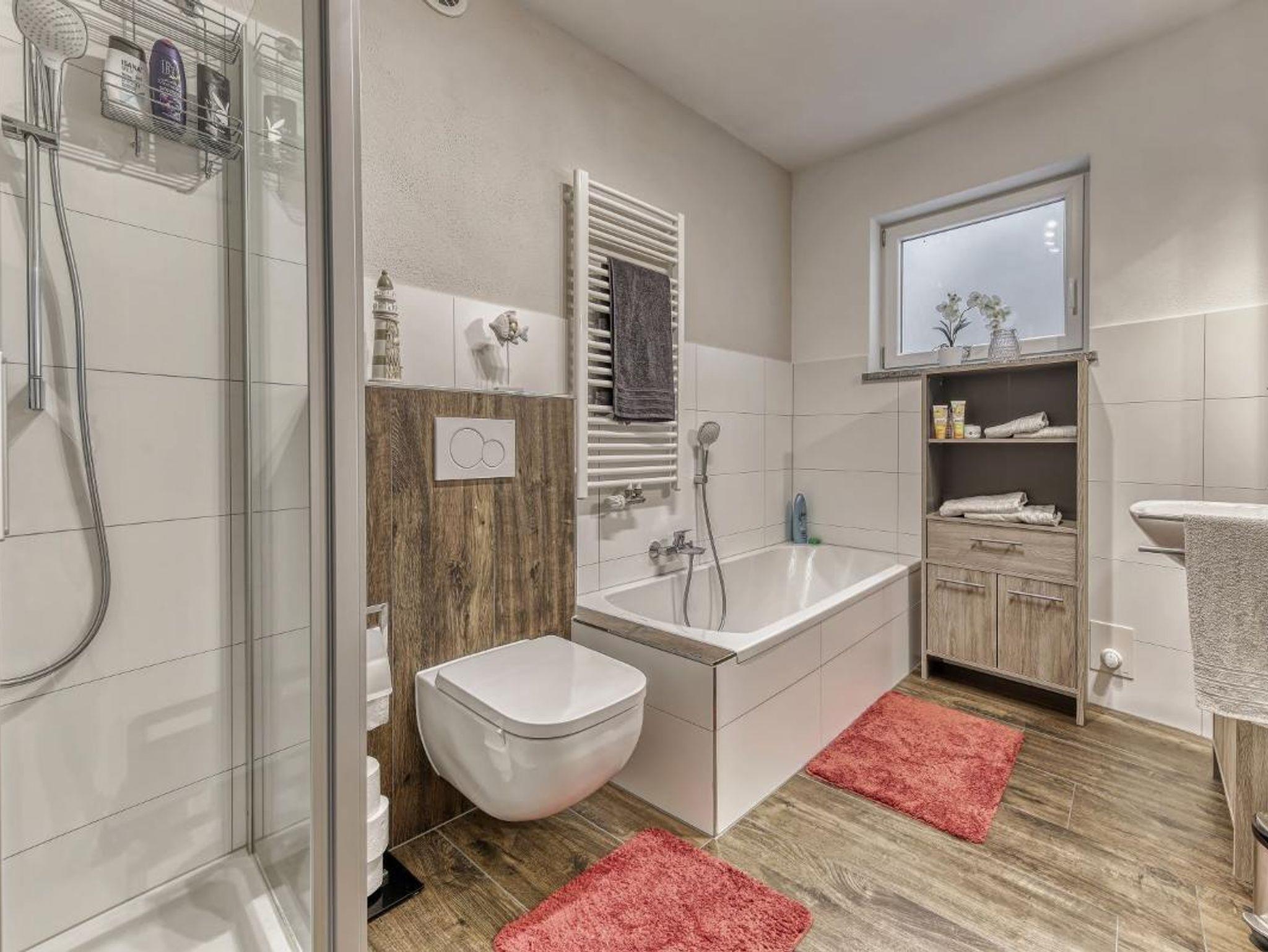 Liebe Gäste unseres Hauses. Es erwartet Sie eine schöne nagelneue Nichtraucher-Wohnung (1x Doppelbett 180x200cm, 1x Schlafsofa ausklappbar ca. 140x200cm für 2 Kinder bis 17 Jahre) mit einer modernen und hochwertigen Ausstattung. Auf Anfrage kann ein drittes Kind bis max. 2 Jahre im Babyzustellbett übernachten. Optional kann das Apartment auf Anfrage ohne Kinder mit 3-4 Erwachsene belegt werden. Im Schlafzimmer und Wohn- Schlafbereich ist ein Echtholznußbaumparkett verlegt. Fliesenbelag in Bad und Diele. Bad mit Fußbodenheizung. Die Wohnung hat zudem eine kontrollierte Wohnraumlüftung mit Wärmerückgewinnung und Pollenfilter für beste Frischluftqualität. Eine komplett ausgestattete Einbauküche inkl. Kaffee + Tee und ein Kasten Mineralwasser bei Ankunft machen den Aufenthalt besonders angenehm. Frische Bettwäsche und Handtücher sind vorhanden.