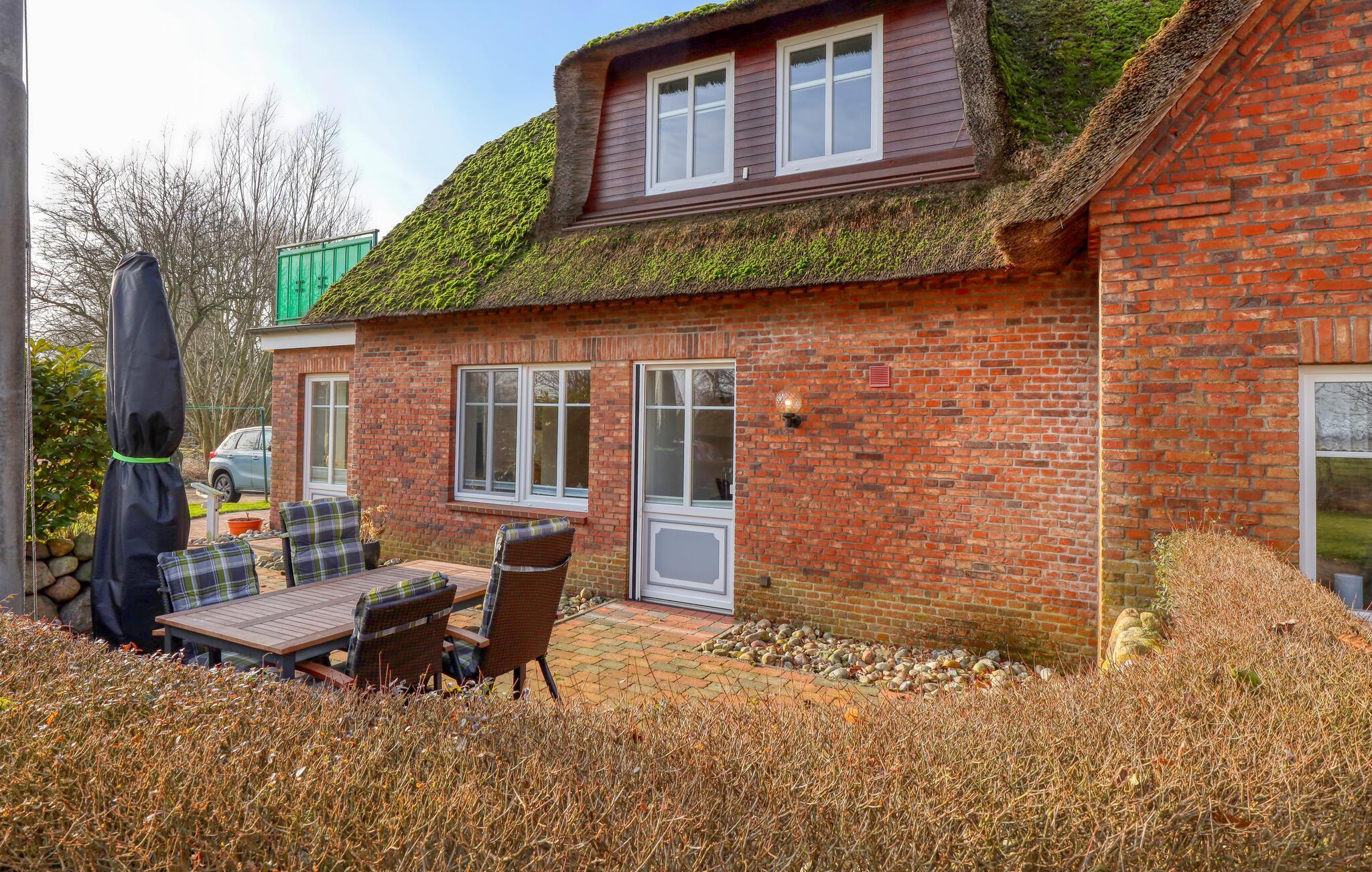 Genießen Sie eine barrierefreie Ferienwohnung im nordfriesischen Reetdachhaus nahe Wattenmeer und Sylt mit Terrasse und modernem Komfort.