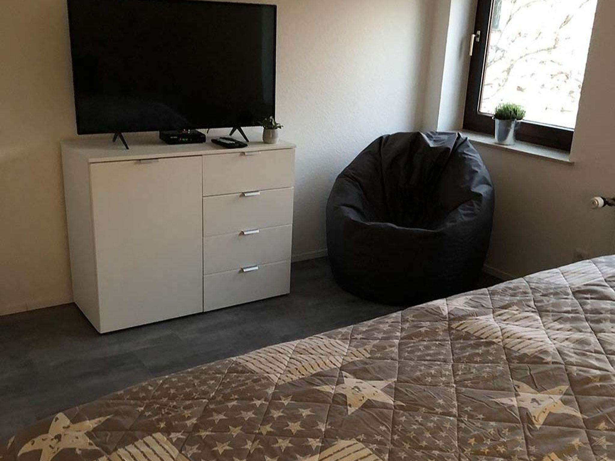 Sie hat 2 Schlafzimmer mit je einem Boxspringbett von 1,80*2,00 m und jeweils mit einem Flachbildschirme-TV