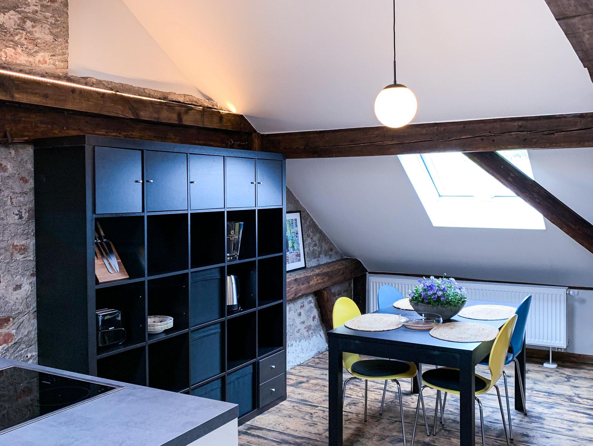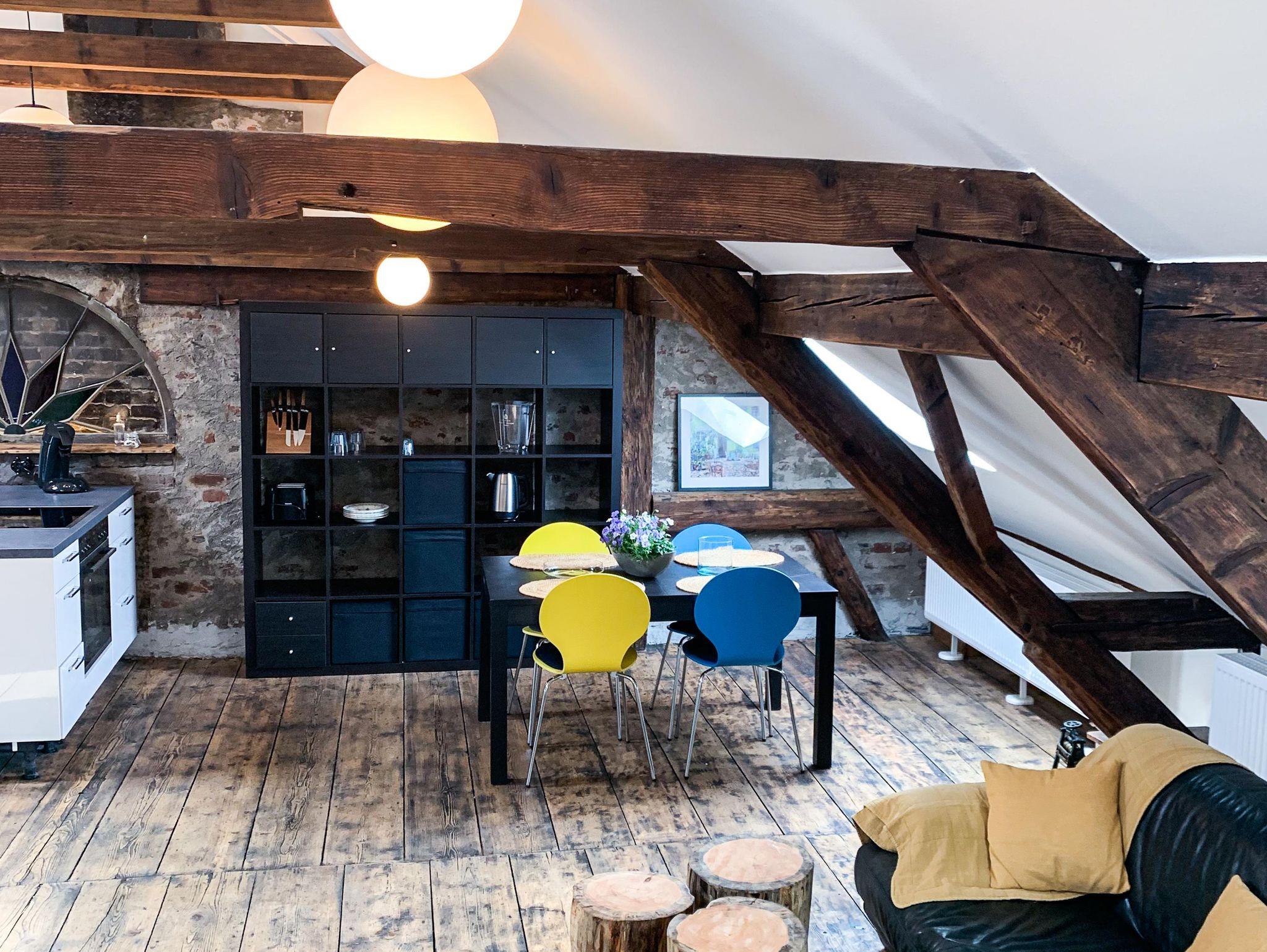 Offene, helle Wohnung im ausgebauten Dach eines der schönsten historischen Häuser der Stadt und in zentraler Lage.