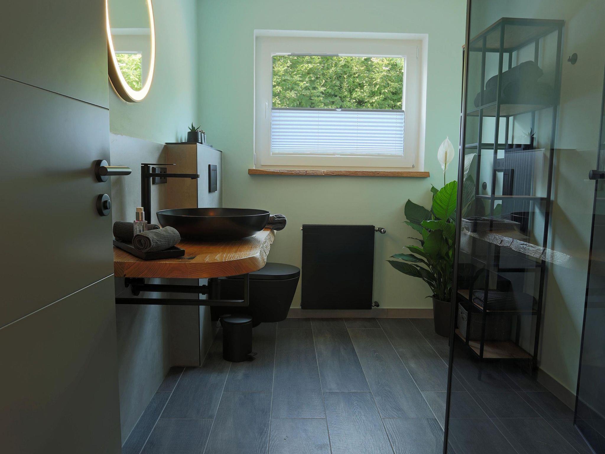 Das Design-Badezimmer ist mit einer Echtholz-Waschtischplatte und einer Regendusche ausgestattet. Einen Haartrockner, Handtücher, Seife und Toilettenpapier halten wir ebenfalls für euch bereit.