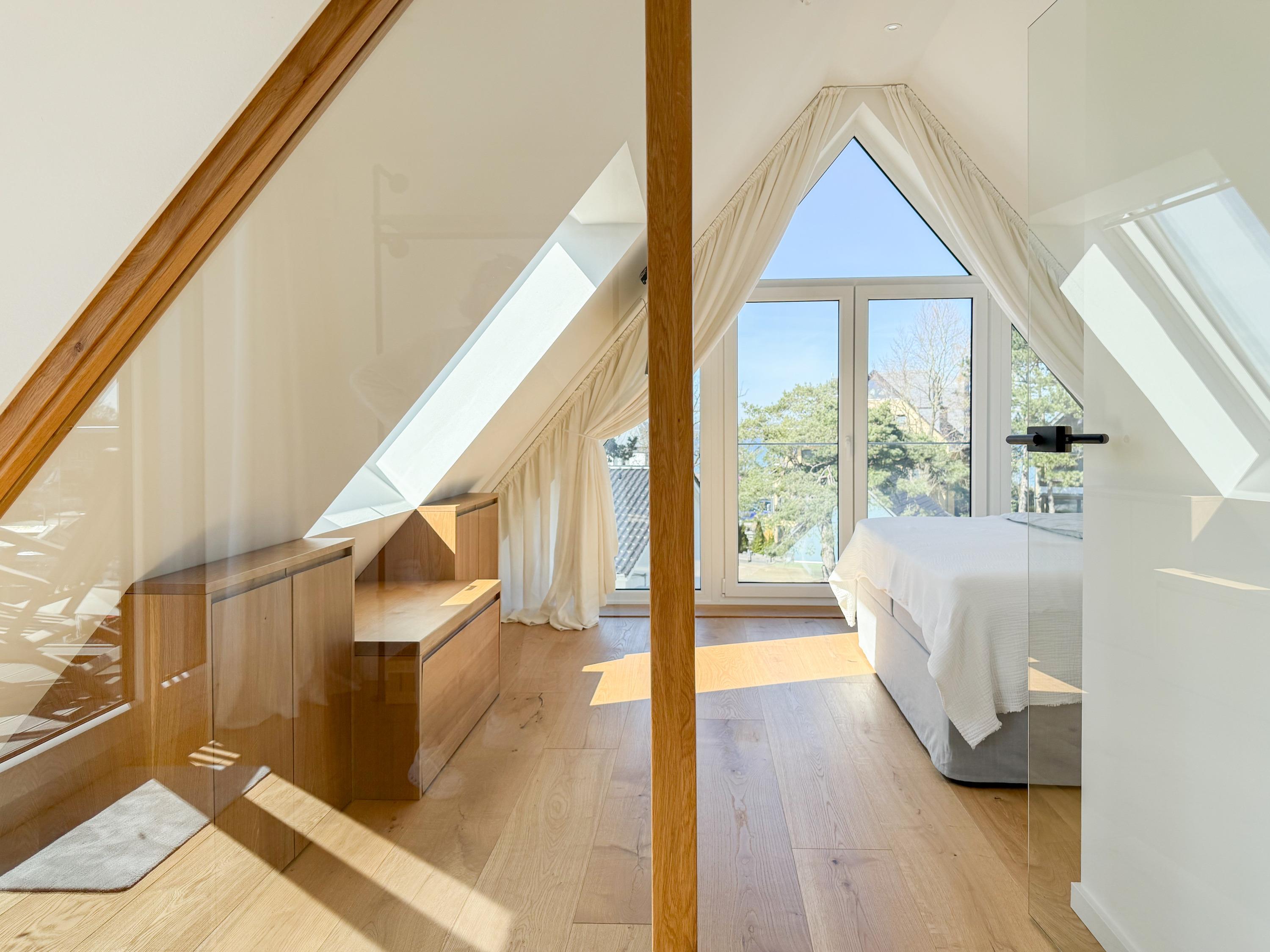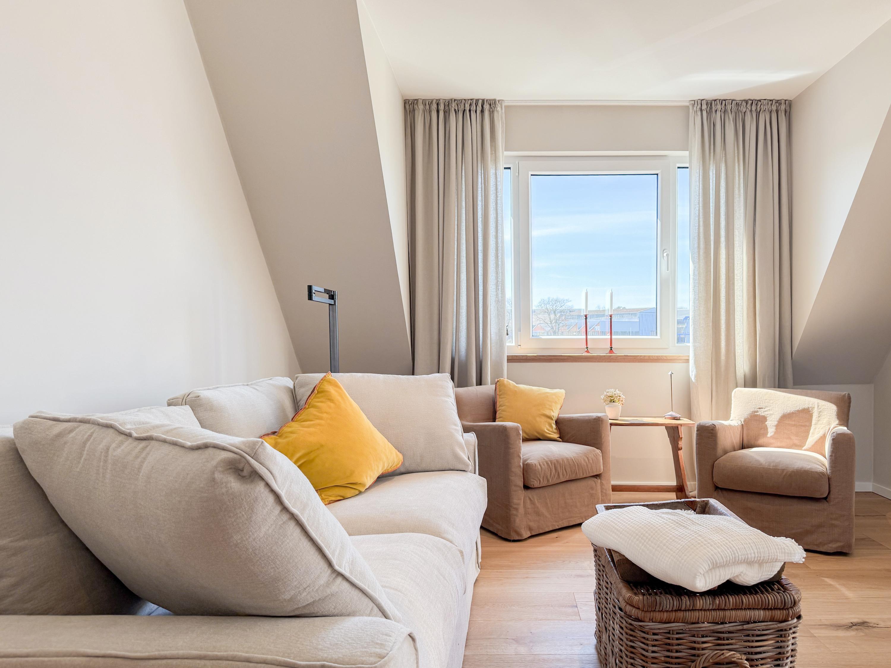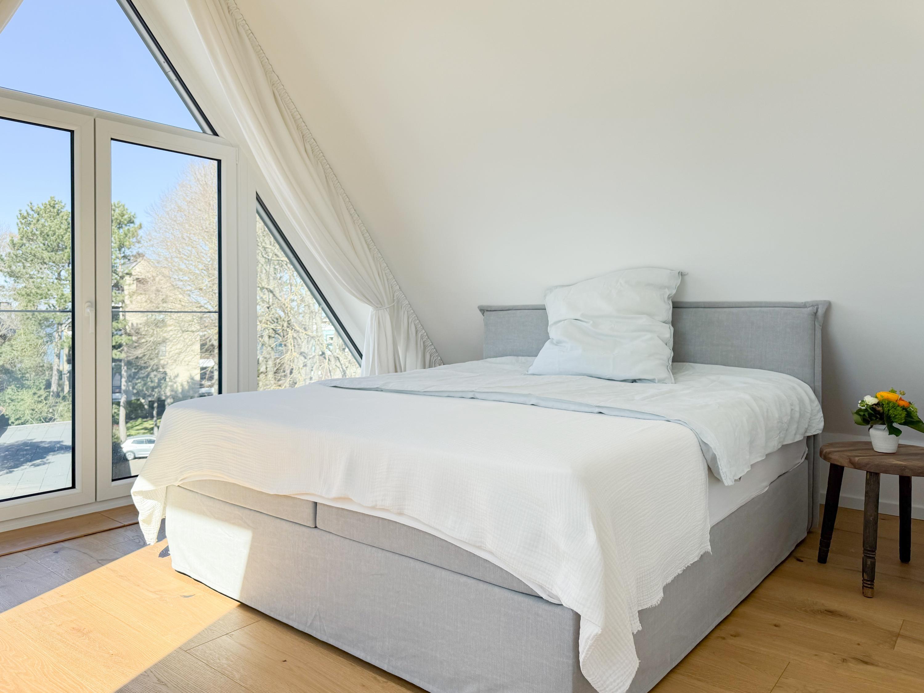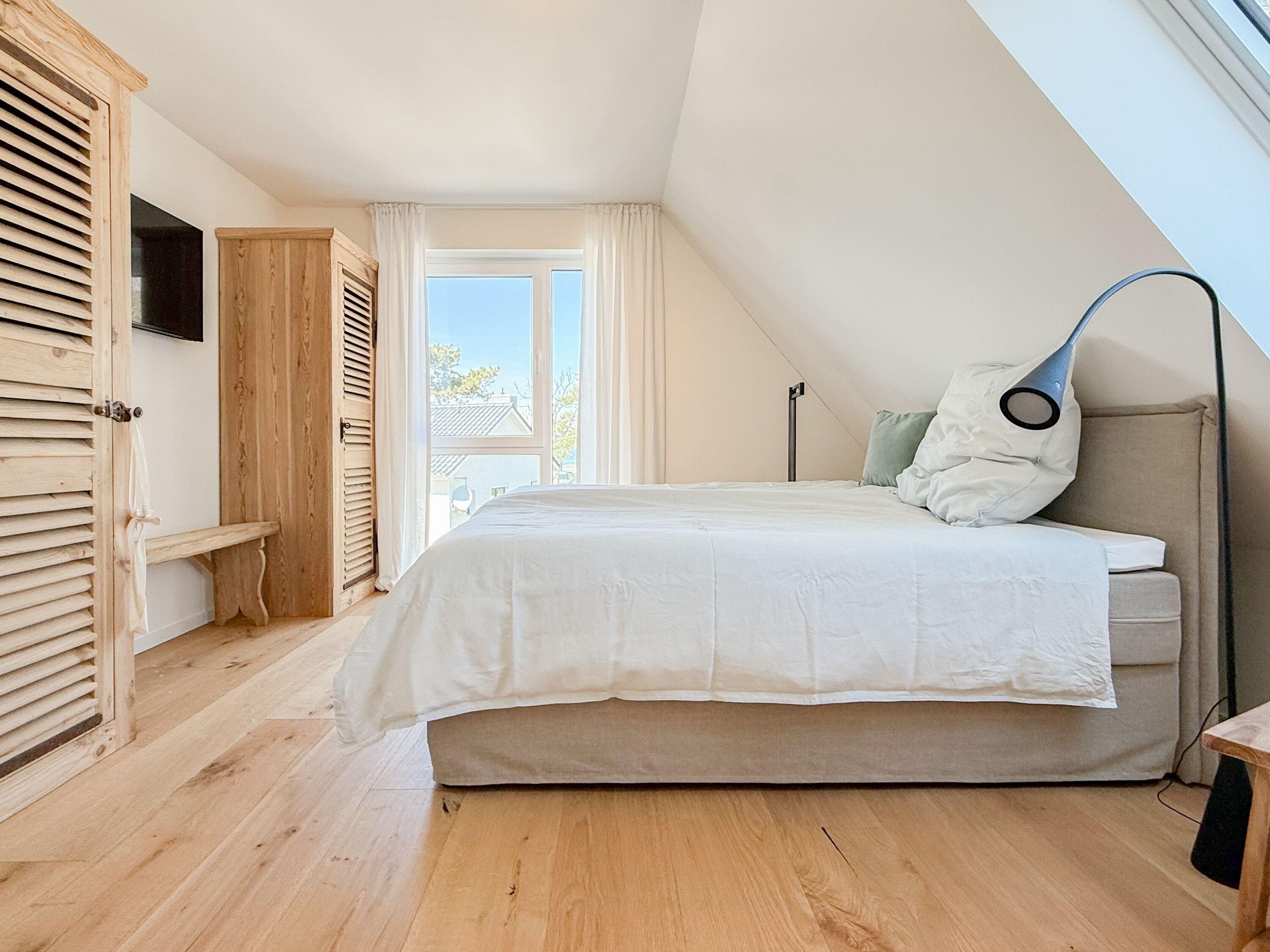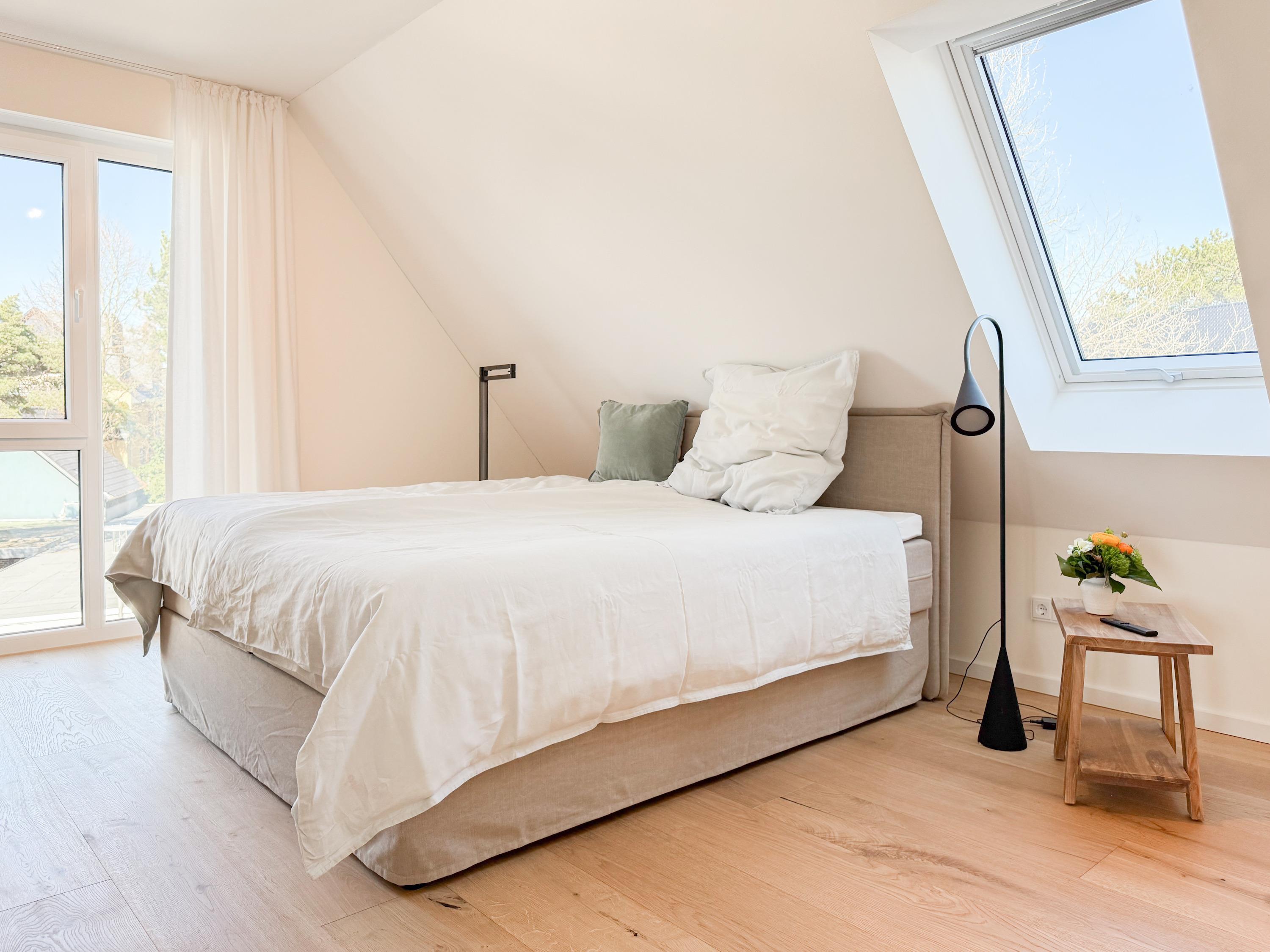 Das Penthouse eignet sich perfekt für anspruchsvolle Gäste, die Exklusivität und eine einzigartige Lage an der Ostsee zu schätzen wissen. Es erwartet Sie ein offen gestalteter Wohn- Essbereich in hochwertiger Ausstattung und eine integrierte Design-Einbauküche. Echtholzböden sorgen für Gemütlichkeit und bodentiefe Fenster eröffnen einen phantastischen Ausblick auf die Ostsee und die ein- und ausfahrenden Schiffe, vom Fischkutter bis zur Motoryacht. Genießen Sie auf der weitläufigen Dachterrasse (25qm) viele Sonnenstunden, die einzigartige Hafenatmosphäre und beeindruckende Sonnenuntergänge. Auf gleicher Wohnebene befinden sich das erste Schlafzimmer,[nbsp] ausgestattet mit einem Boxspringbett (180x200), TV und elektrischen Außenjalousien sowie eines der beiden Bäder, sehr großzügig und luxuriös gestaltet mit Waschtisch und Badewanne. Auf der oberen Wohnebene erwartet Sie ein weiteres hochwertiges Bad mit Walk In Dusche und das zweite Schlafzimmer, ebenfalls ausgestattet mit einem Boxspringbett (180x200) und TV. Das große Giebelfenster ist mit Leinenvorhängen versehen. Ein Highlight ist definitiv die großzügig bemessene Sauna. Entspannen Sie nach dem Saunagang auf der zweiten sonnigen Dachterrasse[nbsp] (10qm) und genießen den spektakulärem Blick und unvergessliche Sonnenuntergänge.