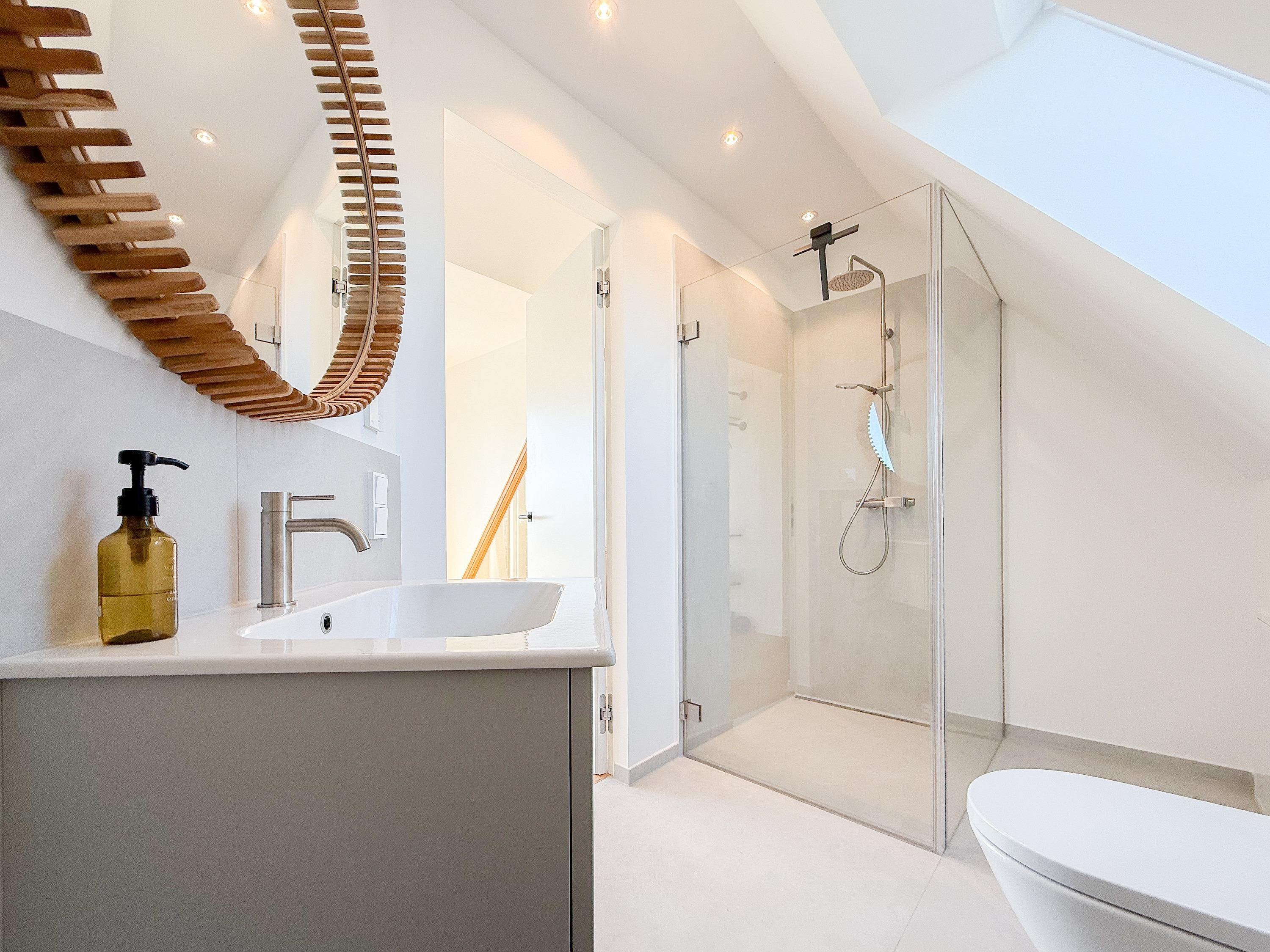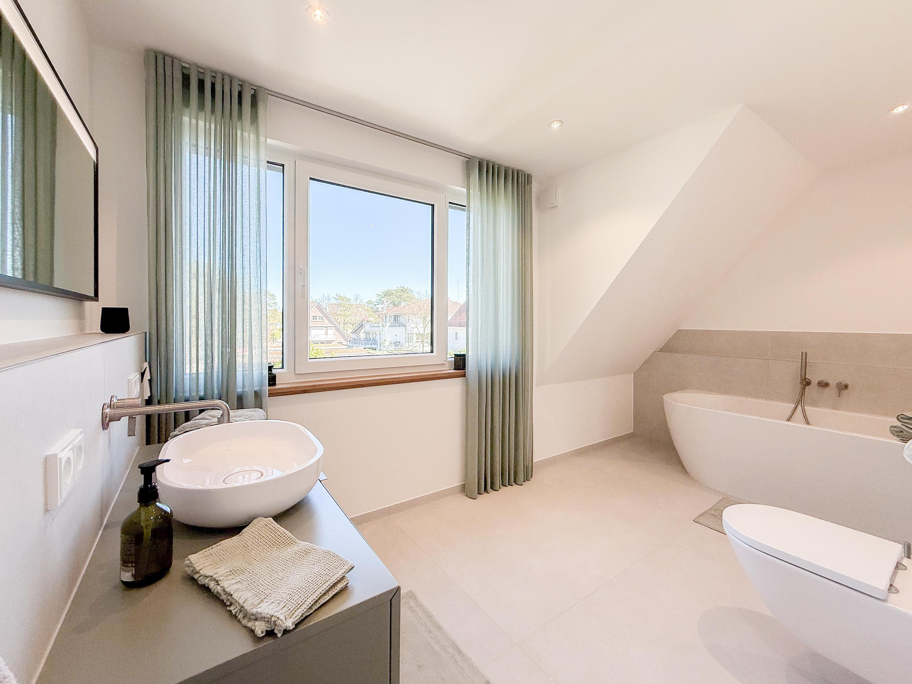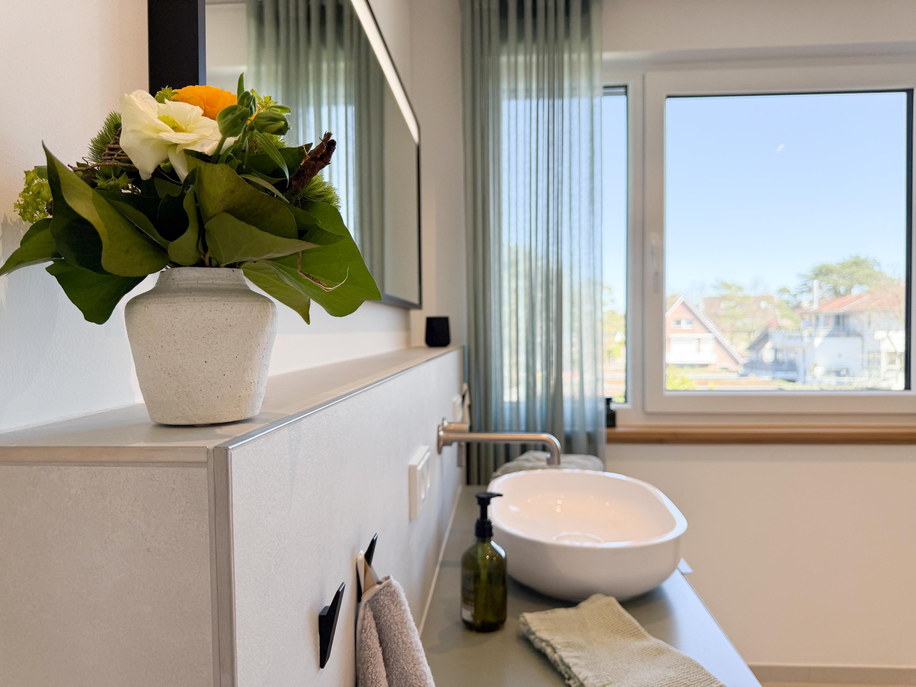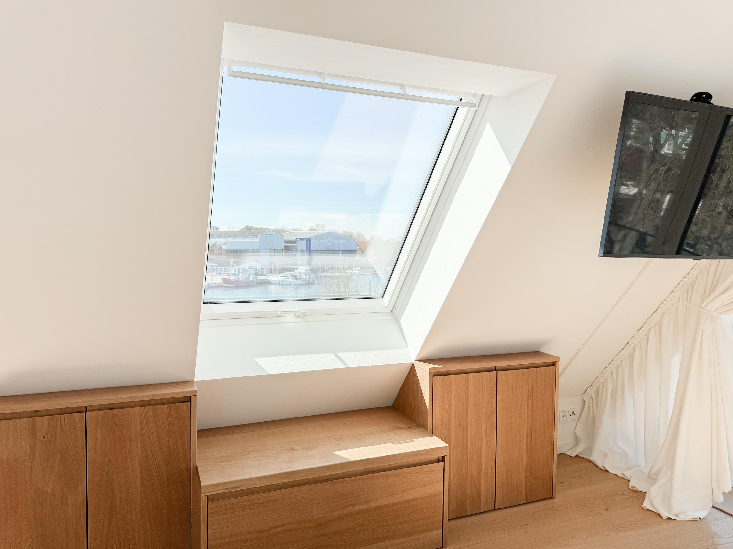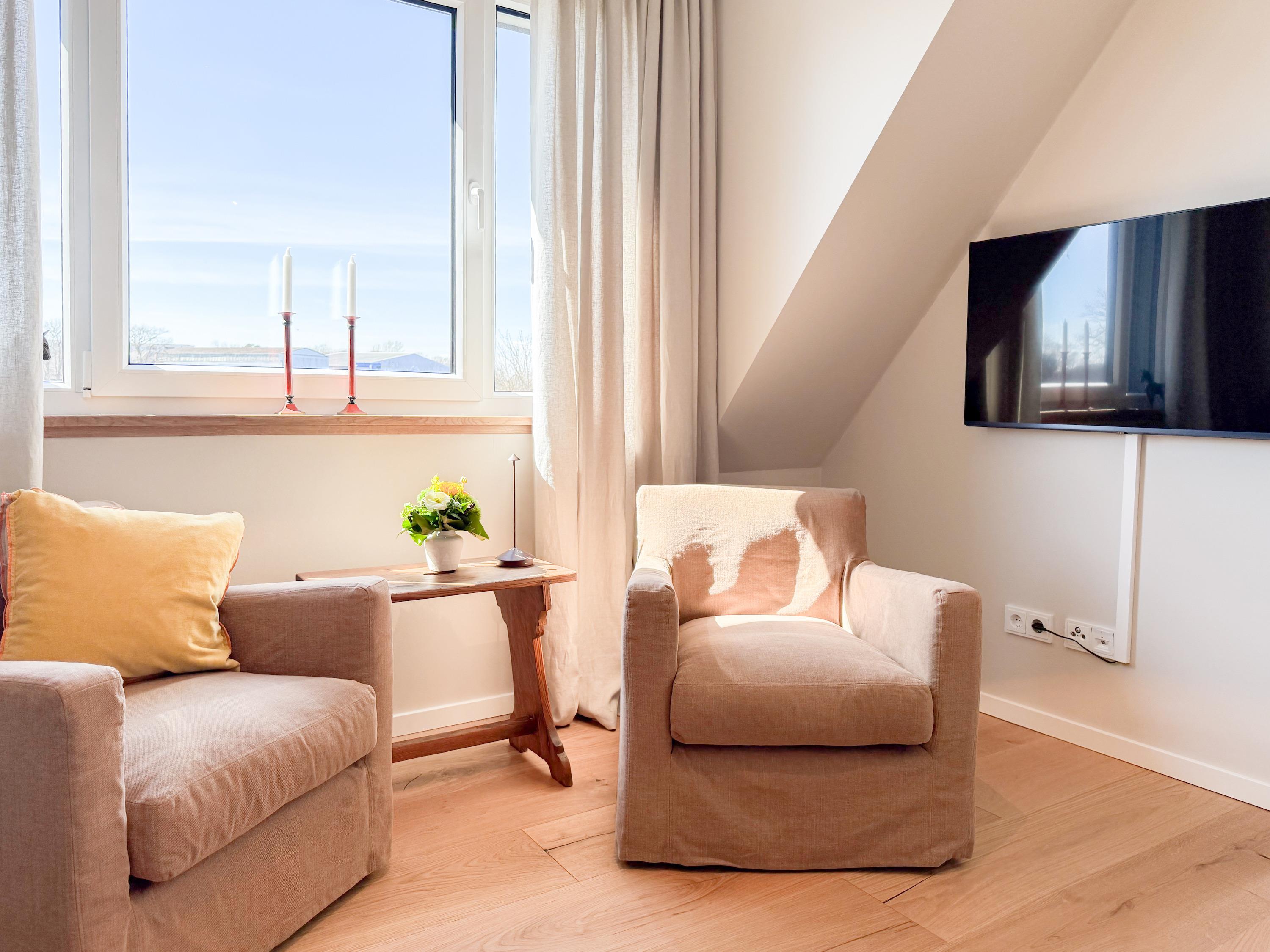 Das Penthouse eignet sich perfekt für anspruchsvolle Gäste, die Exklusivität und eine einzigartige Lage an der Ostsee zu schätzen wissen. Es erwartet Sie ein offen gestalteter Wohn- Essbereich in hochwertiger Ausstattung und eine integrierte Design-Einbauküche. Echtholzböden sorgen für Gemütlichkeit und bodentiefe Fenster eröffnen einen phantastischen Ausblick auf die Ostsee und die ein- und ausfahrenden Schiffe, vom Fischkutter bis zur Motoryacht. Genießen Sie auf der weitläufigen Dachterrasse (25qm) viele Sonnenstunden, die einzigartige Hafenatmosphäre und beeindruckende Sonnenuntergänge. Auf gleicher Wohnebene befinden sich das erste Schlafzimmer,[nbsp] ausgestattet mit einem Boxspringbett (180x200), TV und elektrischen Außenjalousien sowie eines der beiden Bäder, sehr großzügig und luxuriös gestaltet mit Waschtisch und Badewanne. Auf der oberen Wohnebene erwartet Sie ein weiteres hochwertiges Bad mit Walk In Dusche und das zweite Schlafzimmer, ebenfalls ausgestattet mit einem Boxspringbett (180x200) und TV. Das große Giebelfenster ist mit Leinenvorhängen versehen. Ein Highlight ist definitiv die großzügig bemessene Sauna. Entspannen Sie nach dem Saunagang auf der zweiten sonnigen Dachterrasse[nbsp] (10qm) und genießen den spektakulärem Blick und unvergessliche Sonnenuntergänge.