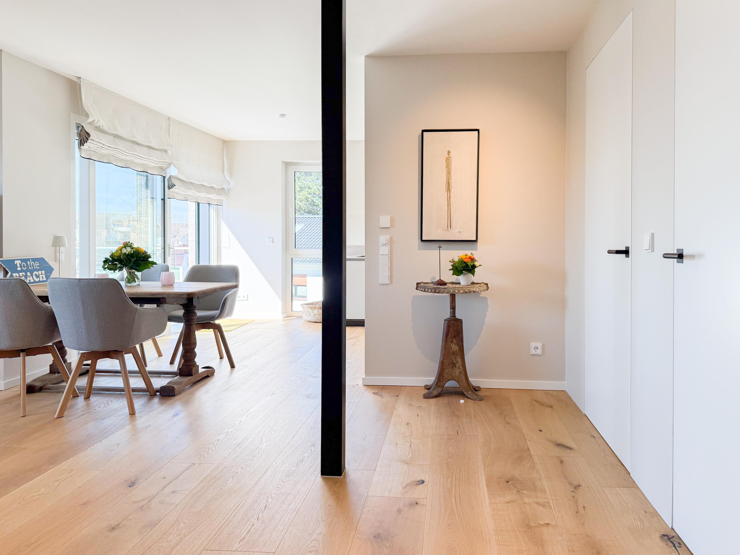 Atemberaubender Blick auf den Niendorfer Hafen und die Ostsee! Das exklusive Penthouse Strand Hafen bietet ein traumhaftes Refugium direkt am malerischen Hafen. Nur wenige Schritte vom Strand entfernt genießen Sie höchsten Komfort eines modernen Neubaus mit nur 6 Wohneinheiten in unvergleichlicher Lage. Frische Brötchen gibt es beim Bäcker um die Ecke, fangfrischen Fisch direkt vom Kutter und vielfältige Restaurants und Cafés befinden sich in unmittelbarer Umgebung, ebenso ein Fahrradverleih und ein Spielplatz.