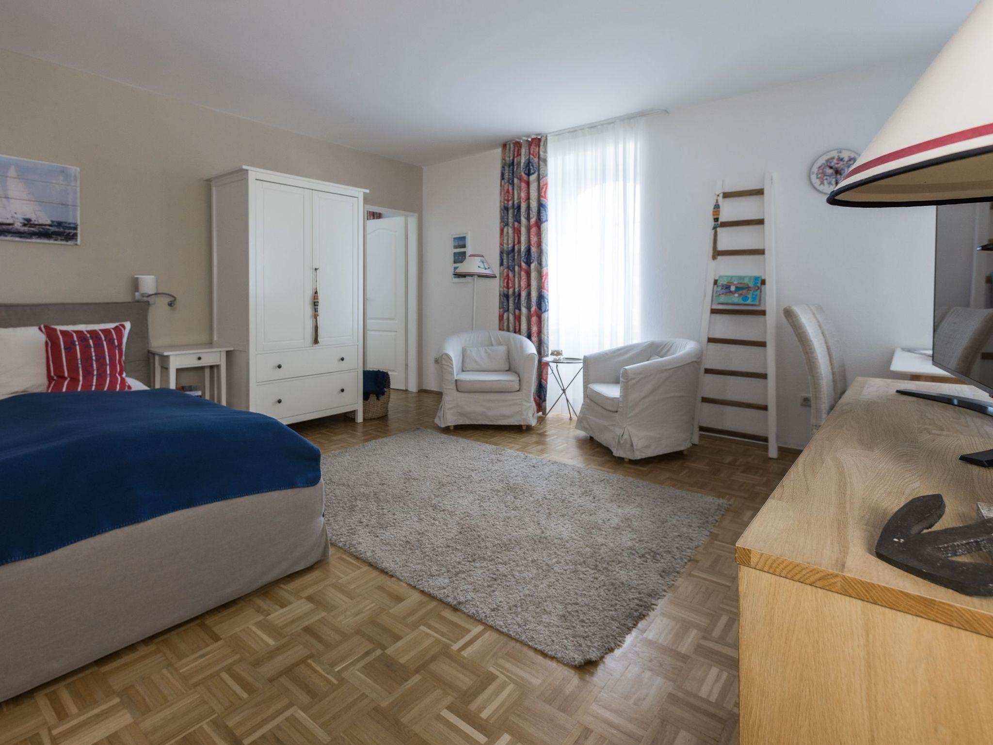gemütliches kleines Appartement im ersten Obergeschoß, sehr geschmackvoll und funktional. Maritimes Flair. Kombinierter Wohn-/ Schlafraum. Separates DURCHGANGS-Zimmer. Kein Geschirrspüler!