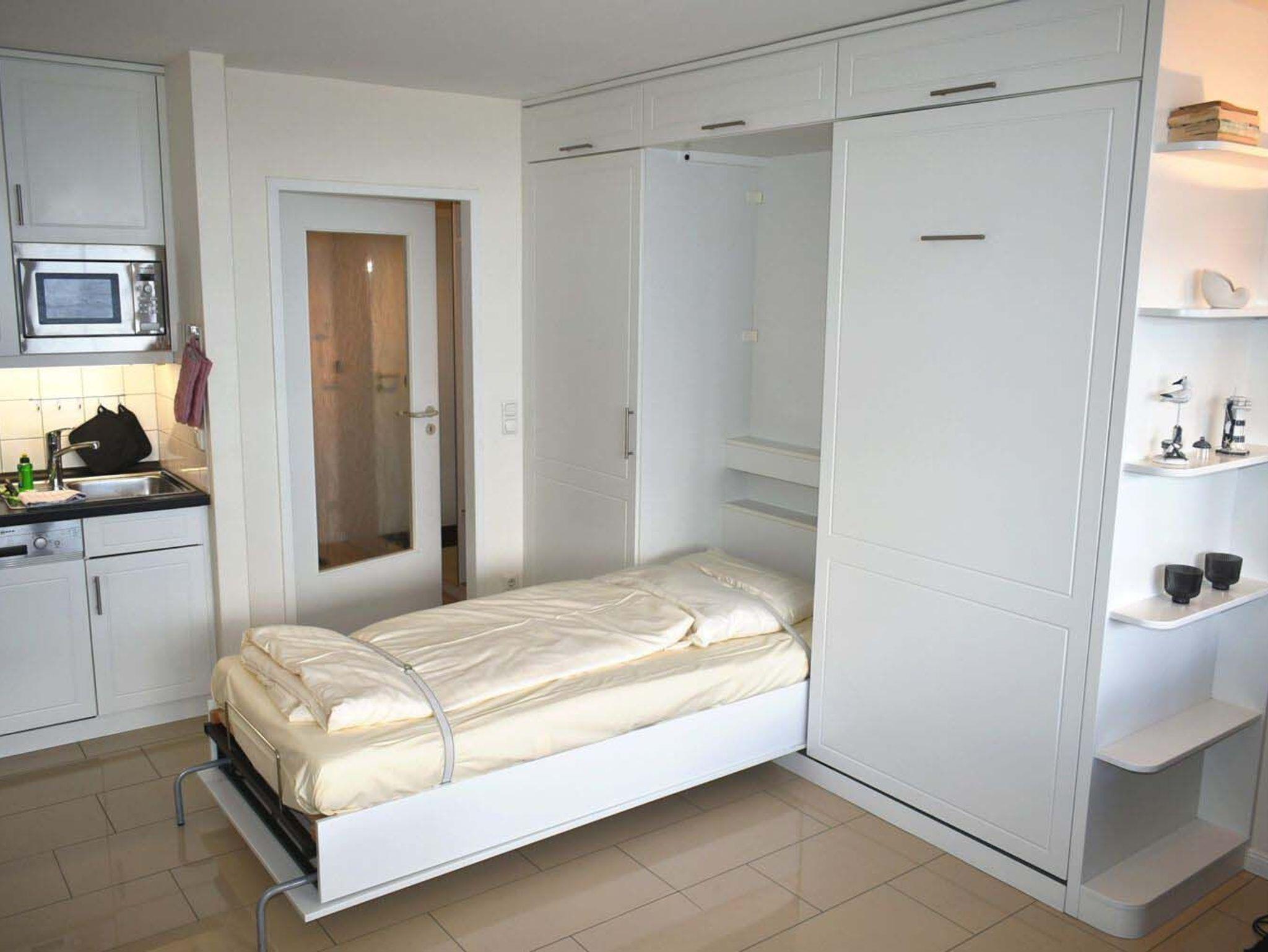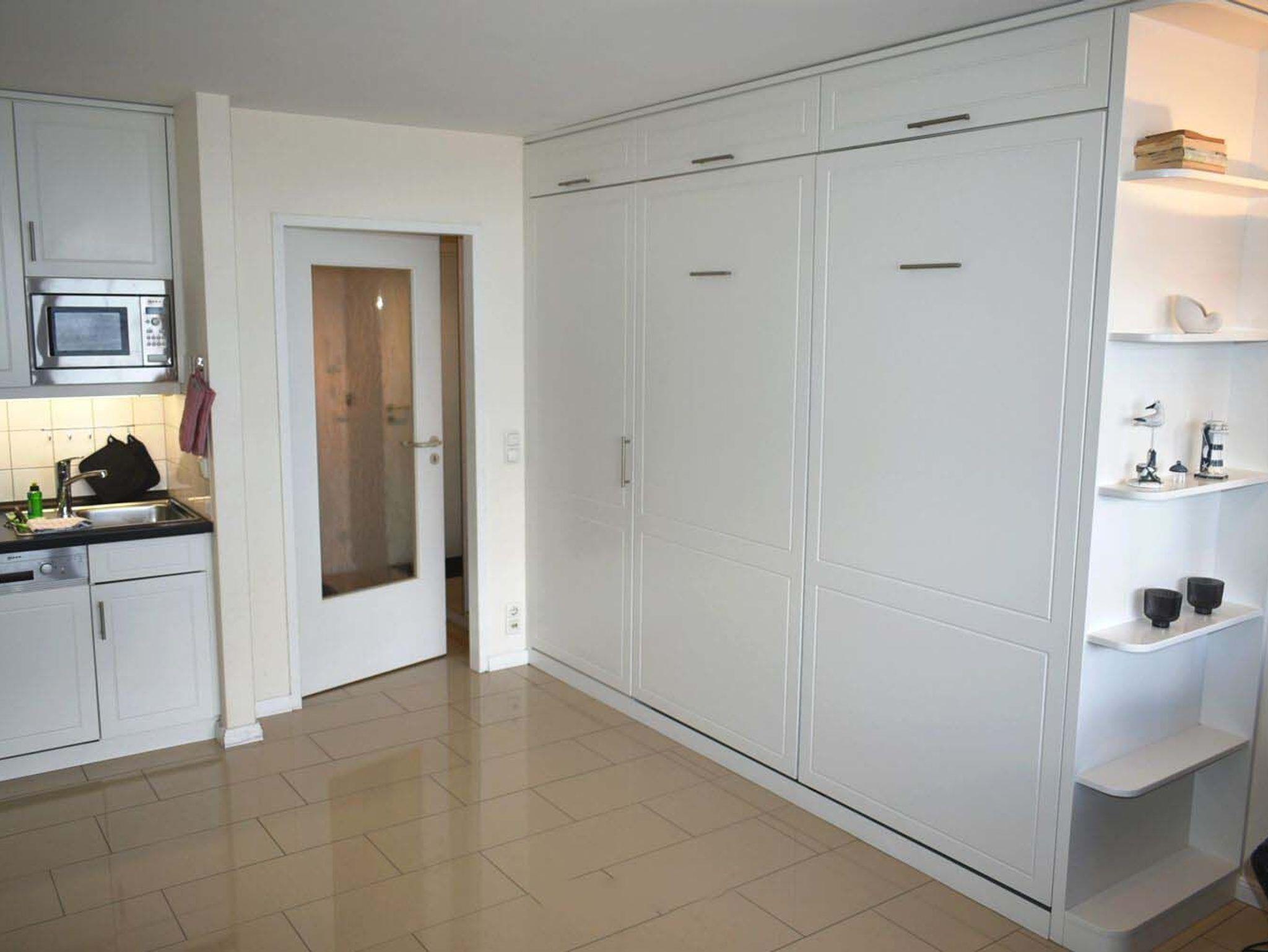 Wohnzimmer: 2 Plattenherd mit Ceranfeld, 2 Schrankeinzelbetten 2,00 x 0,90m, 2 Sessel, 2 Stühle, Blu-Ray-Player, Couch, Couchtisch, Eierkocher, Einbaukleiderschrank, Einbauküche, Esstisch, Flachbildschirm, Geschirr, Kabel-TV, Kaffeemaschine, Kochtöpfe, Kofferradio mit CD-Player, Kühlschrank mit Gefrierfach, Mikrowelle, Nespresso Maschine, Regal, Spiegel, Spülmaschine, Stehlampe, Toaster, Wasserkocher