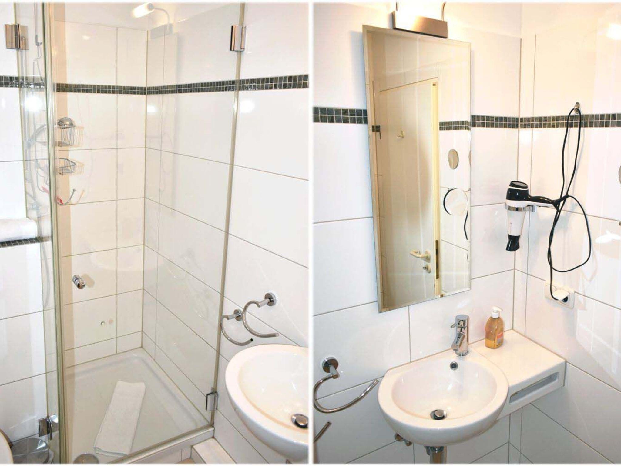 Bad 1: Dusche, Duschkabine, Fön, Kosmetikspiegel, Spiegel, Waschtisch, WC