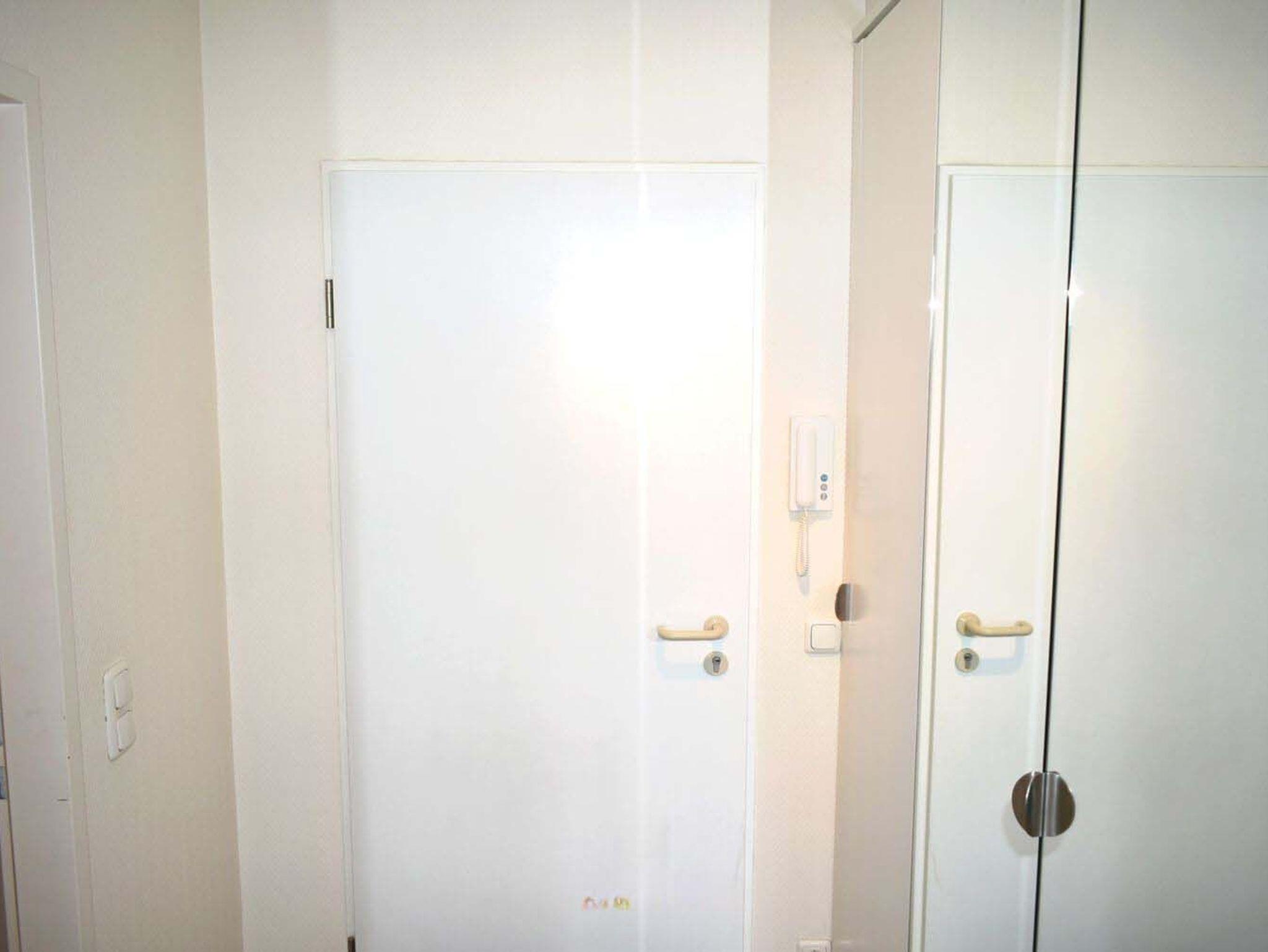 Flur: Einbauschrank, Garderobe, Spiegel, Staubsauger, Wäscheständer