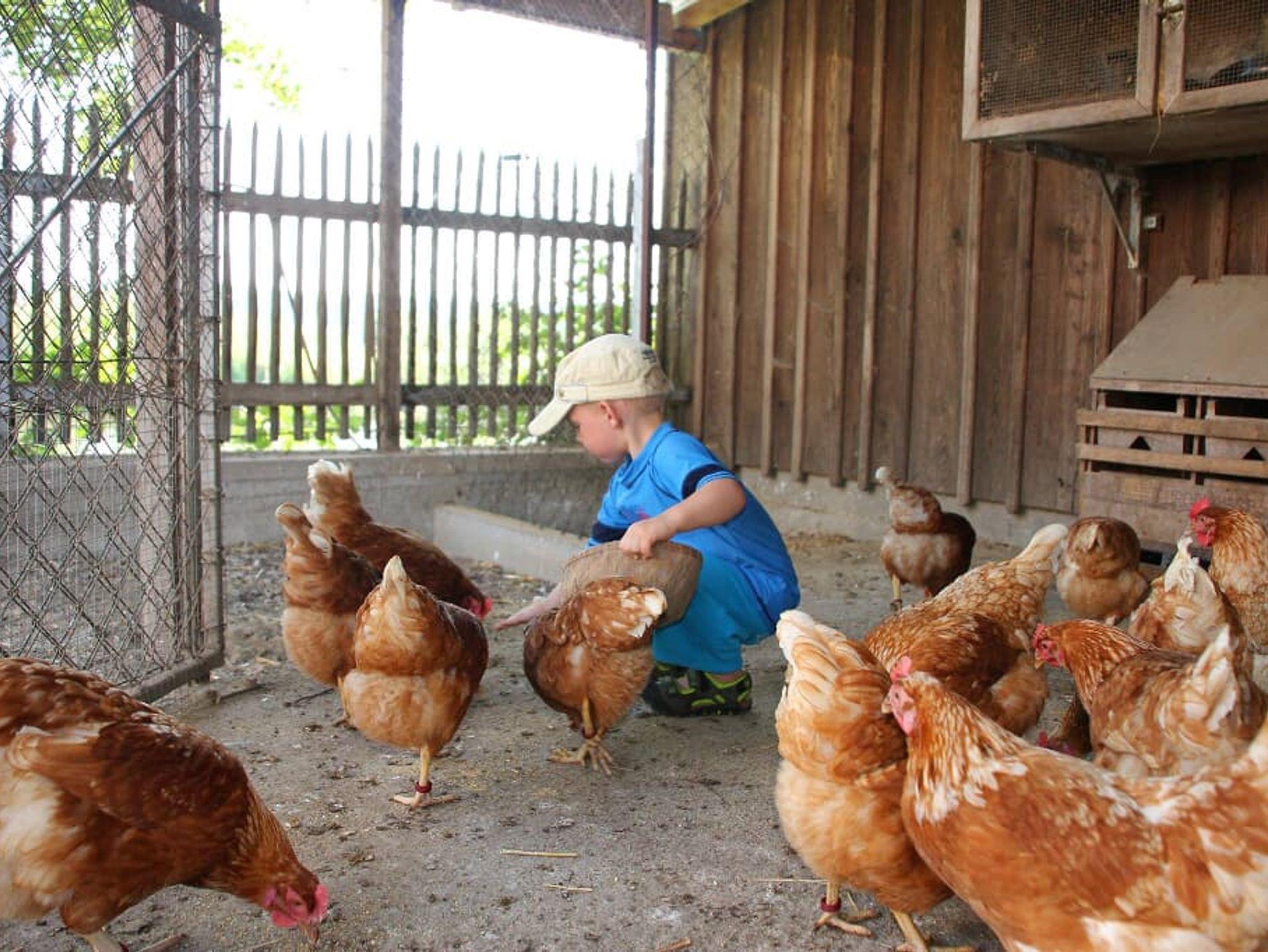 Für Kids haben wir einiges zu bieten: Stockbrot backen, Ponyreiten, einen Abenteuerspielplatz, einen Kinderfuhrpark, ein beheiztes Spielhaus für schlechtes Wetter, ein Riesentrampolin, Traktorfahrten, Mithilfe bei der täglichen Fütterung und natürlich einen großen Streichelzoo.