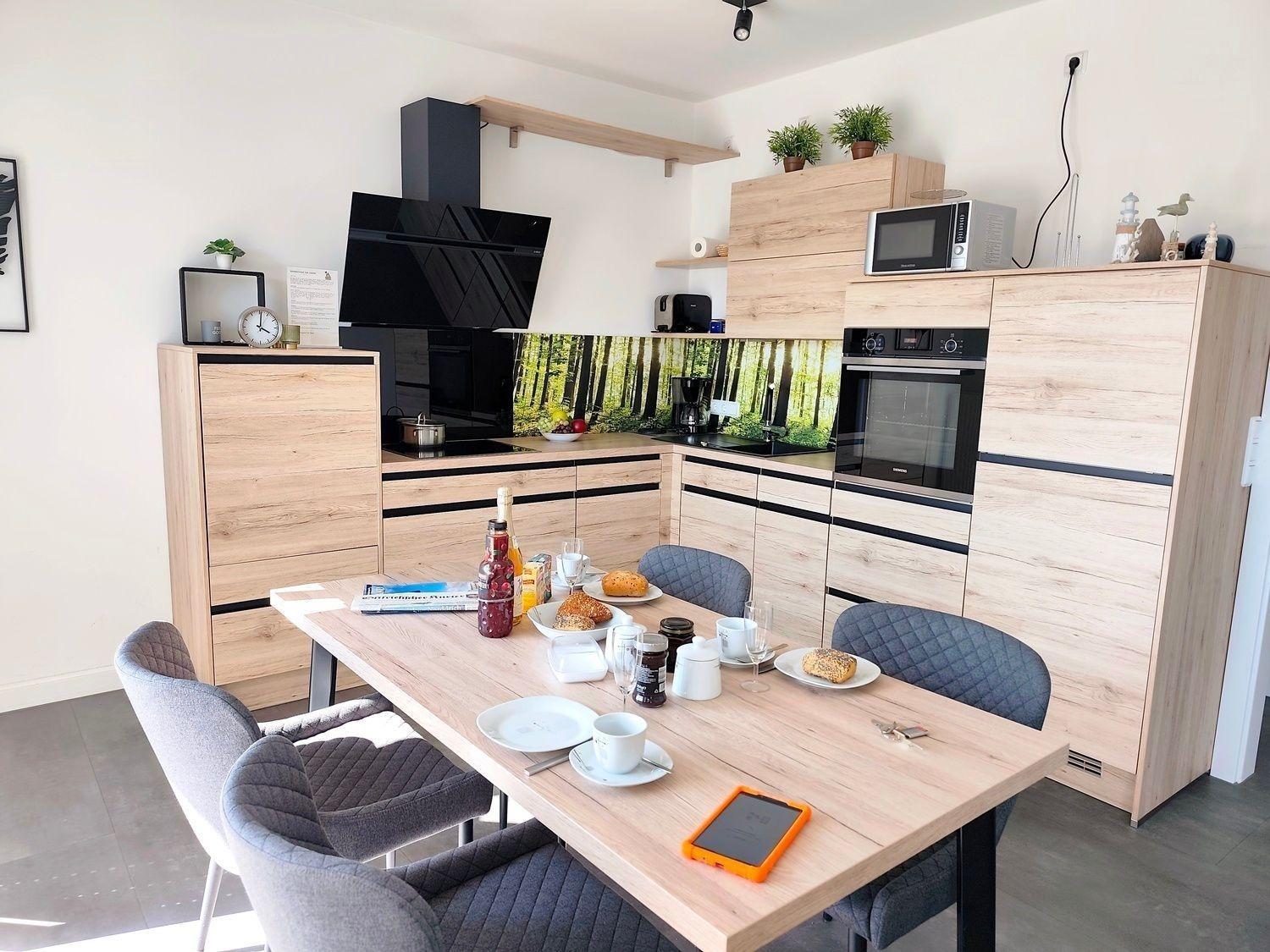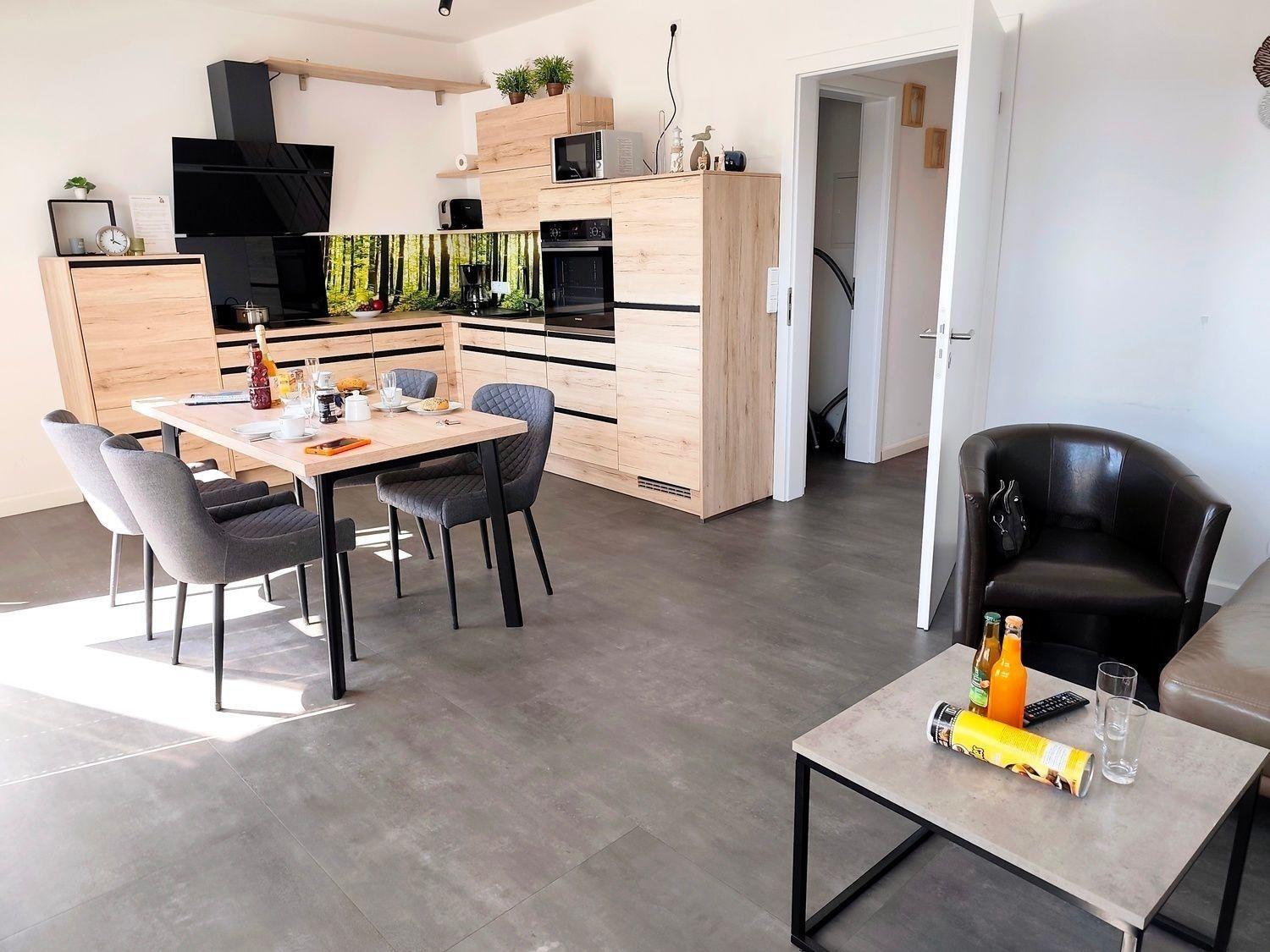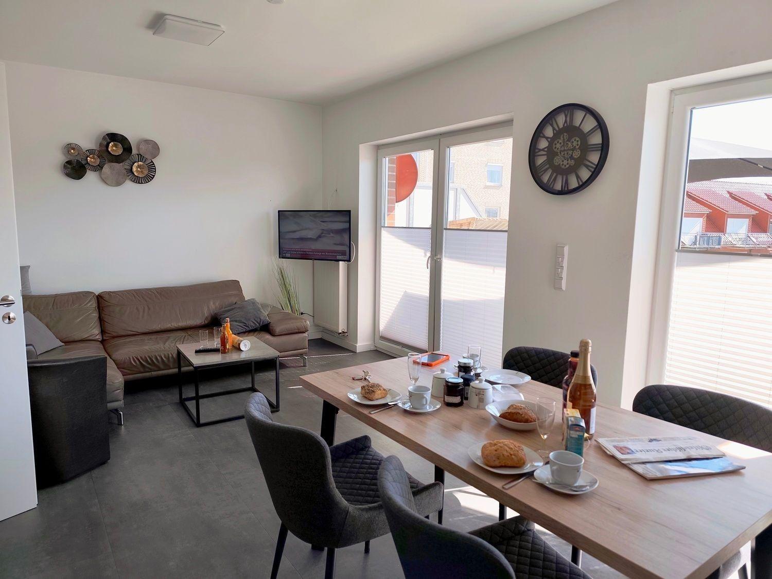 Moderne Ferienwohnung in Norddeich mit Balkon, Strandkorb und WLAN, nur 150 m vom Strand entfernt.