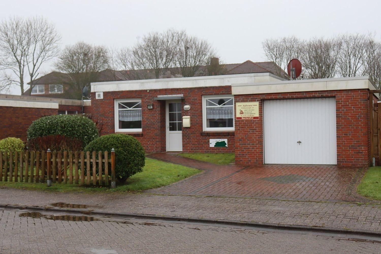 Barrierefreier Bungalow in Norddeich mit Terrasse, Garten und moderner Ausstattung für erholsamen Urlaub.