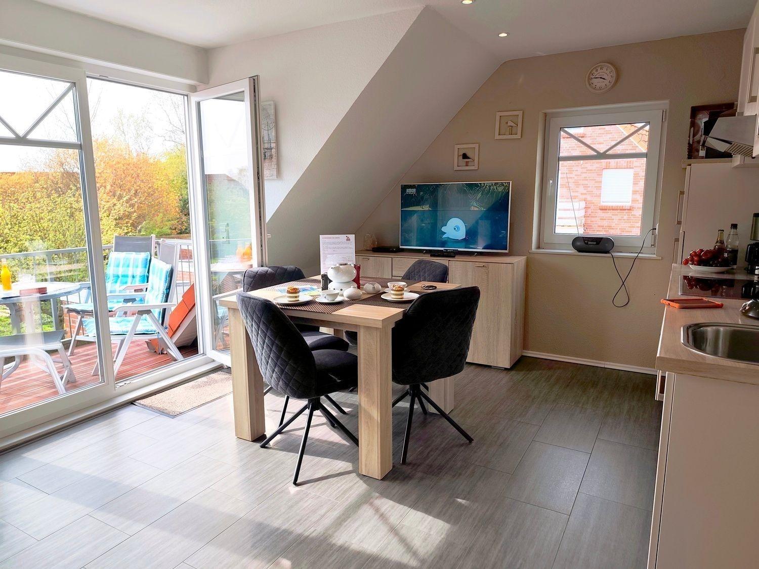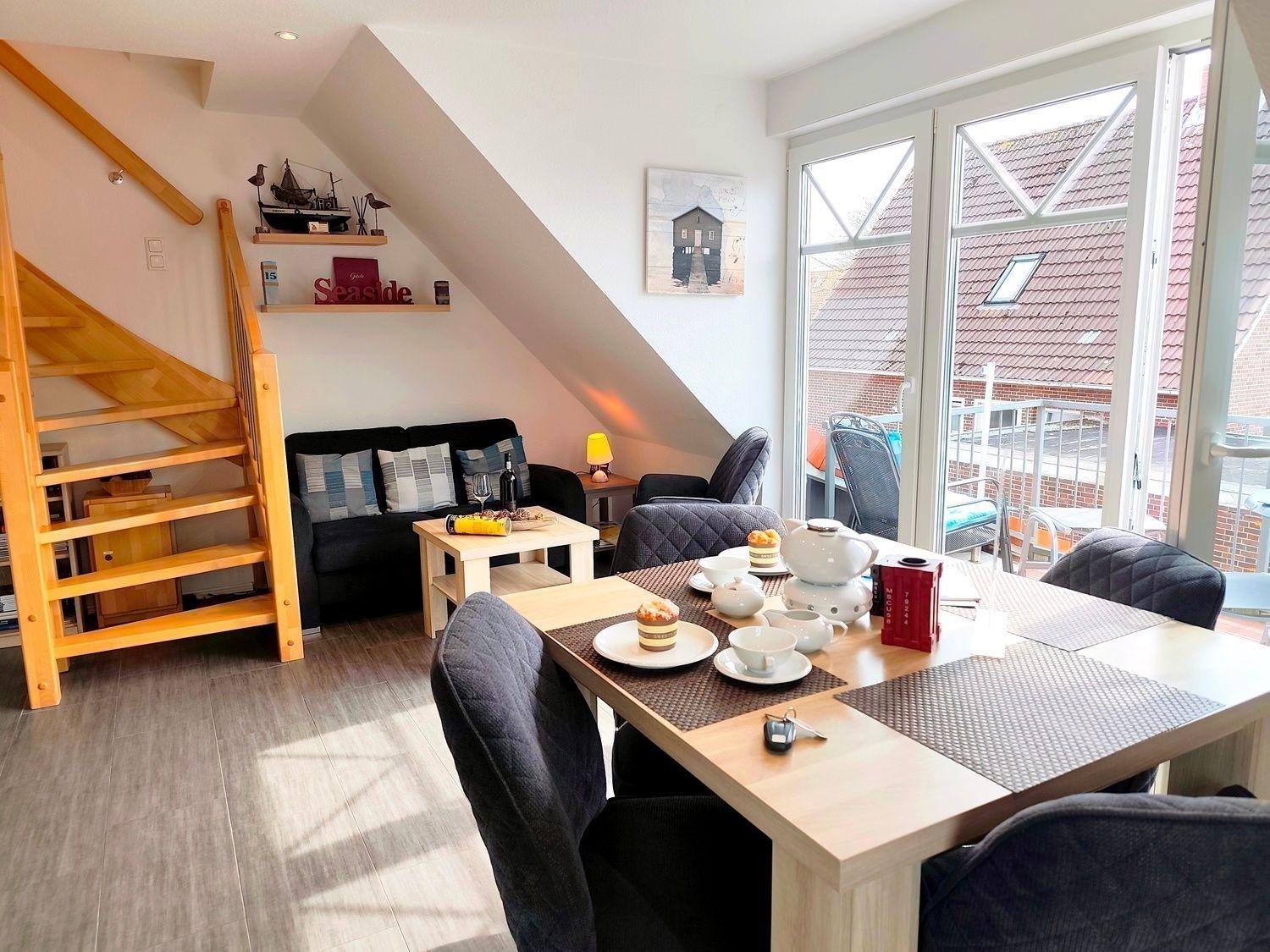 Moderne Ferienwohnung in Norddeich mit Balkon, WLAN und Elektrogrill für erholsame Tage am Meer.