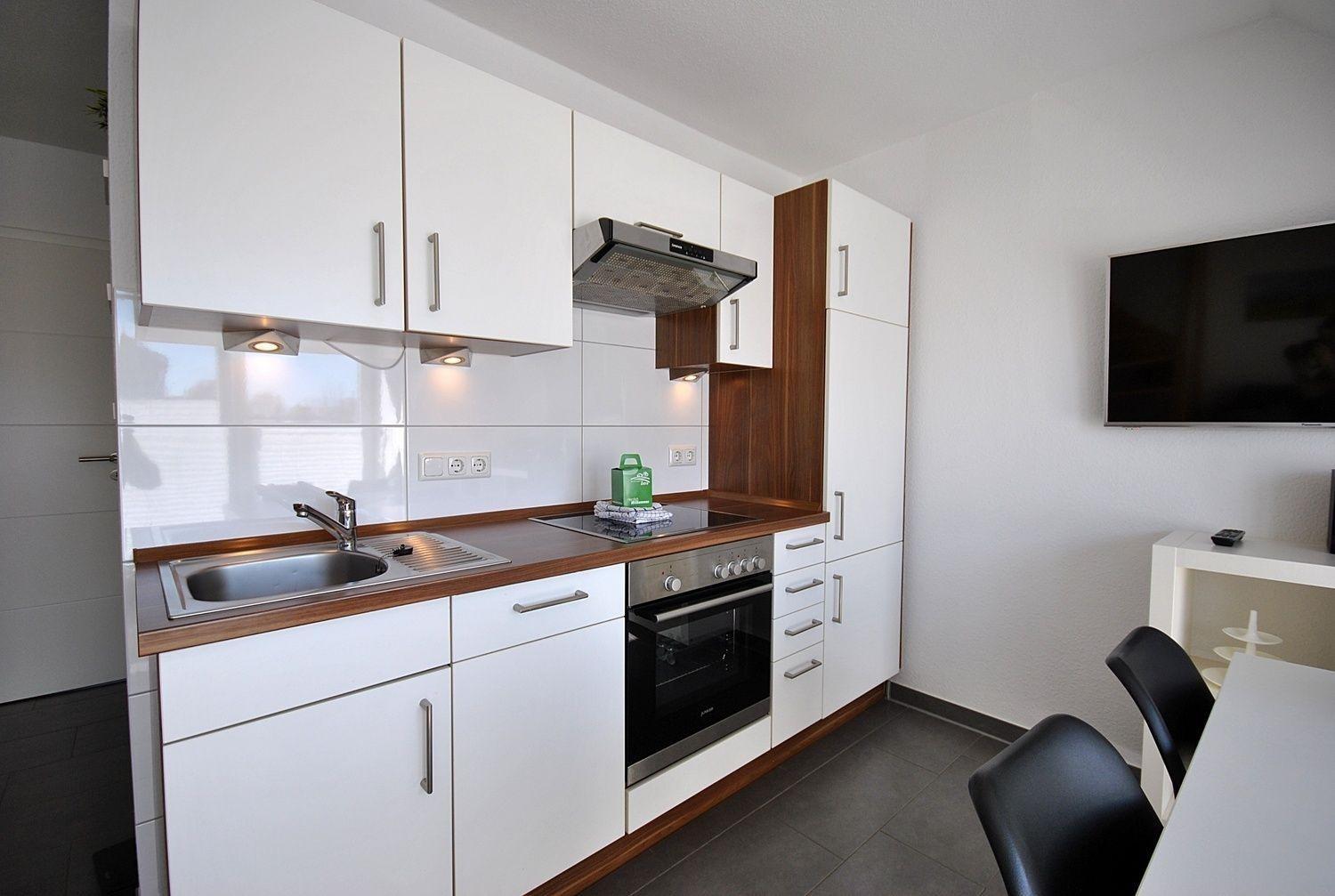 Neben dem gemütlichen Wohnzimmer bietet sie eine vollausgestattete Küchenzeile, an der man das ein oder andere leckere Essen für seine Lieben zubereiten kann.