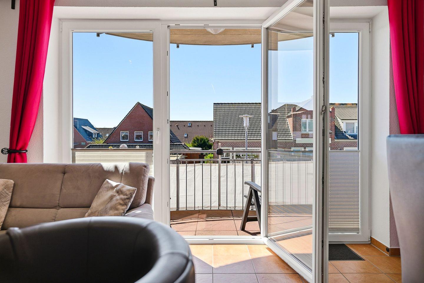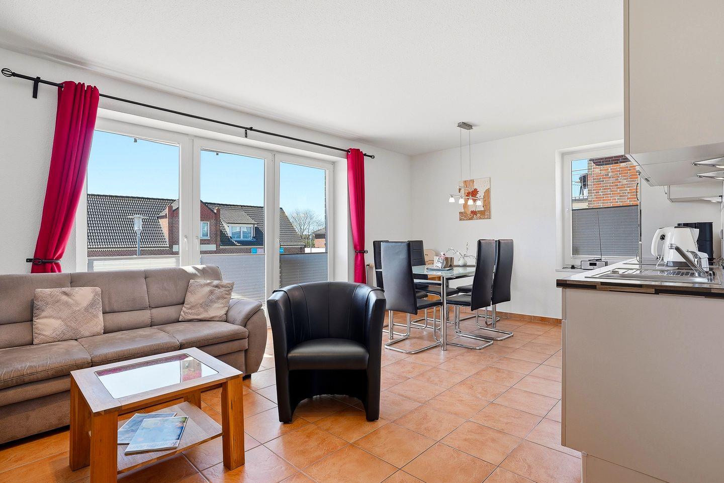 Komfortable Ferienwohnung mit Balkon und Aufzug, nur 300 m von der Nordsee in Norddeich entfernt.