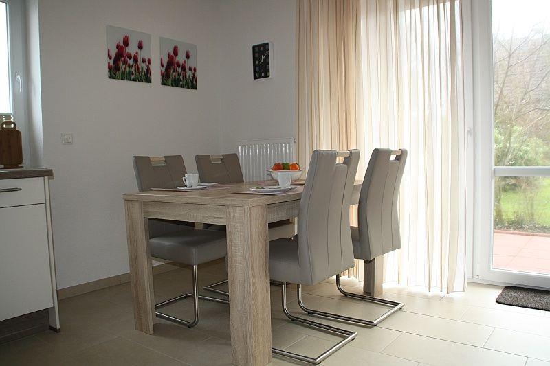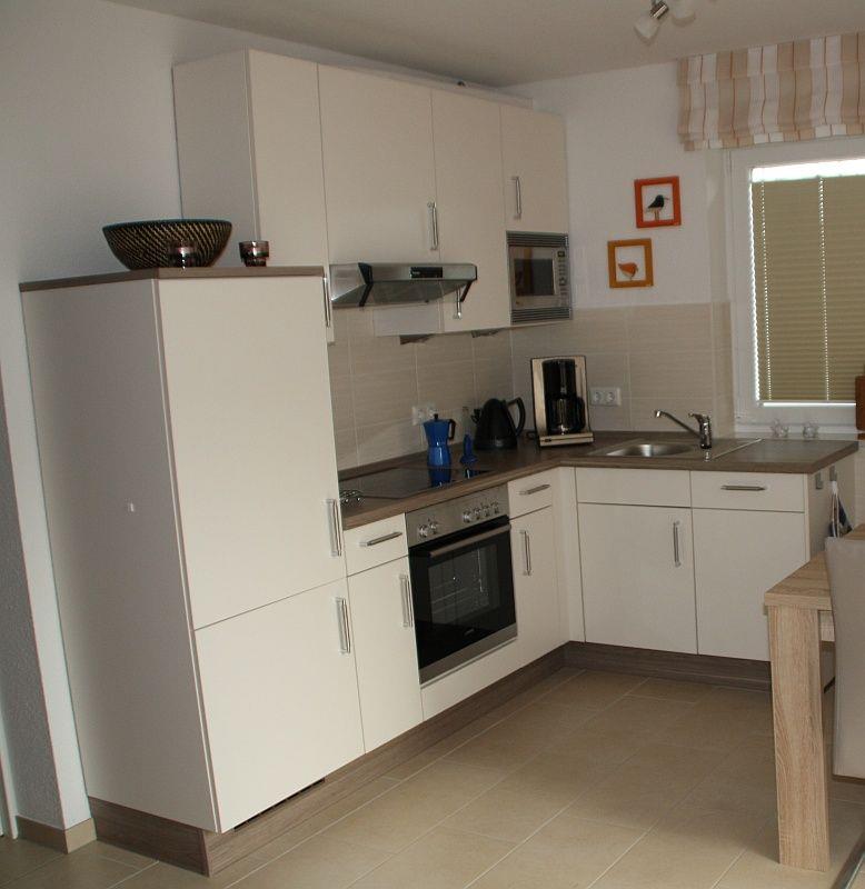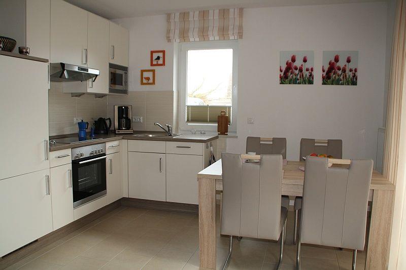 Der großzügige Wohn-/Essbereich verfügt über eine gut ausgestattete Küche mit Cerankochfeld, Backofen, Mikrowelle, Geschirrspülmaschine, Kühlschrank mit Gefrierfach, Kaffeemaschine, Wasserkocher, Toaster, u.v.m.