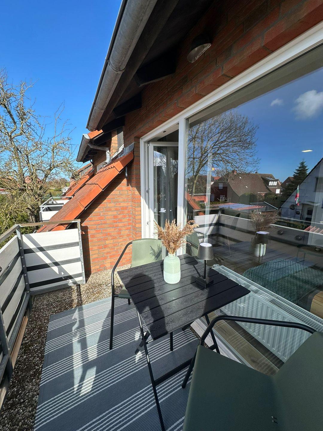 Ein echtes Highlight ist der Balkon: Genieße hier deine Auszeit an der frischen Nordseeluft – vielleicht mit einem Kaffee am Morgen oder einem Glas Wein am Abend.